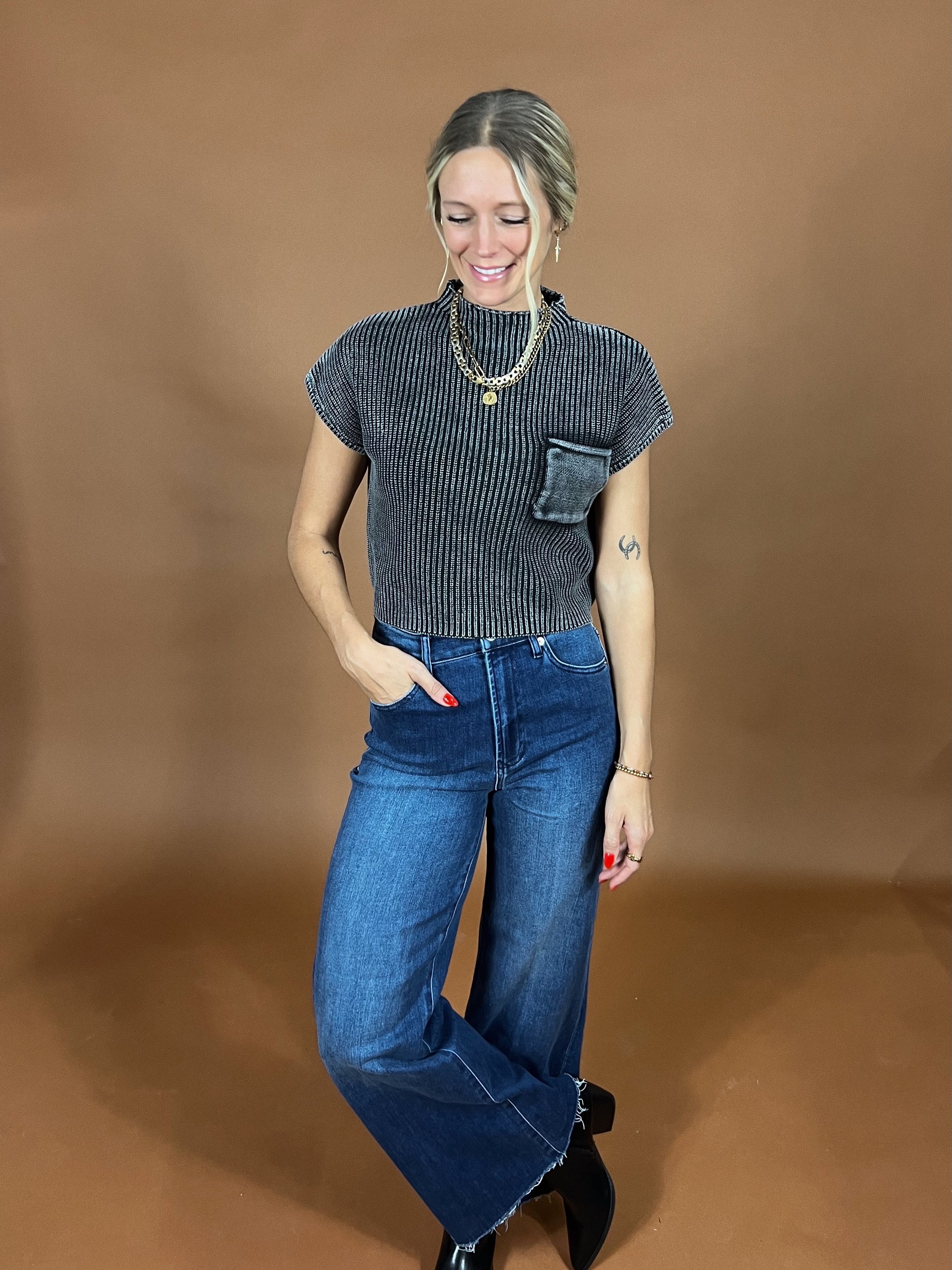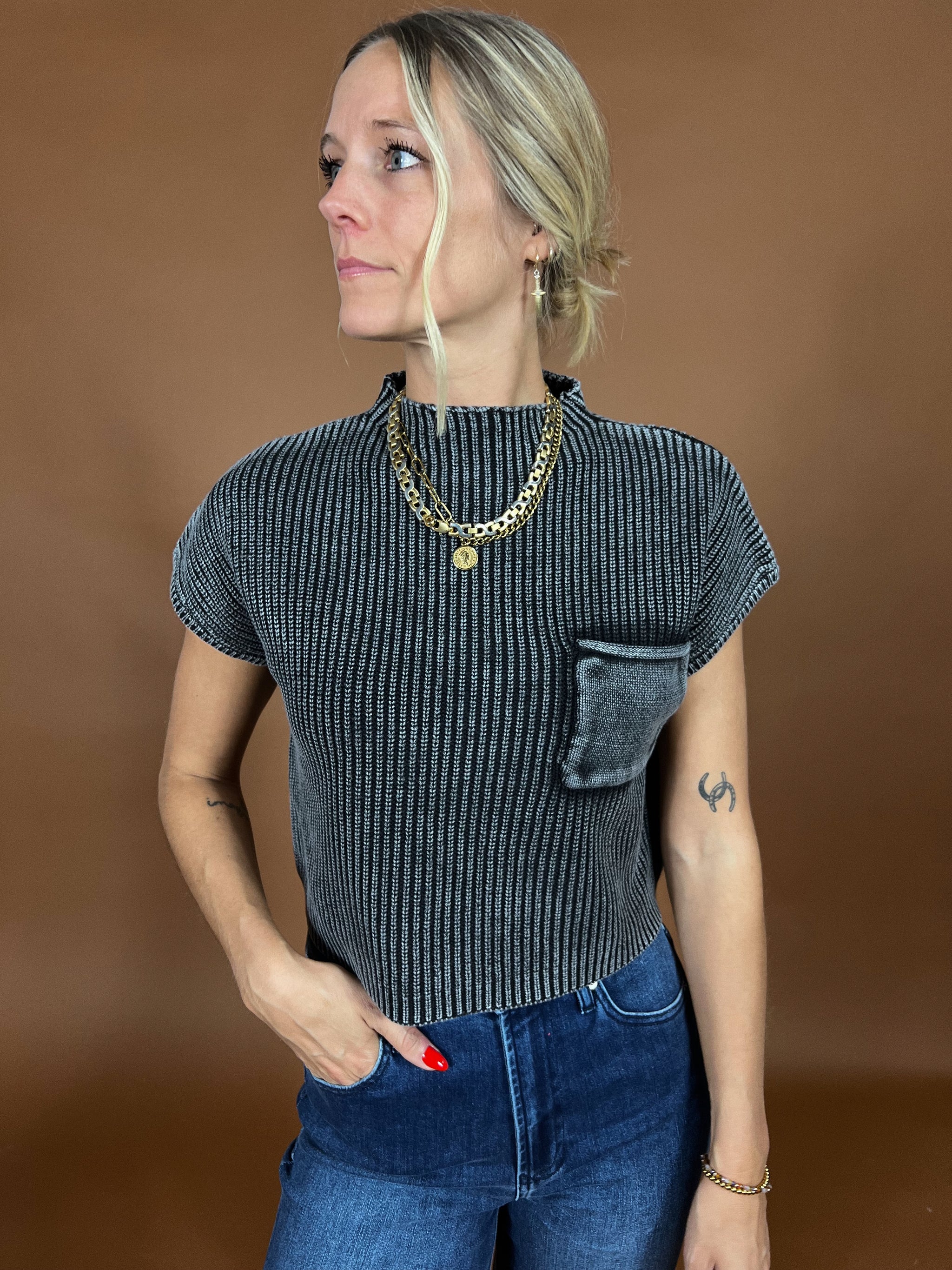 Classic and cool. This short sleeve sweater blends cozy texture with polished structure. Features subtle puff sleeves with intricate embroidery, a soft knit, and an...
