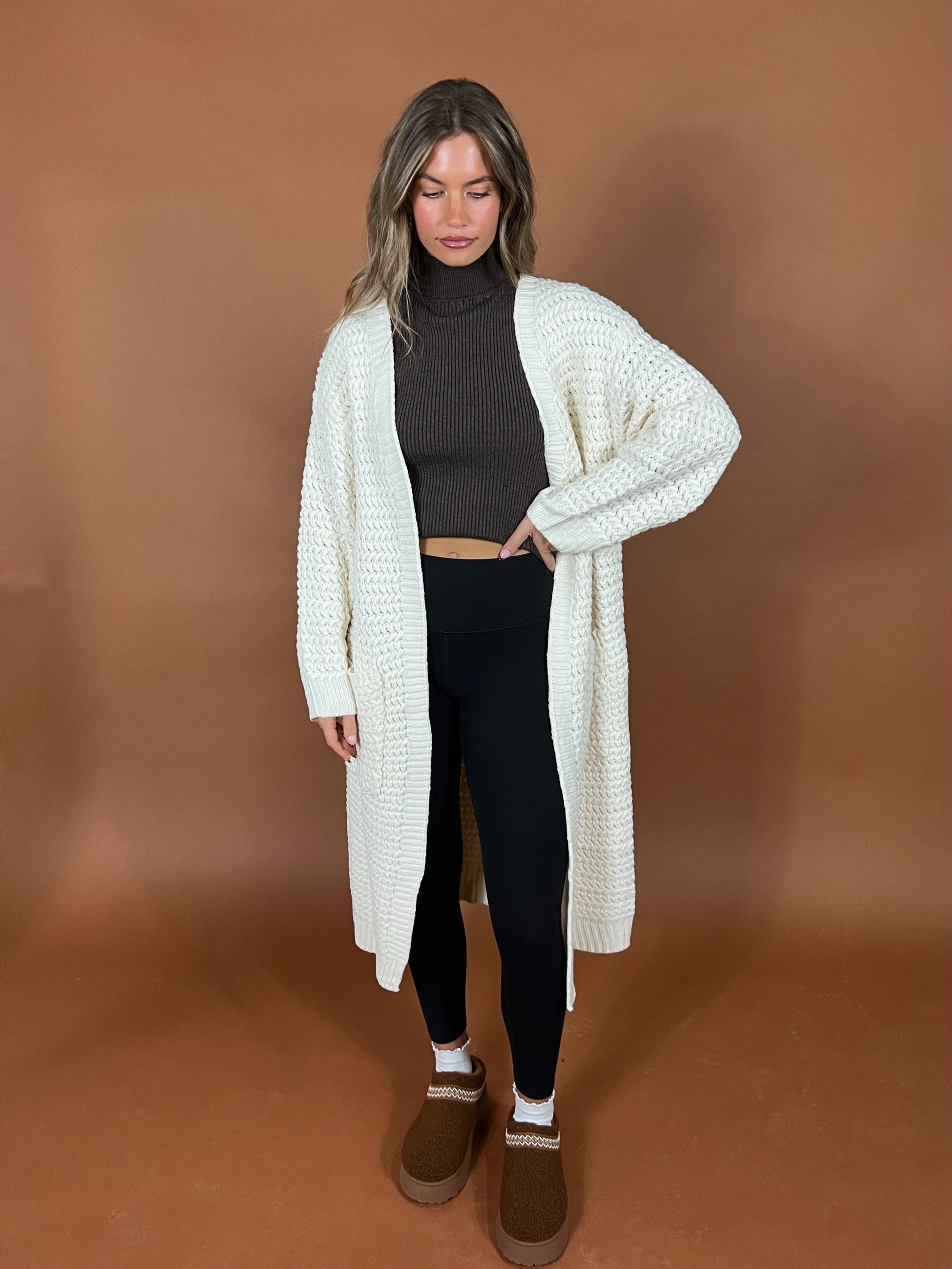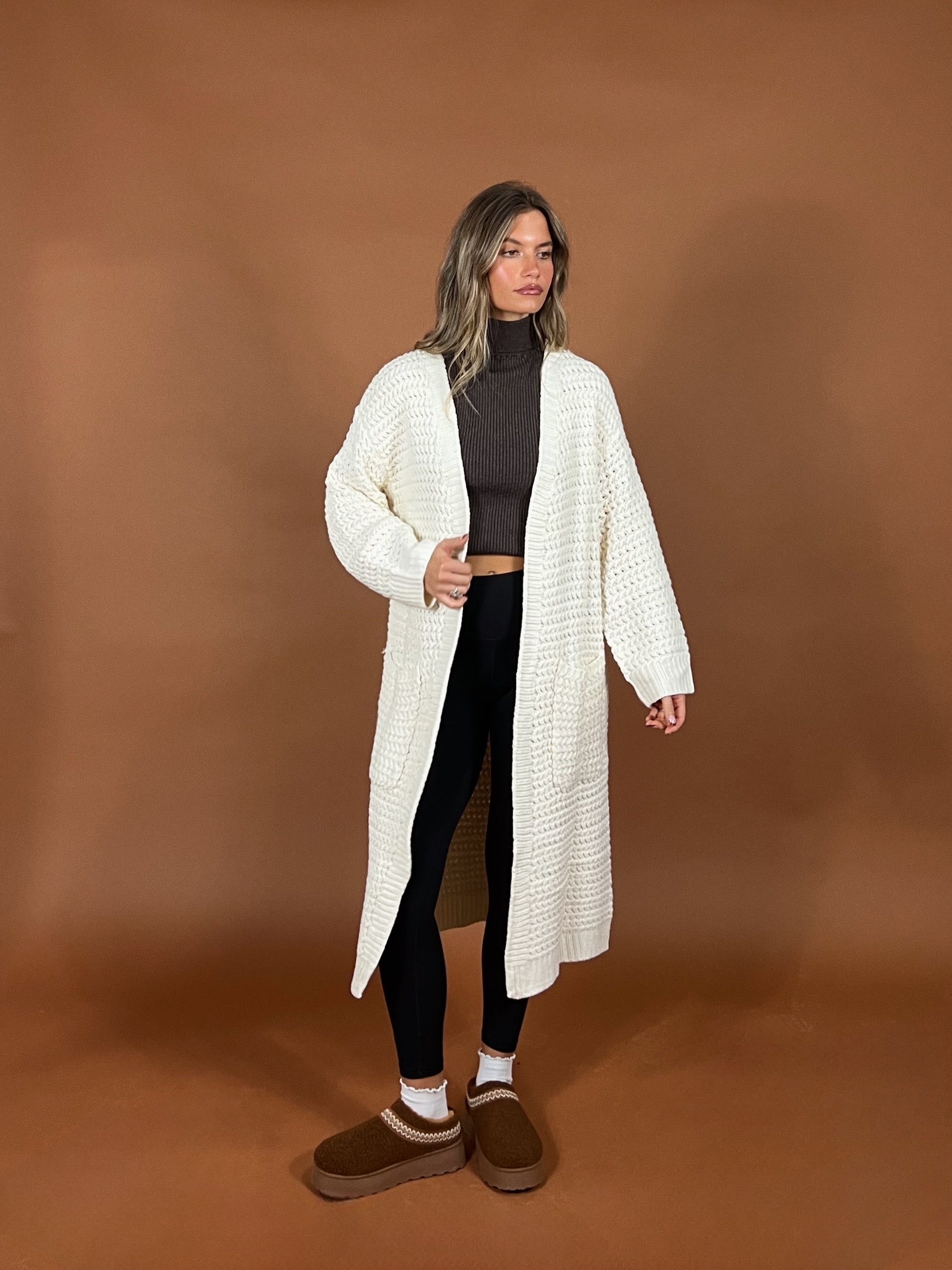 Start your day with coffee and this cardigan. This cardigan is that effortless layer you'll reach for again and again, featuring a soft chunky weave,...