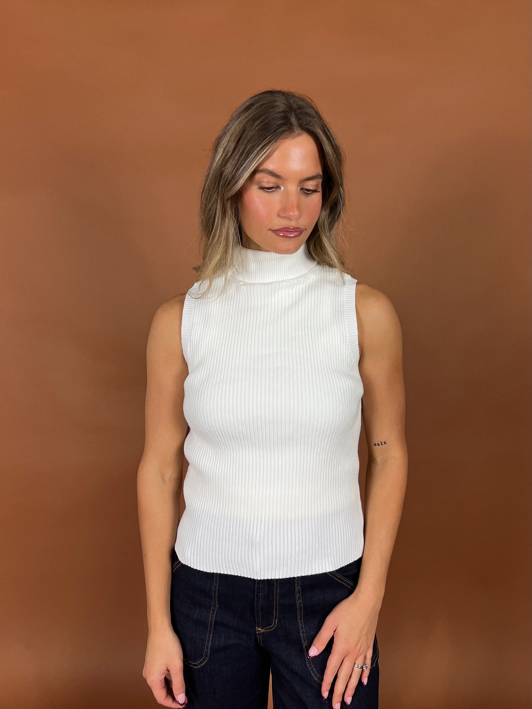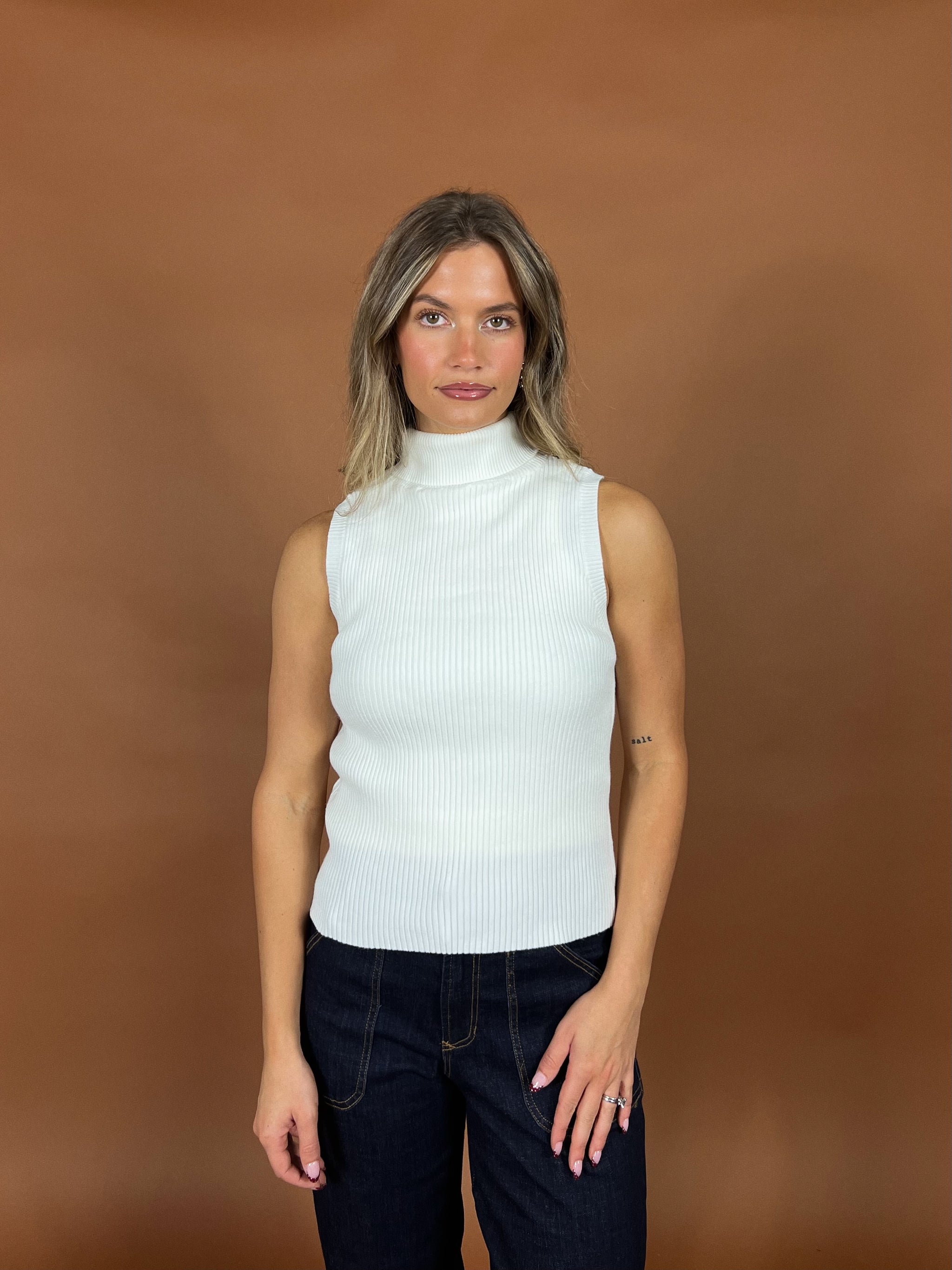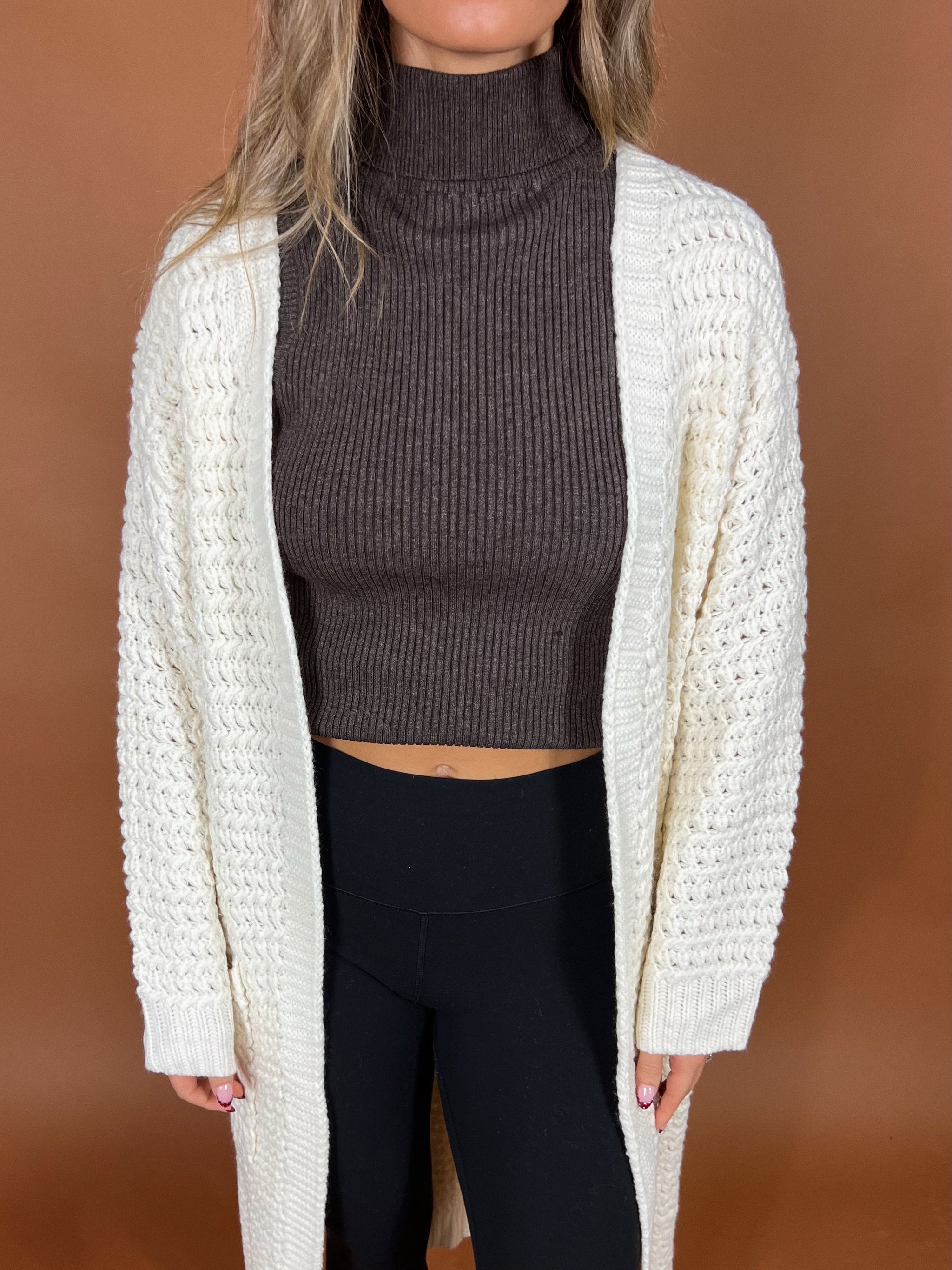 Cozy meets effortlessly chic. With its soft cable knit texture, mock neckline, and flattering sleeveless cut, this piece gives you that "I didn't even try"...