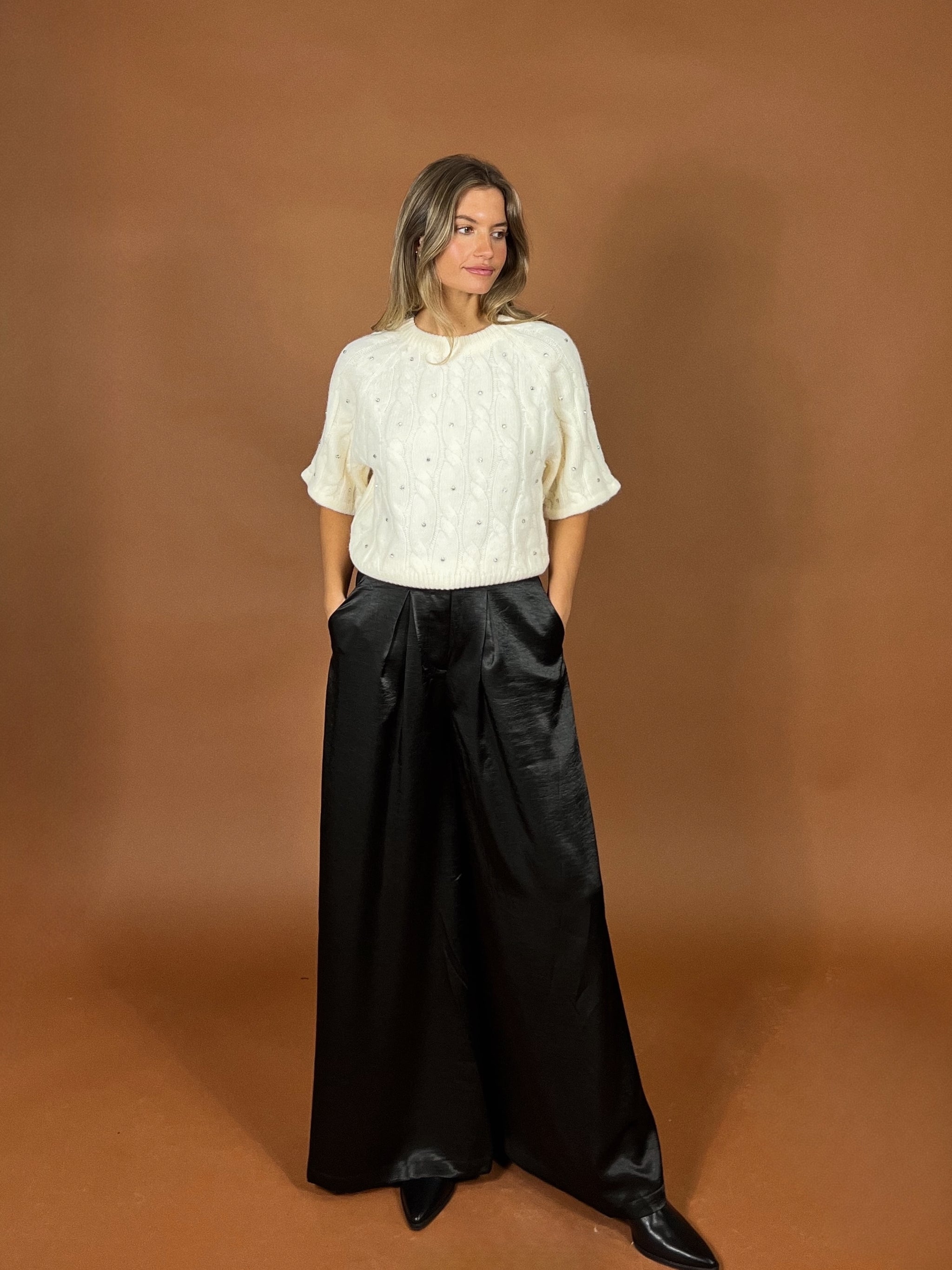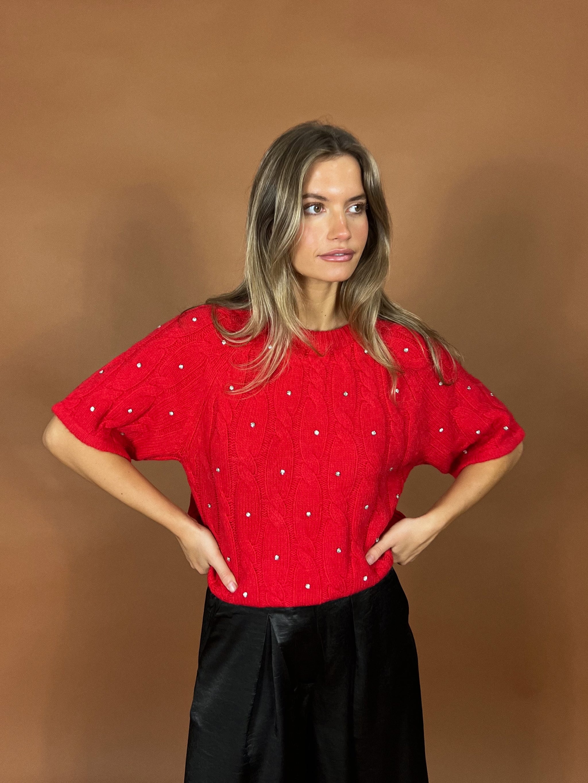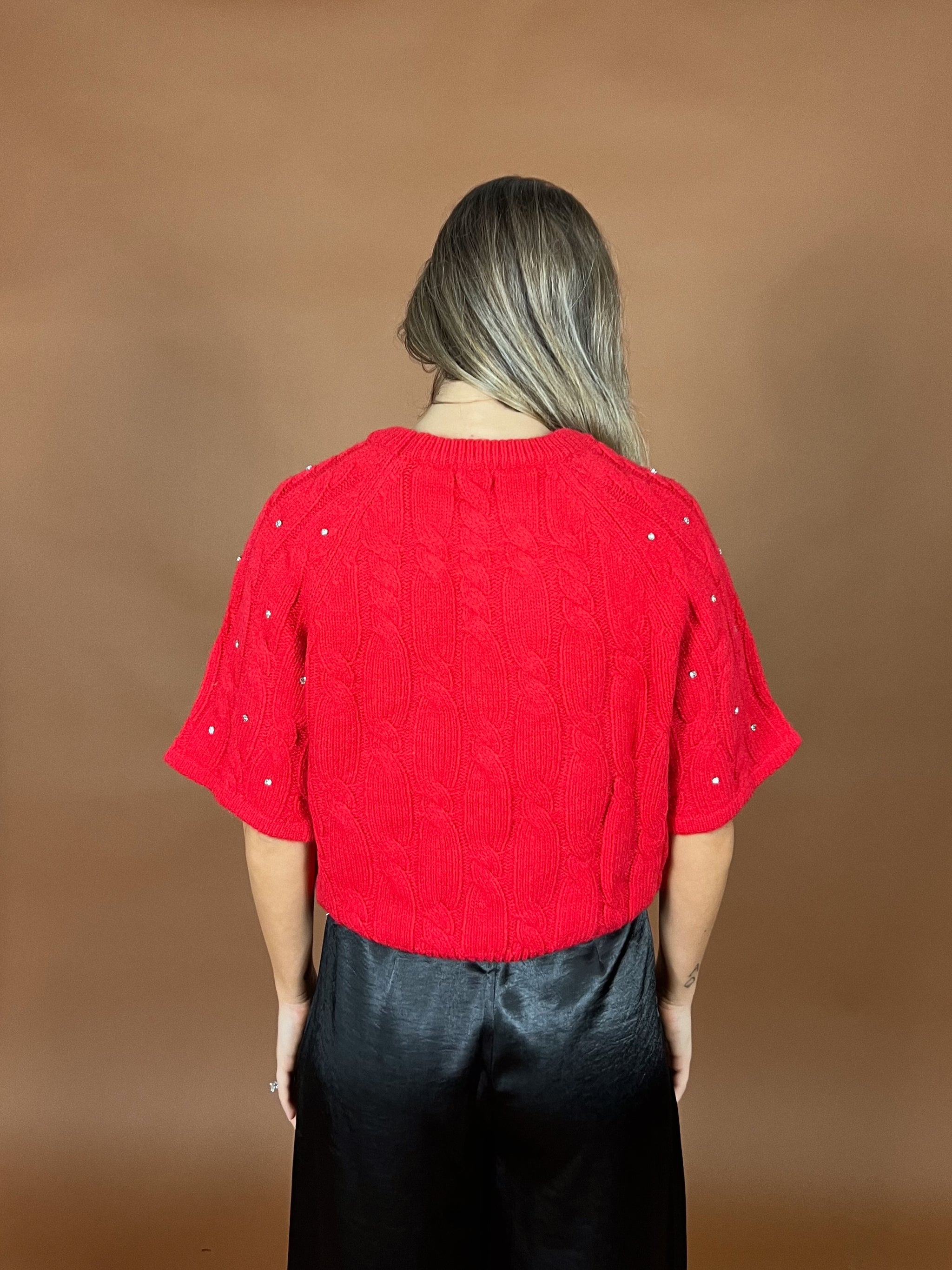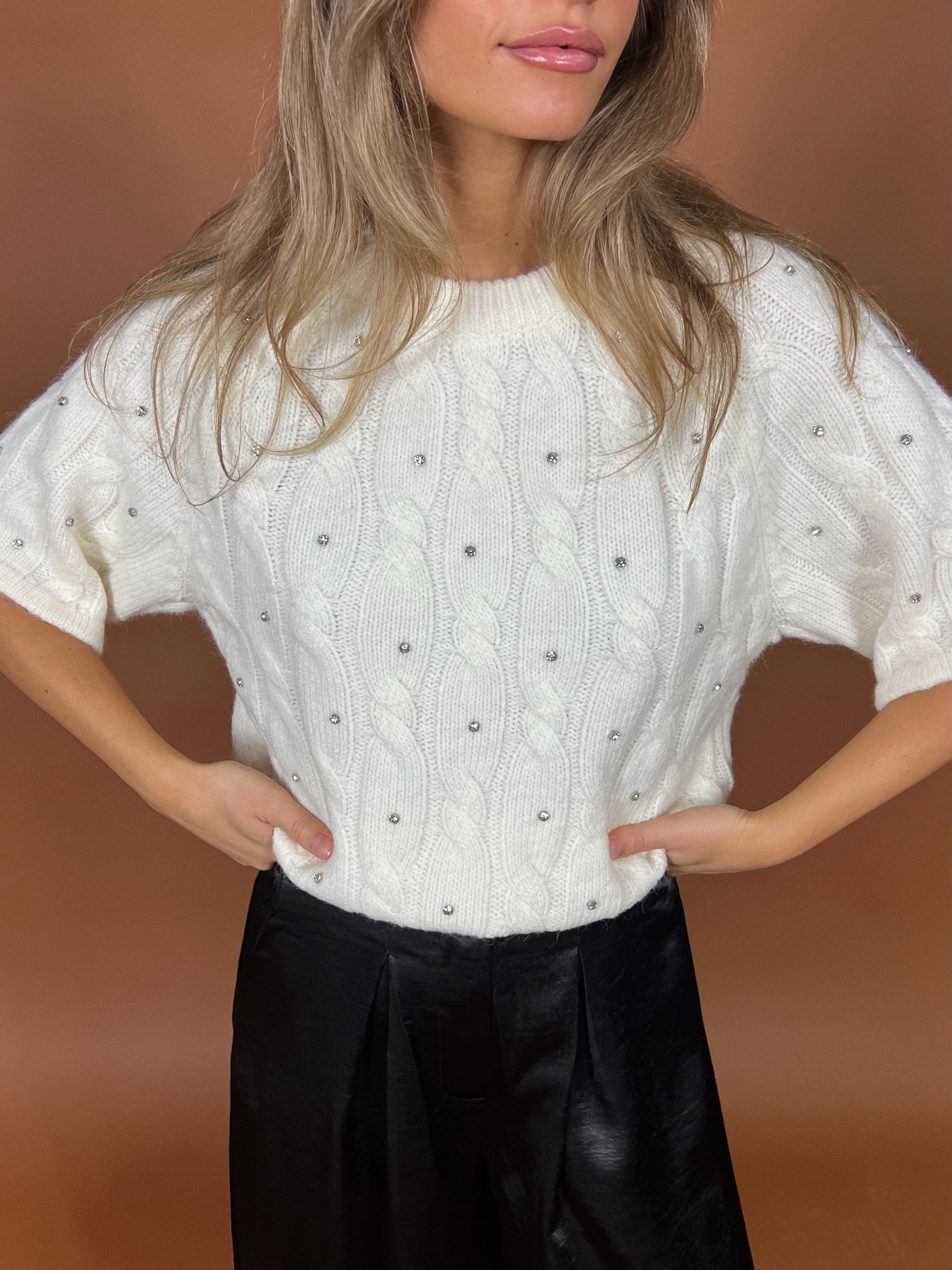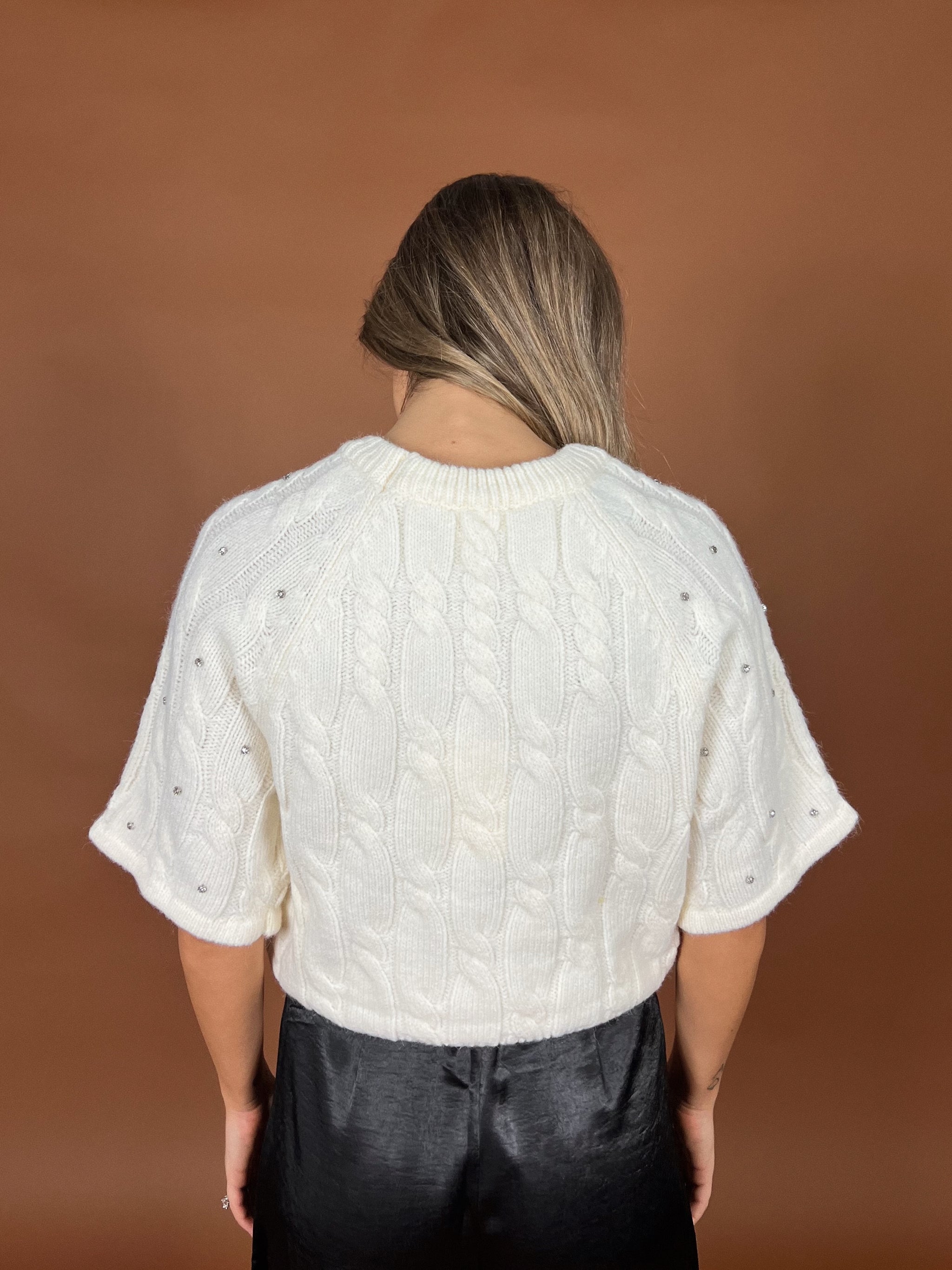 Ready to outshine the rest. With its timeless cable knit design and subtle rhinestone embellishments, this cozy knit feels both classic and elevated. Featuring a...