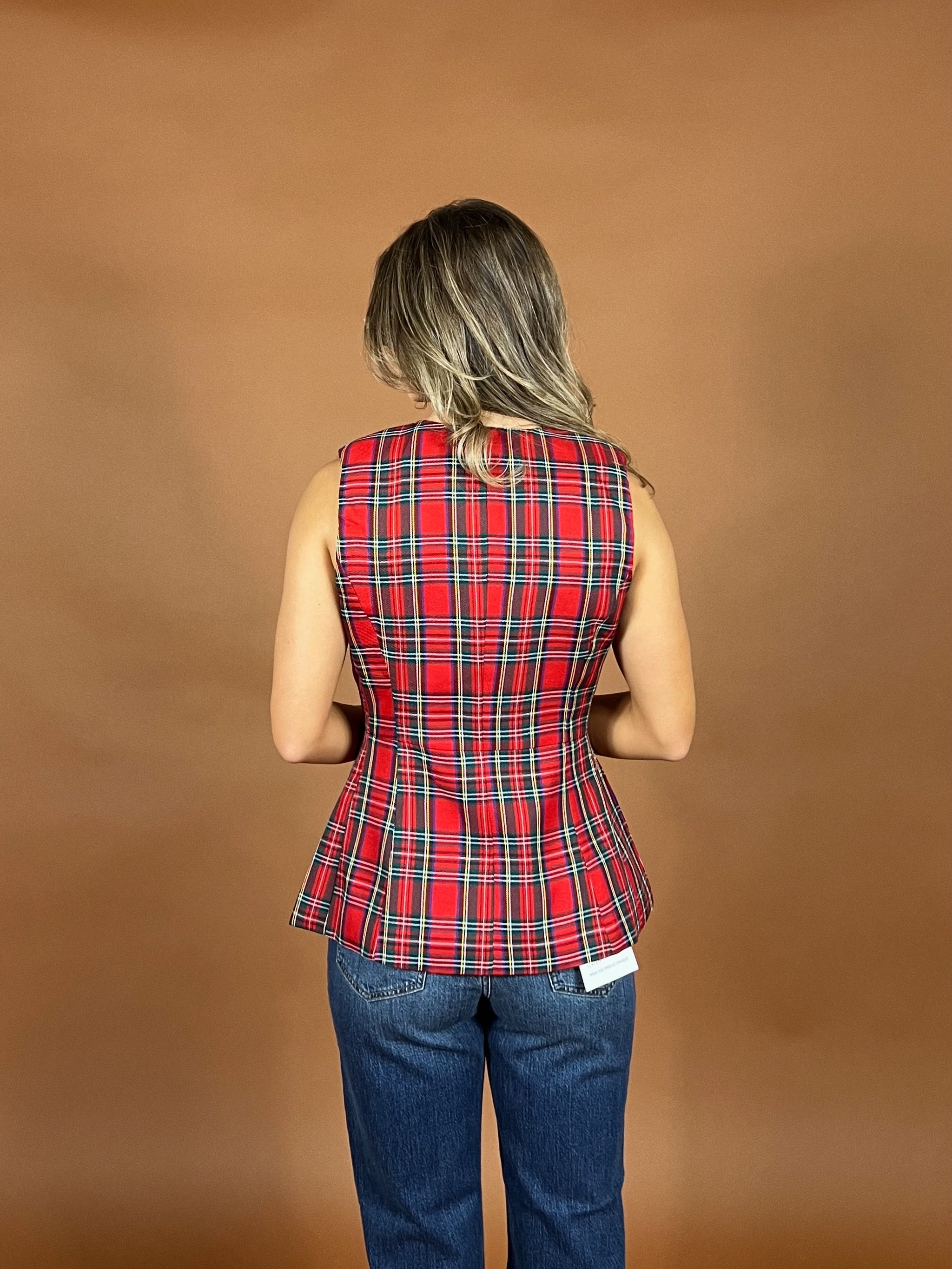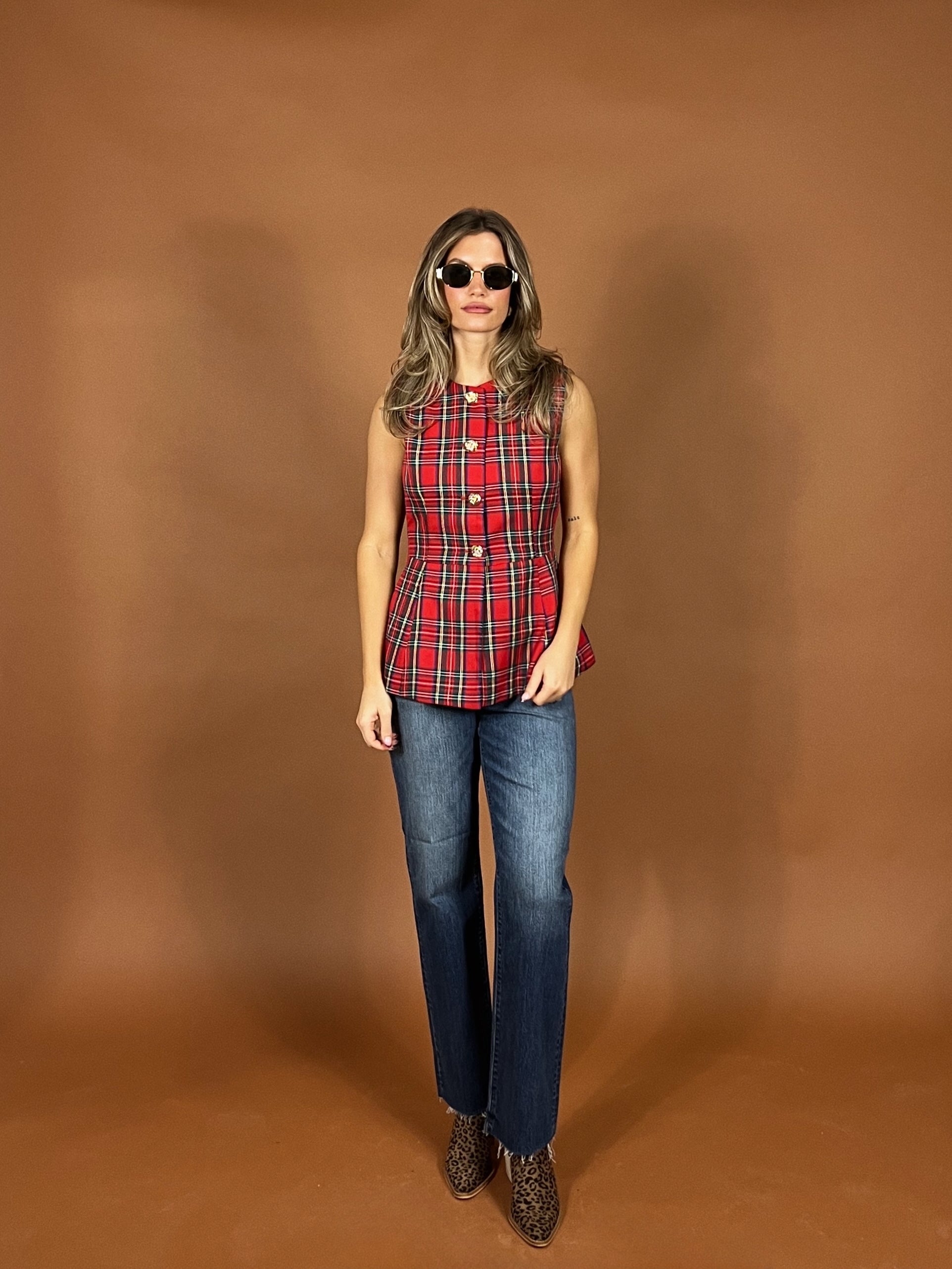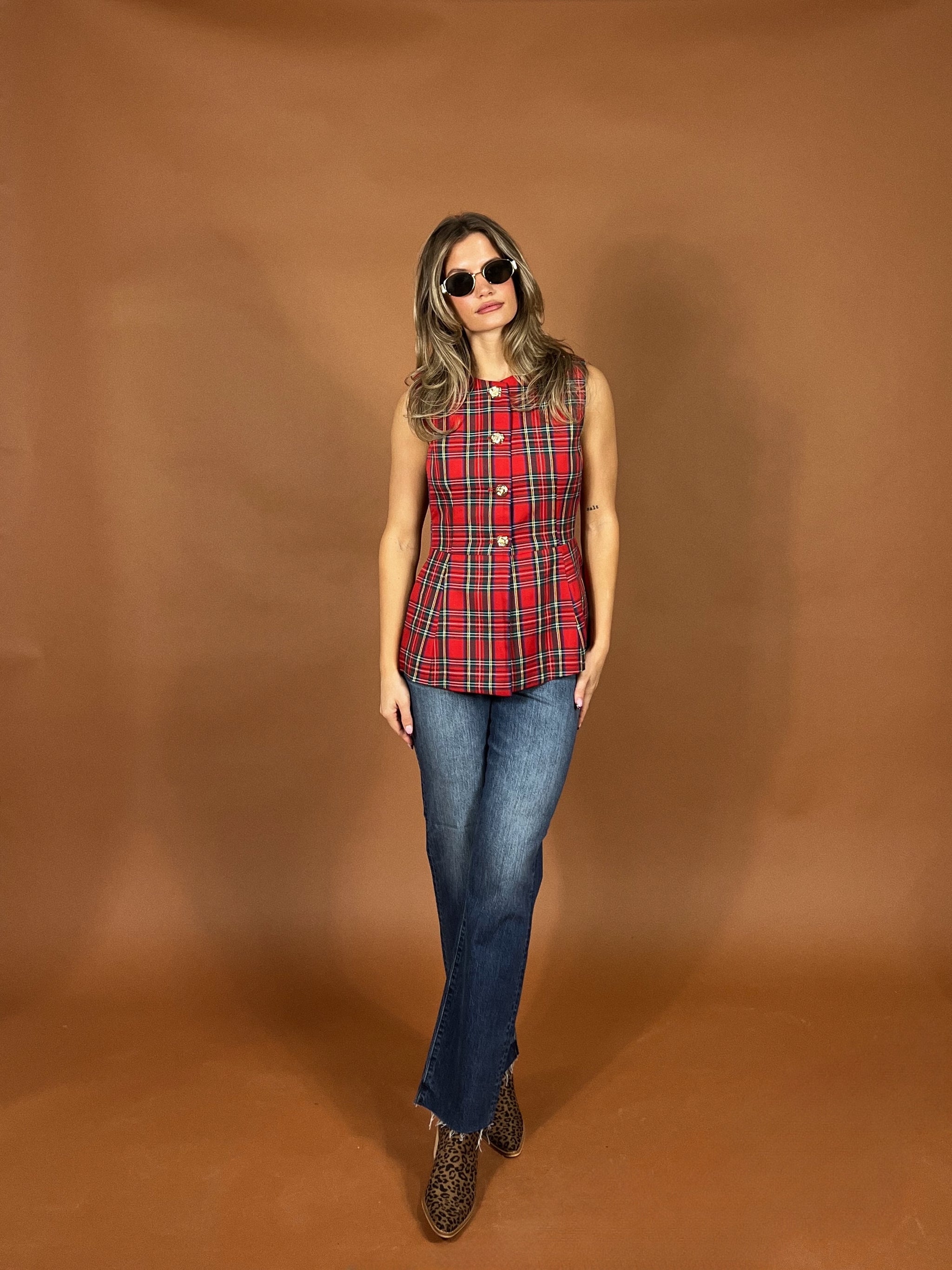 Where cozy meets playful. This warm chestnut knit vest features bold red stitching and sweet button-down detailing is made for your fall wardrobe. Whether it's...