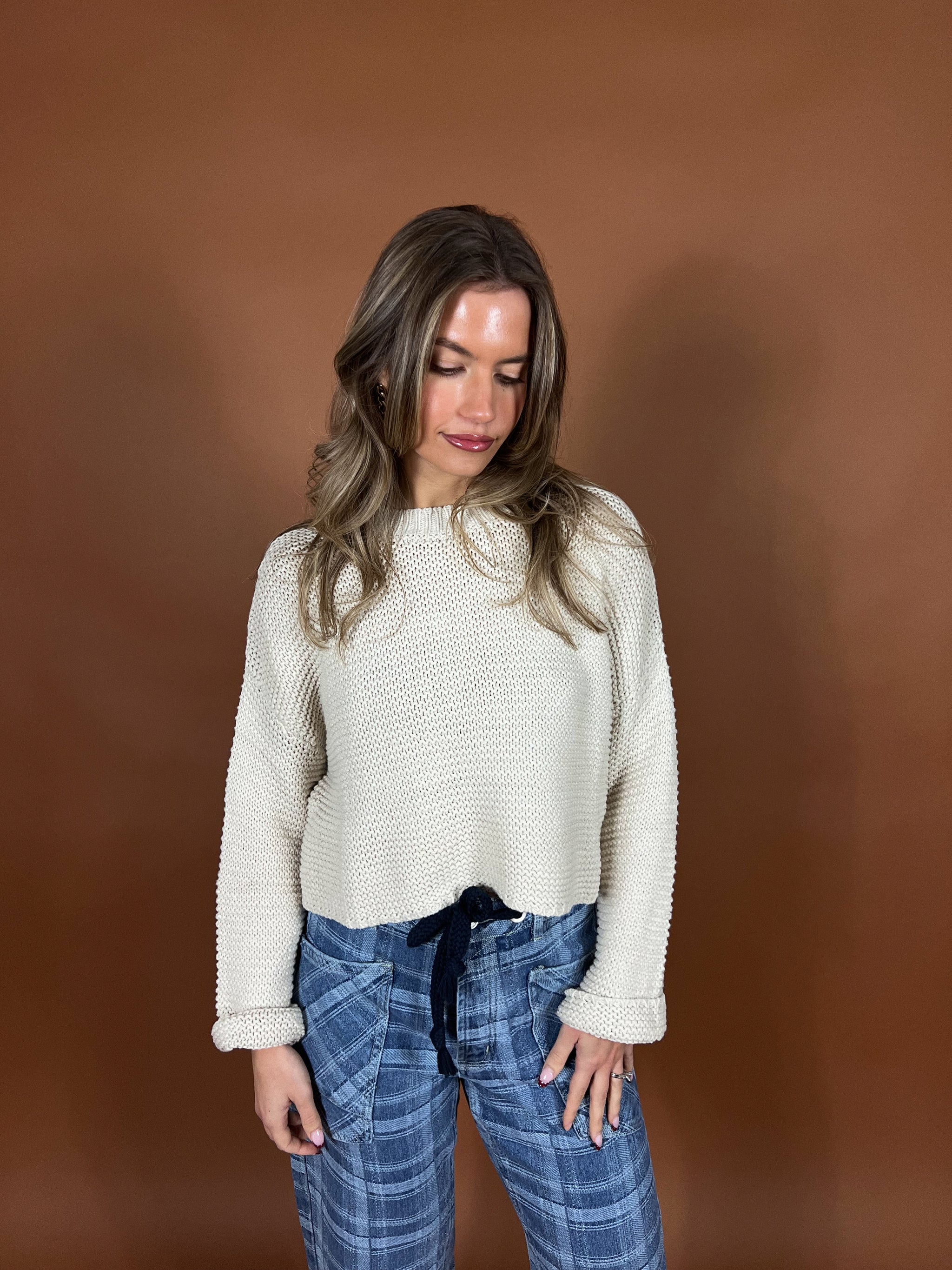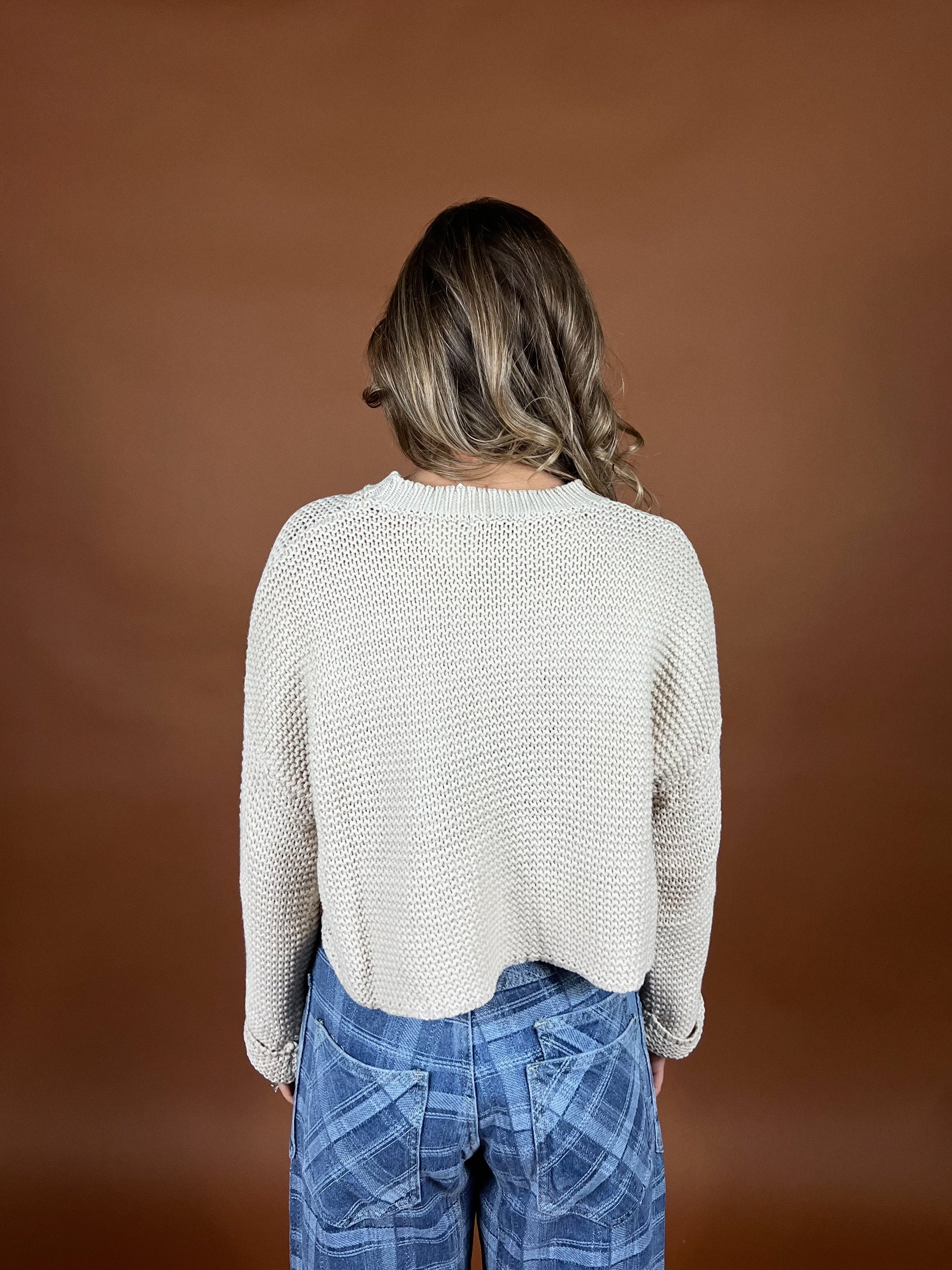 Light weight, boxy knit, pullover sweater. This sweater pairs perfectly with the "Coco Knit Drawstring Shorts" for a cute matching set look. True to size...