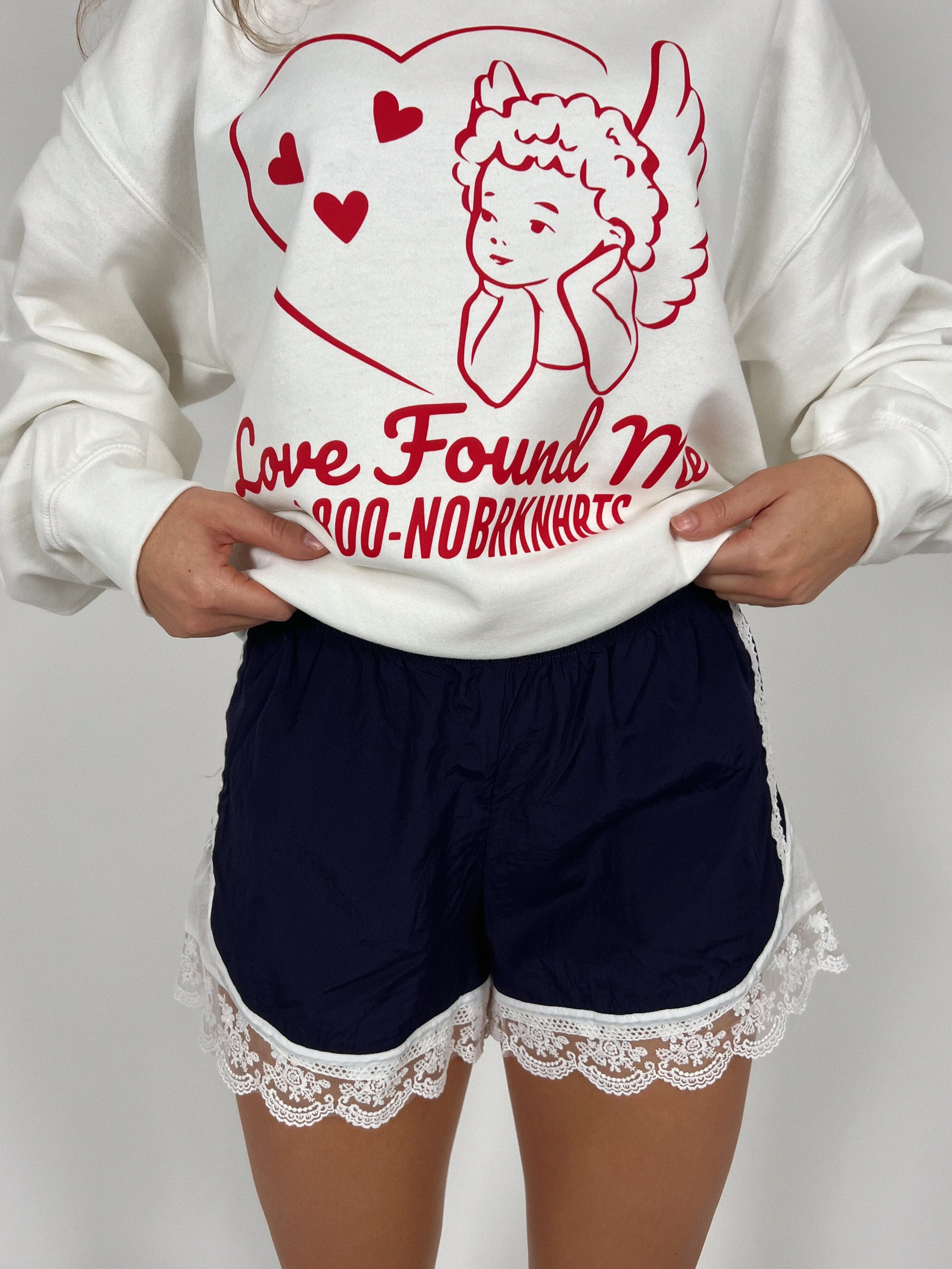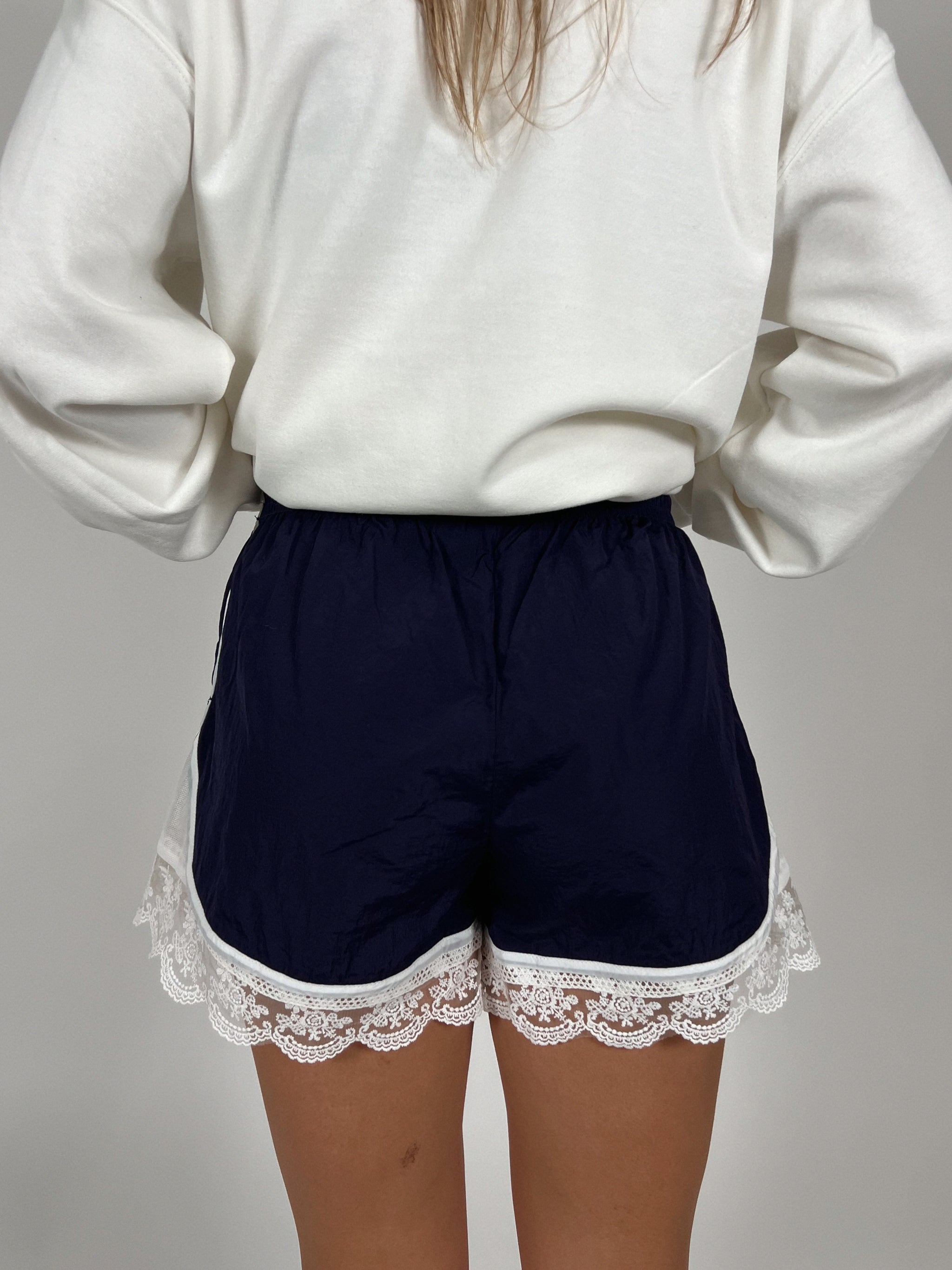The sweetest take on a sporty classic. These lightweight runner-style, free people dupe, shorts feature a comfortable elastic waistband with adjustable drawstring and delicate lace...