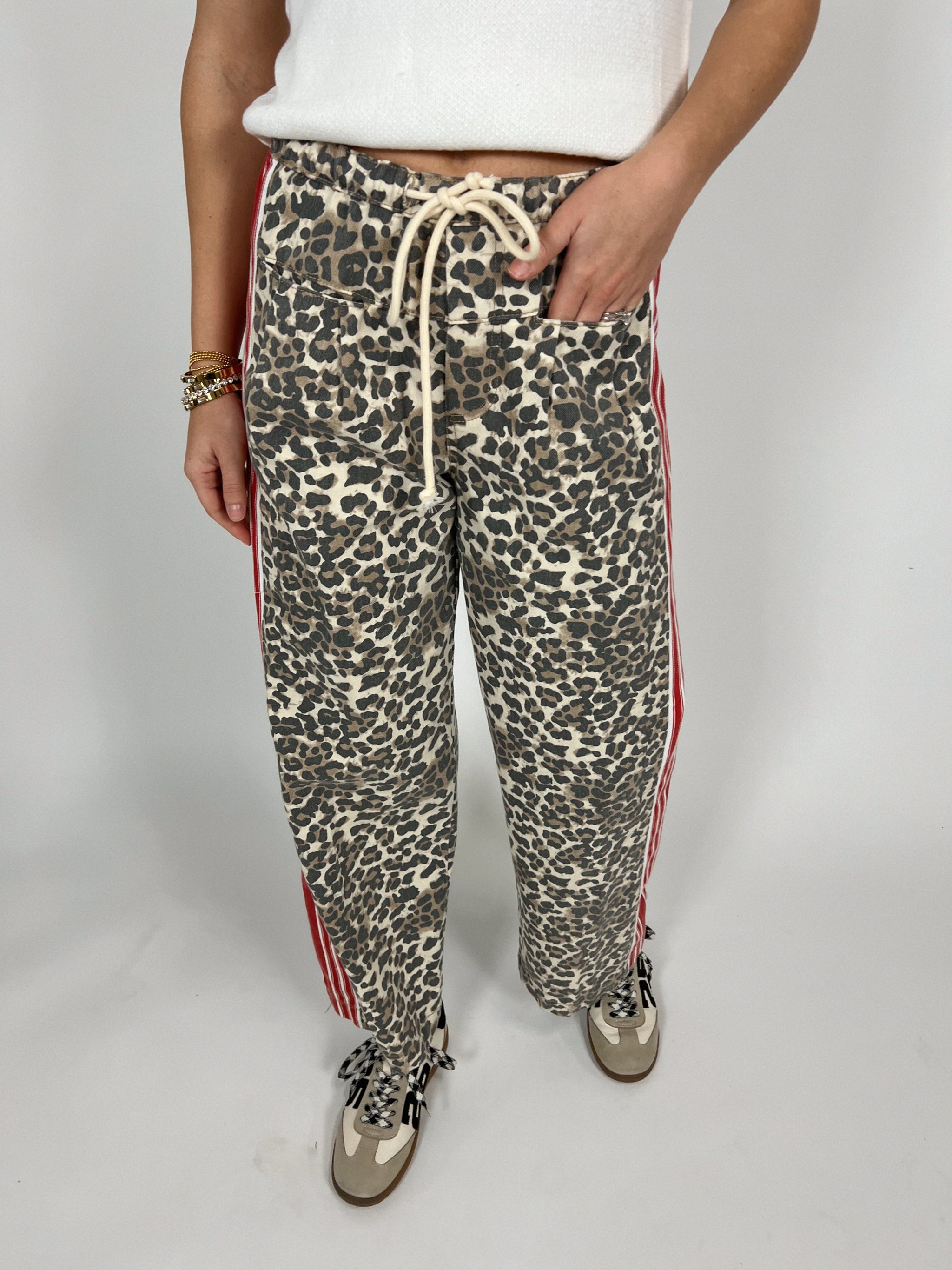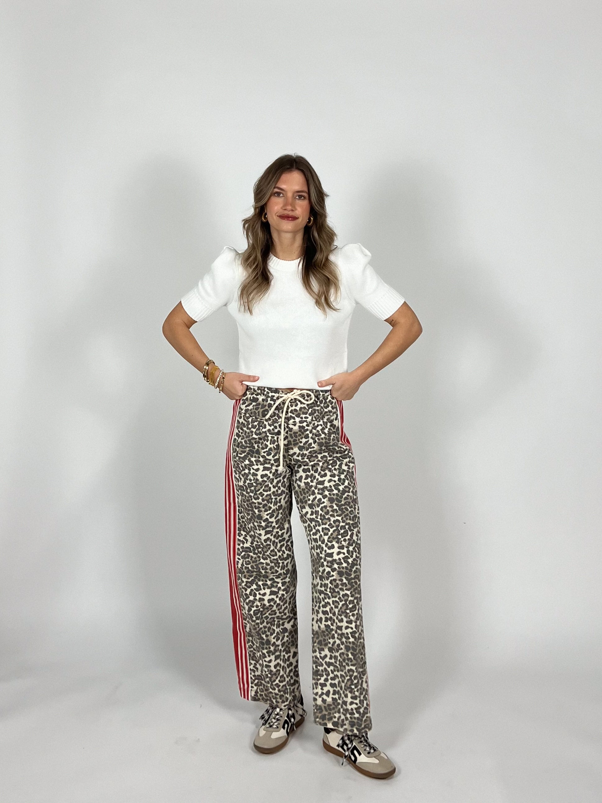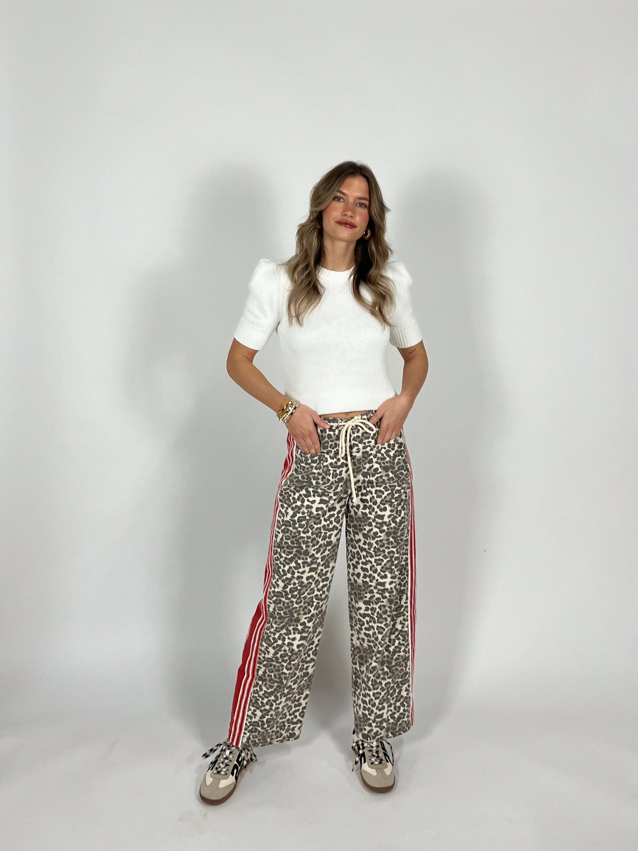 Meet your new off-duty statement pant. These leopard wide-leg track pants blend laid-back comfort with bold, street-style energy. Designed with an easy elastic drawstring waist...