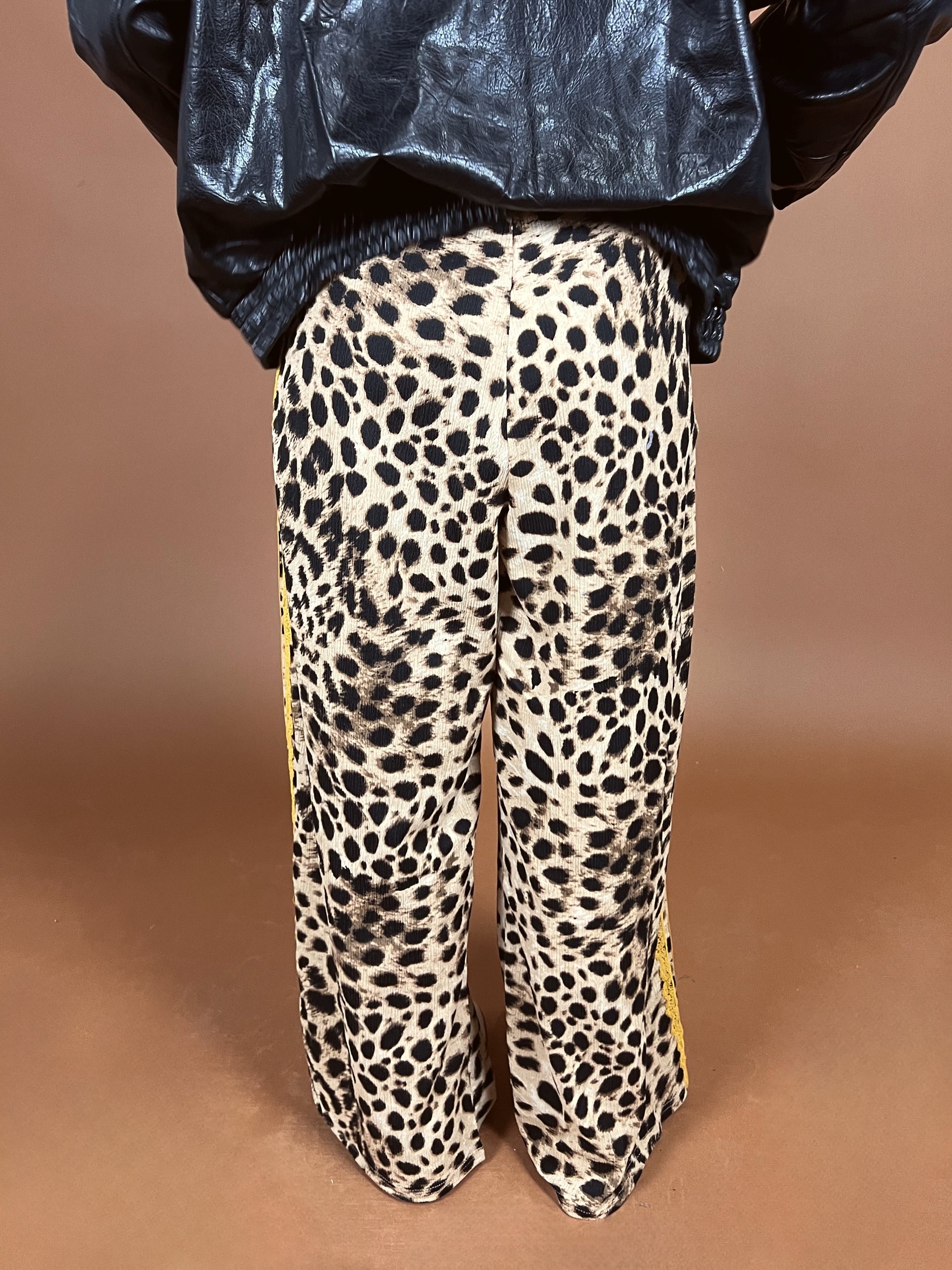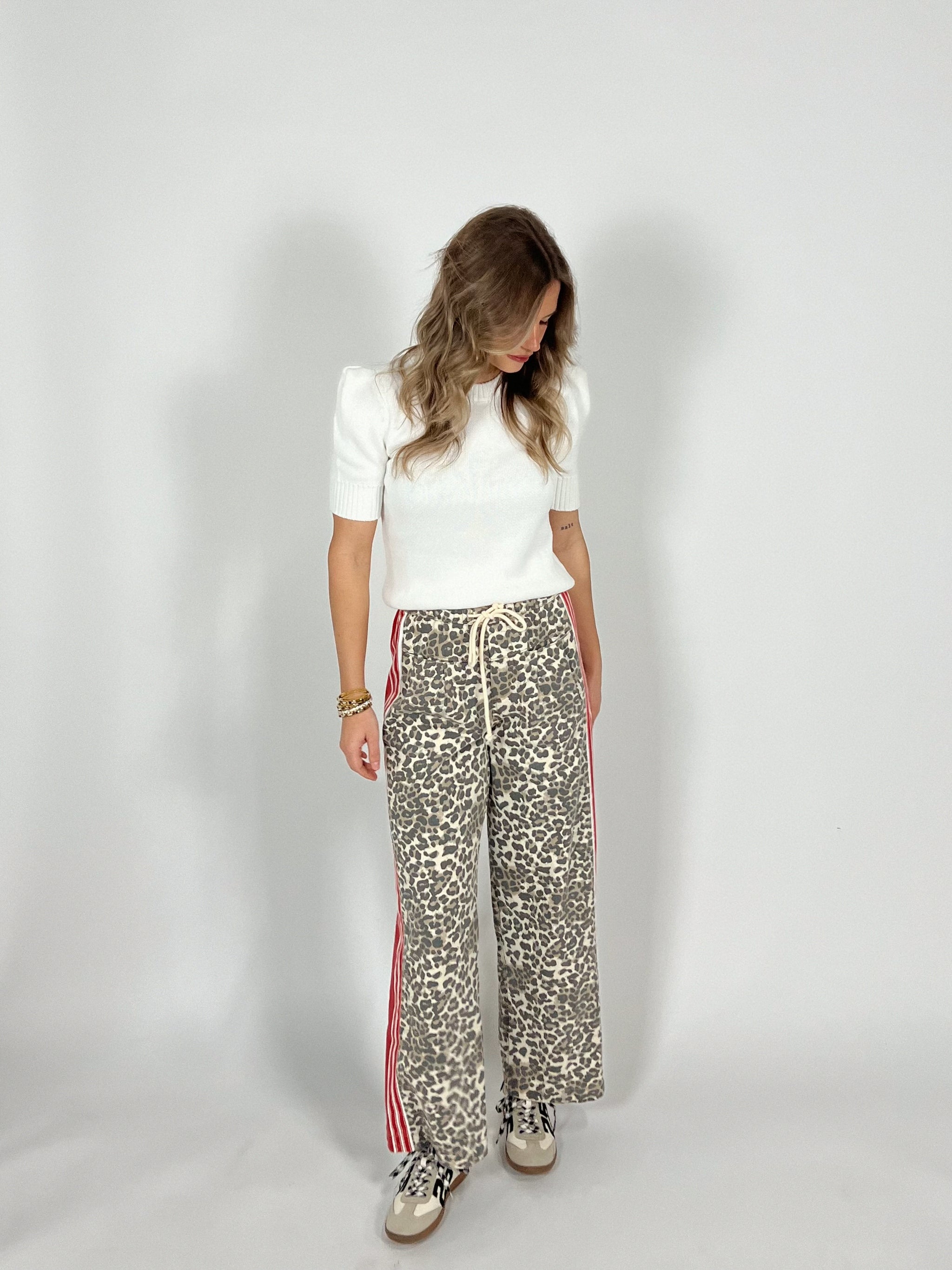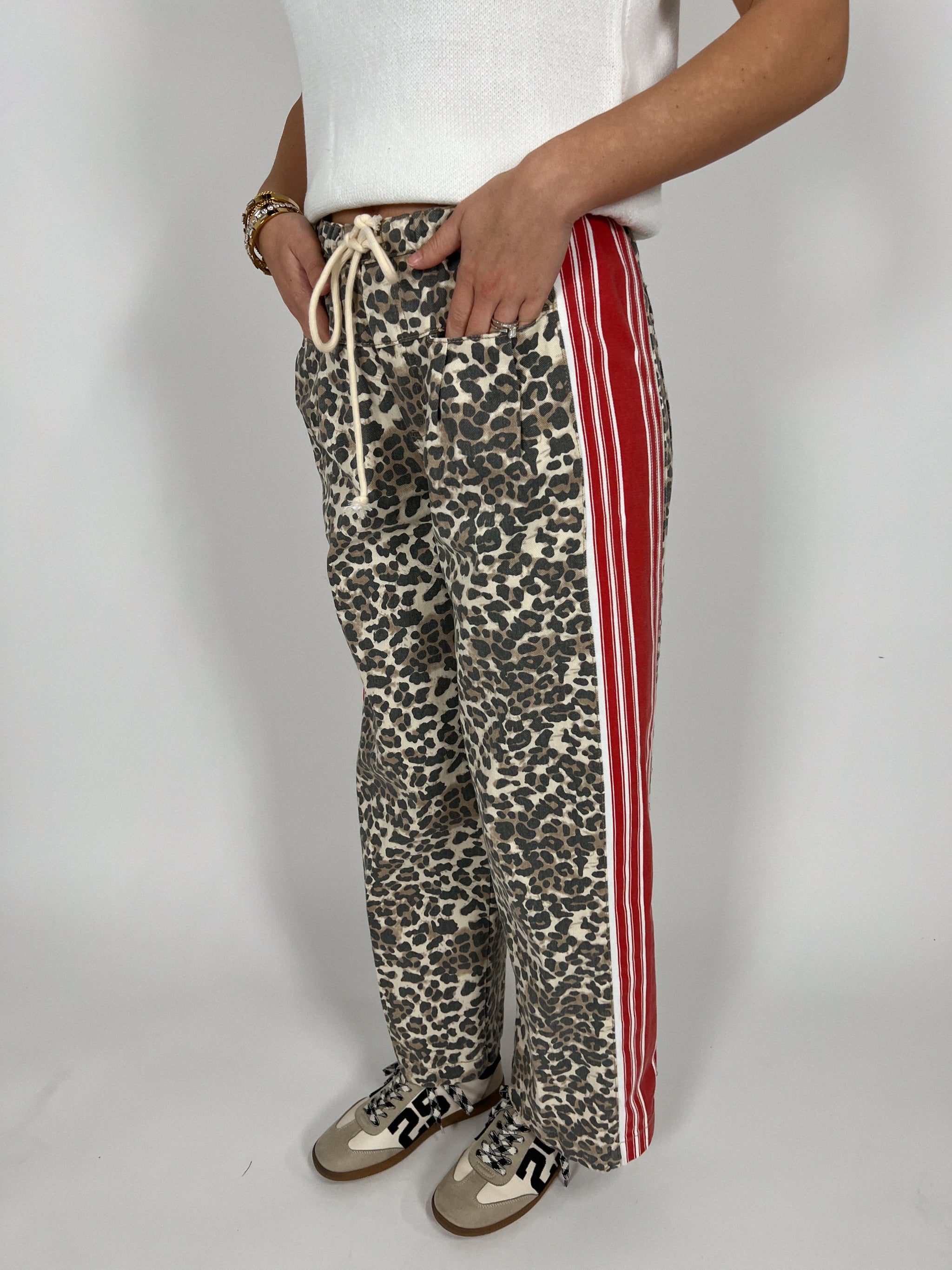 Meet your new off-duty statement pant. These leopard wide-leg track pants blend laid-back comfort with bold, street-style energy. Designed with an easy elastic drawstring waist...