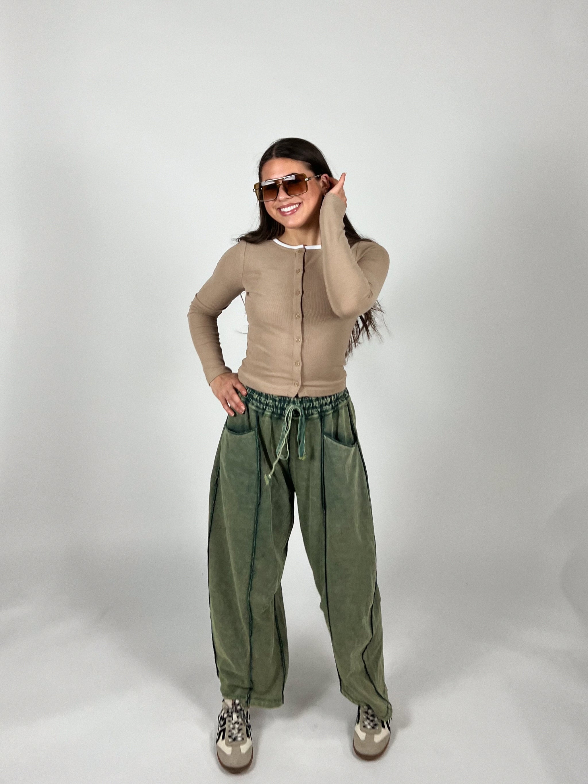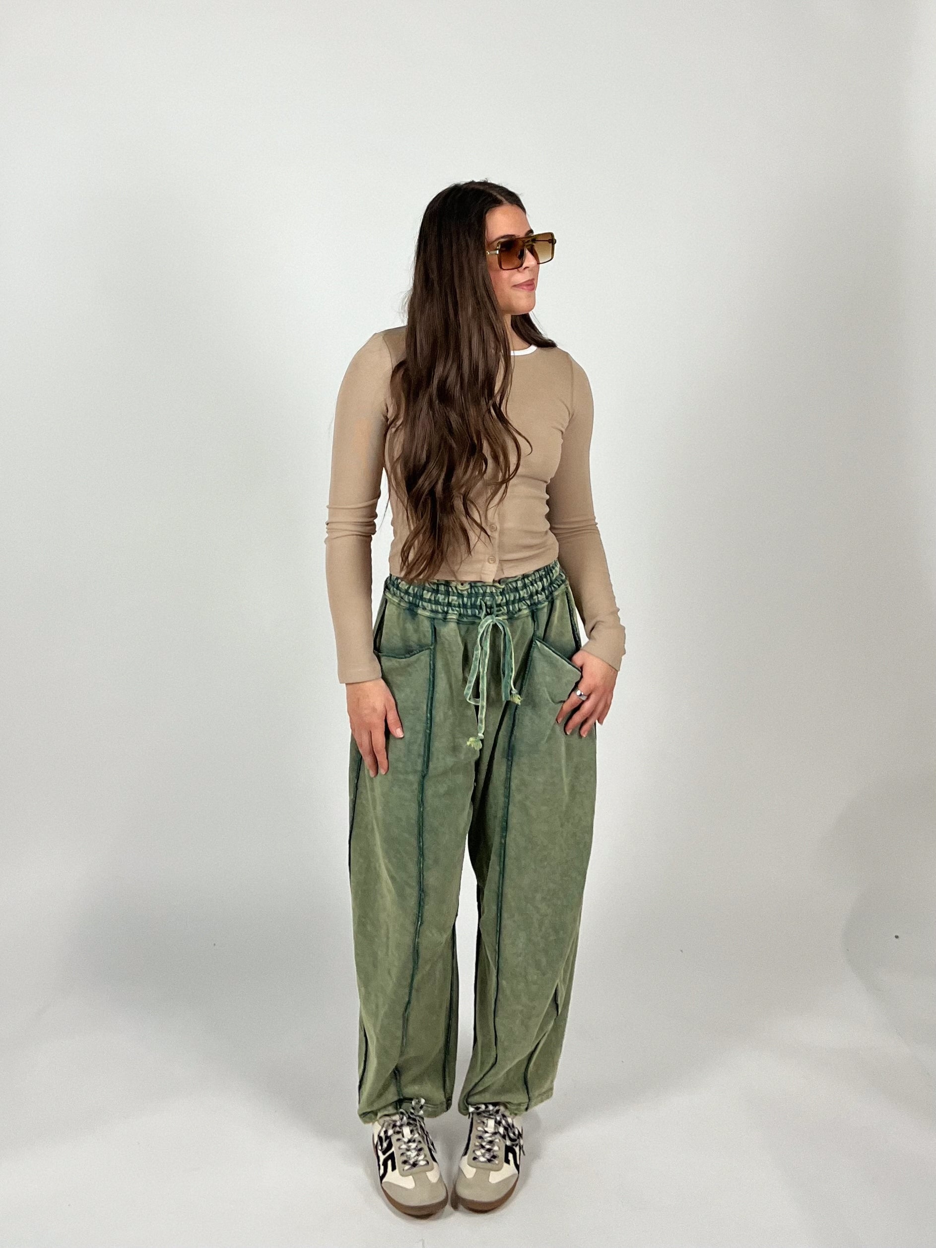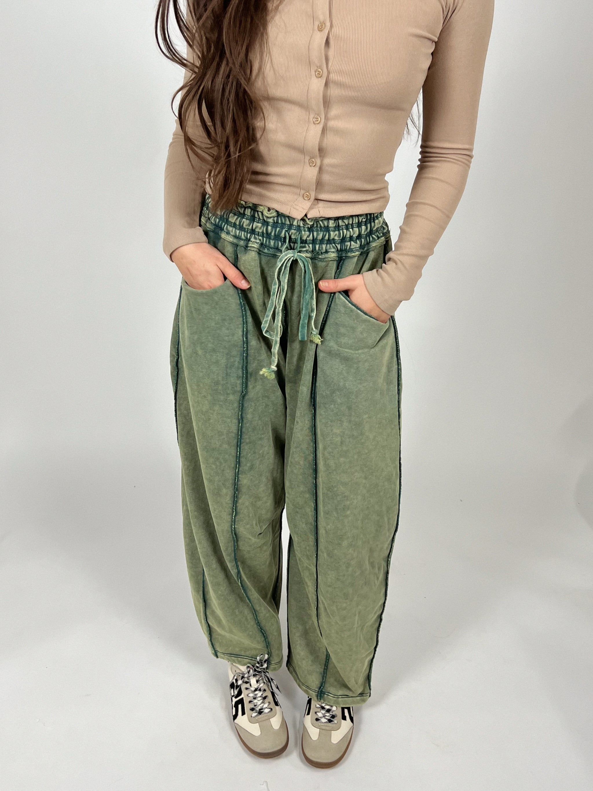 Minimal effort, maximum style. Features a flowy wide leg silhouette with an adjustable drawstring waist for the perfect fit. Designed in a lightweight, sage toned...
