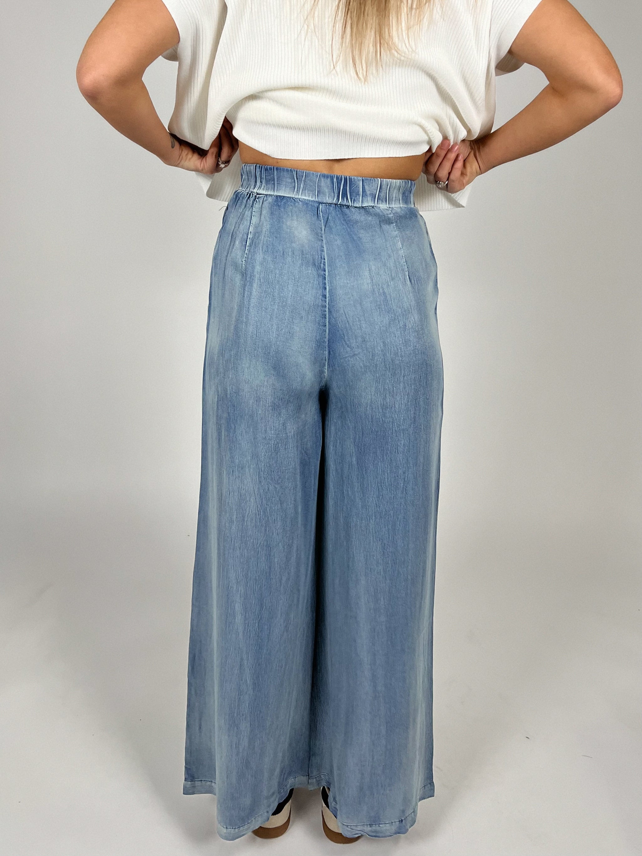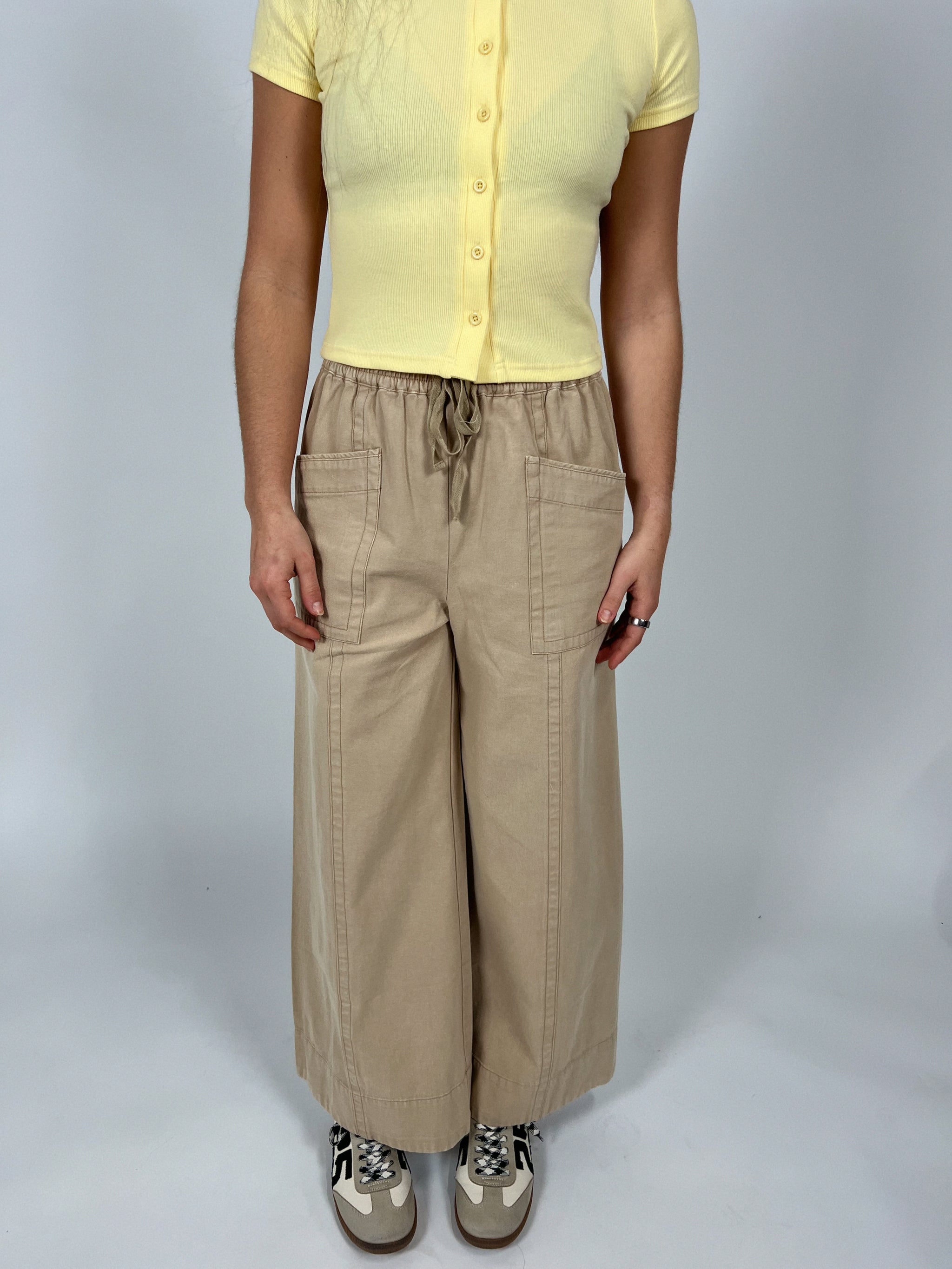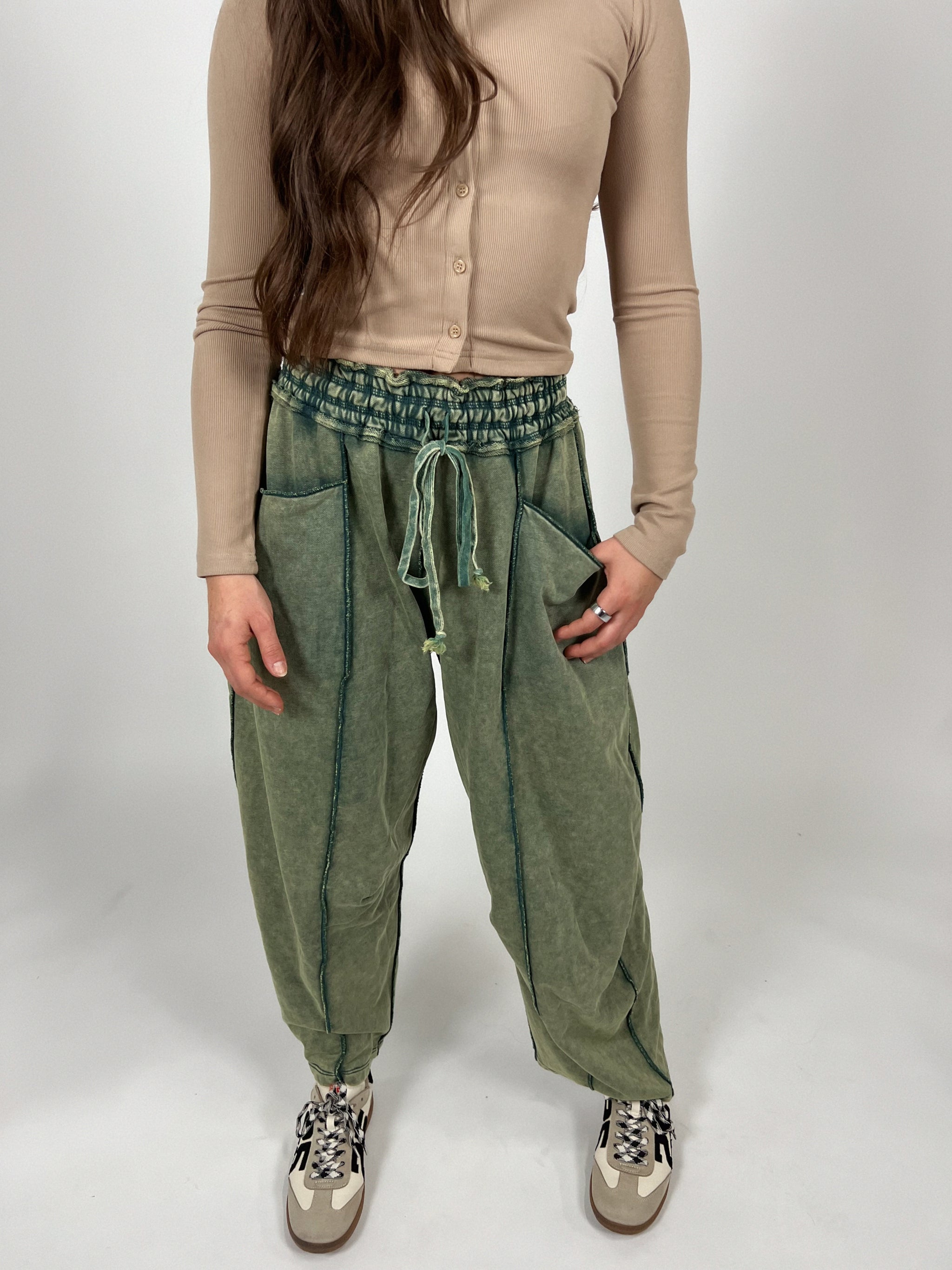 Minimal effort, maximum style. Features a flowy wide leg silhouette with an adjustable drawstring waist for the perfect fit. Designed in a lightweight, sage toned...