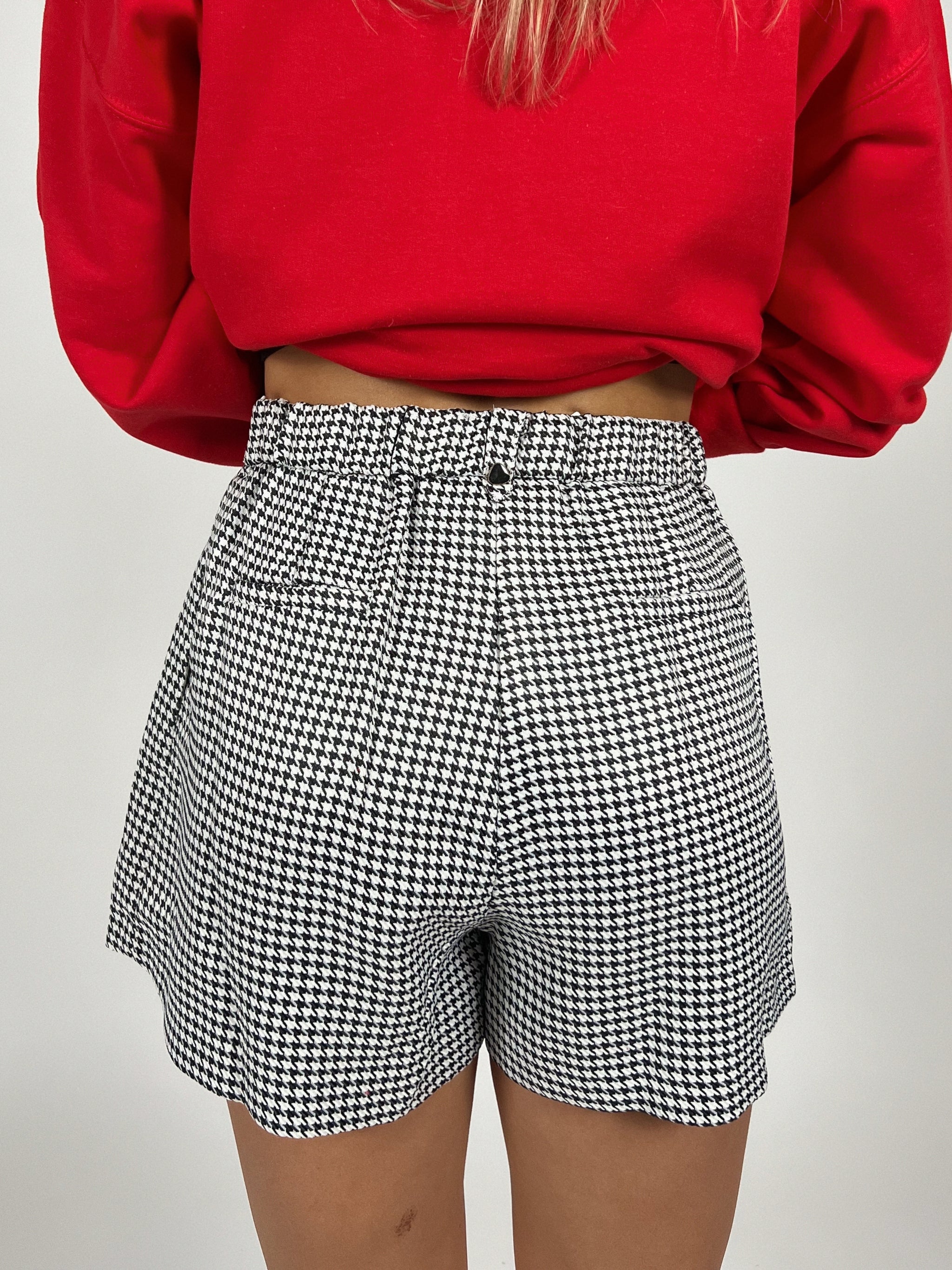 Chic, timeless, and effortlessly flattering. A new go-to designed with a classic black and white houndstooth pattern. These shorts feature a structured, skirt like silhouette...