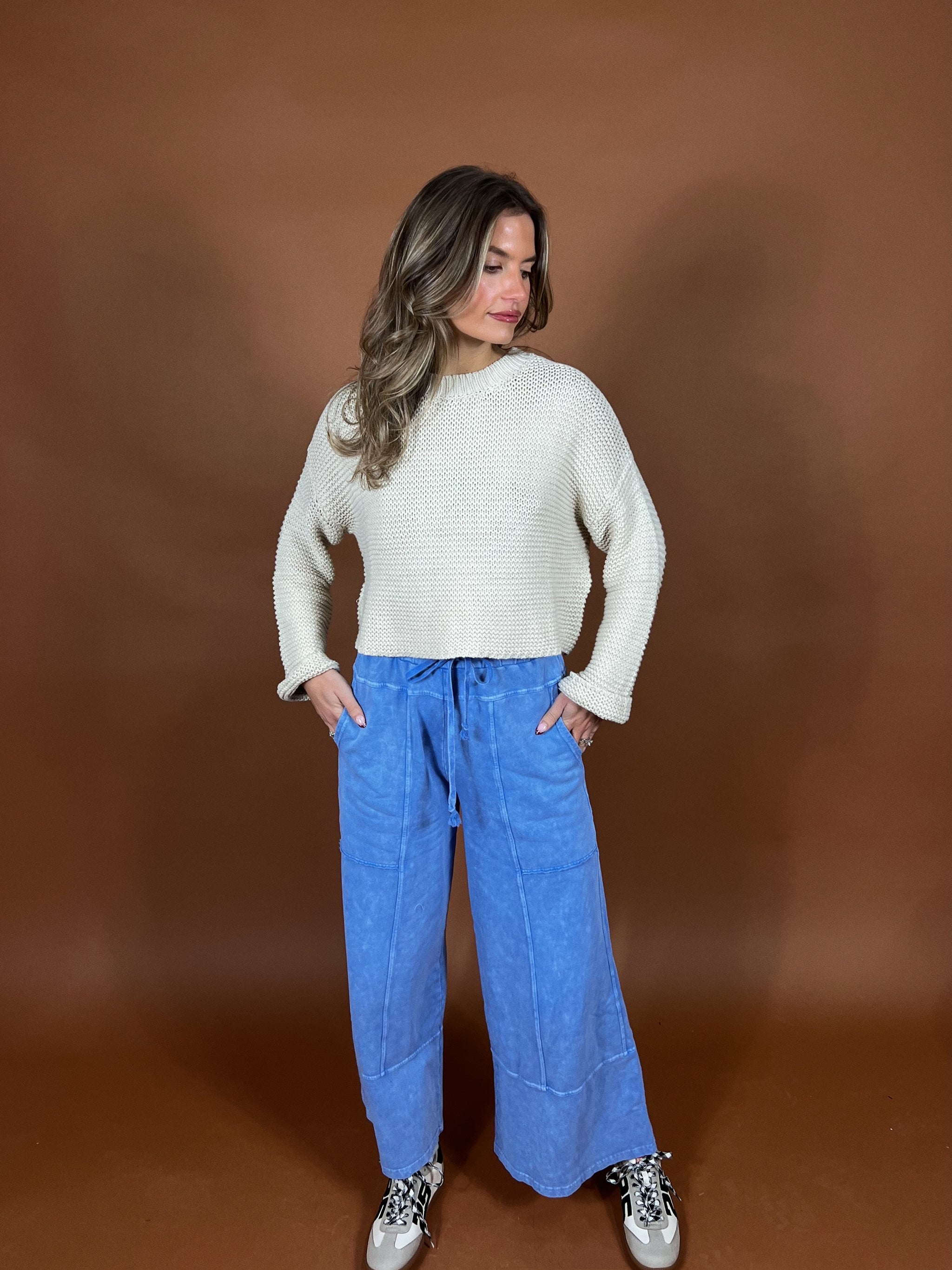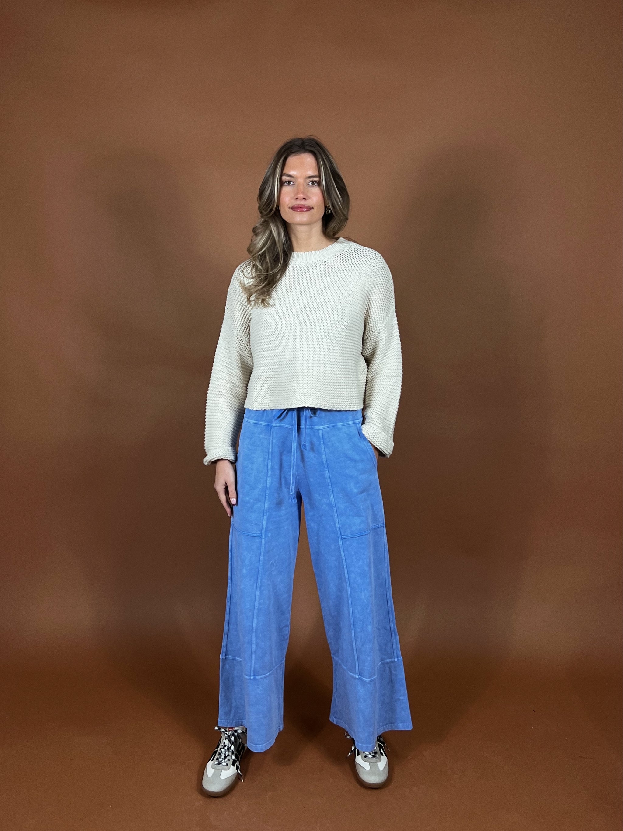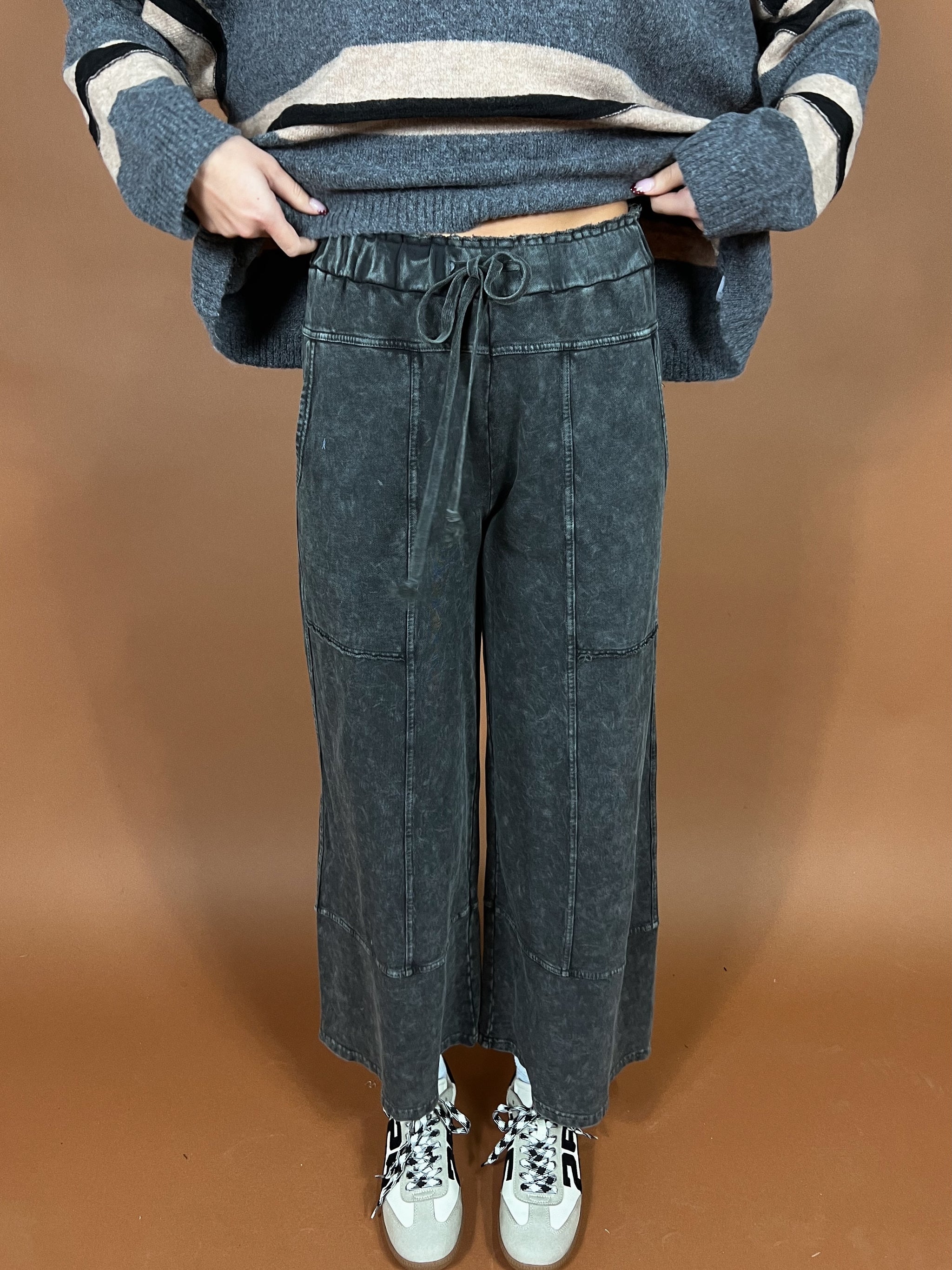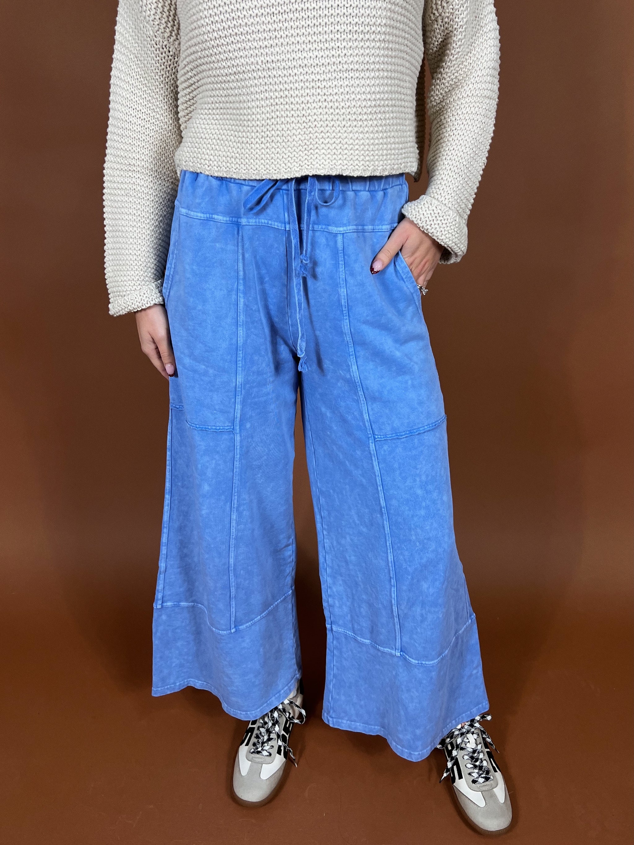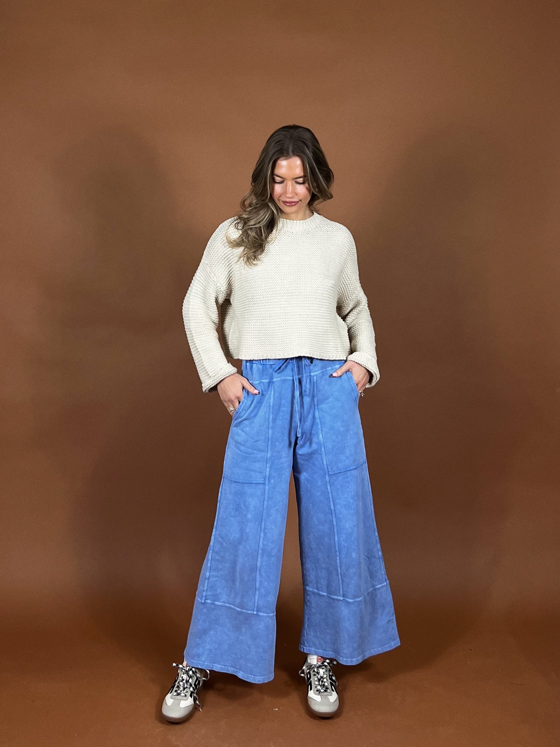 A new cozy essential -- featuring a wide-leg silhouette, ultra soft fabric, and an easy elastic waistband with a drawstring for that perfect fit and feel. Working from home, running around town, or dressing them up for work -- these pants are the ultimate casual, cool piece.