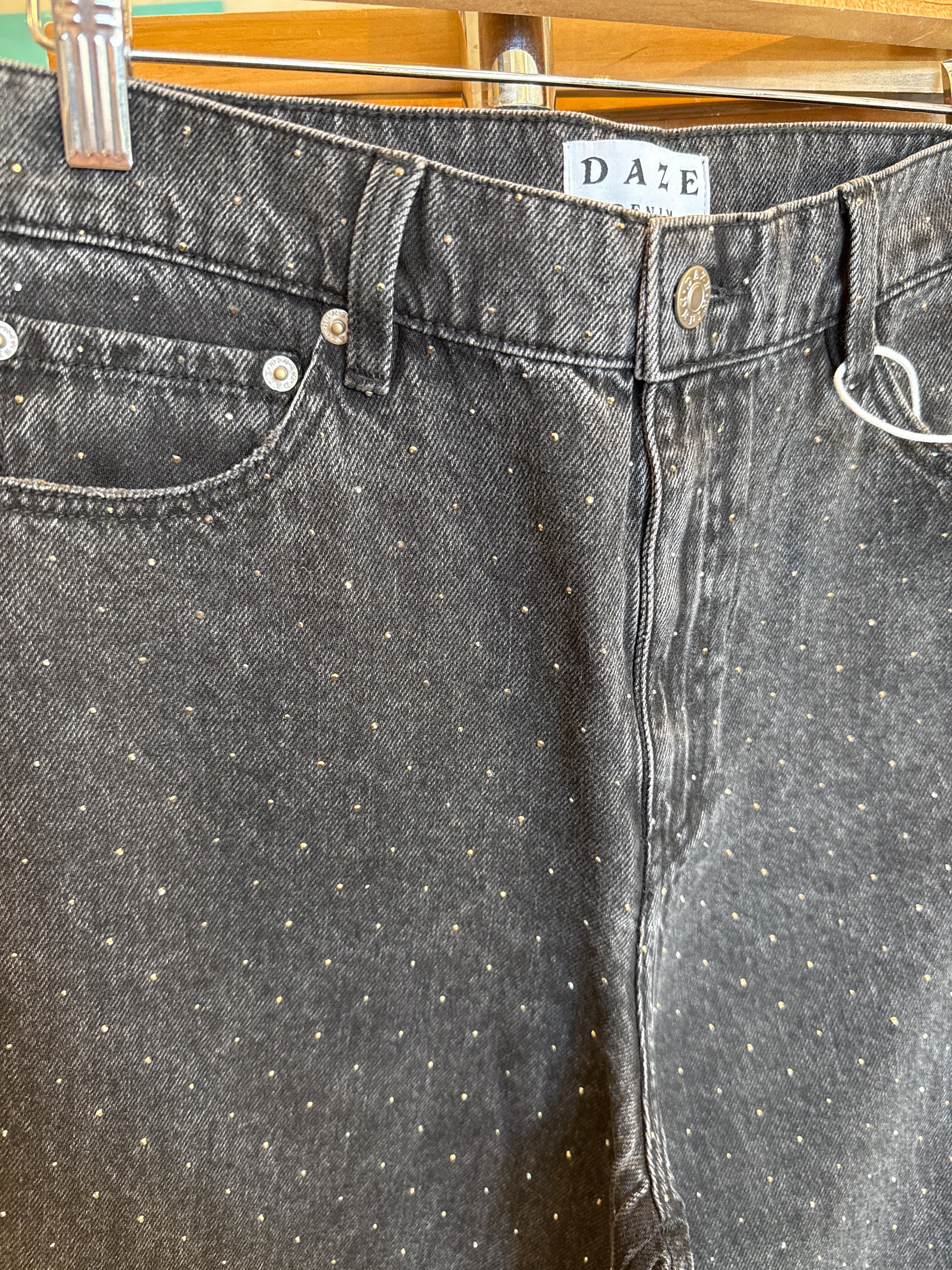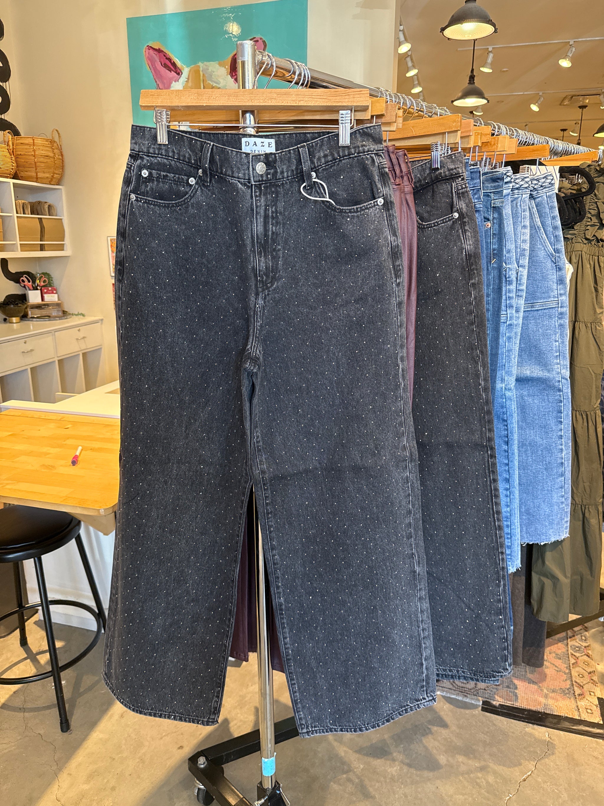 You're guaranteed to shine in every setting. These mid-rise palazzo jeans bring party-ready sparkle to your everyday wardrobe with festive studs scattered throughout the relaxed,...