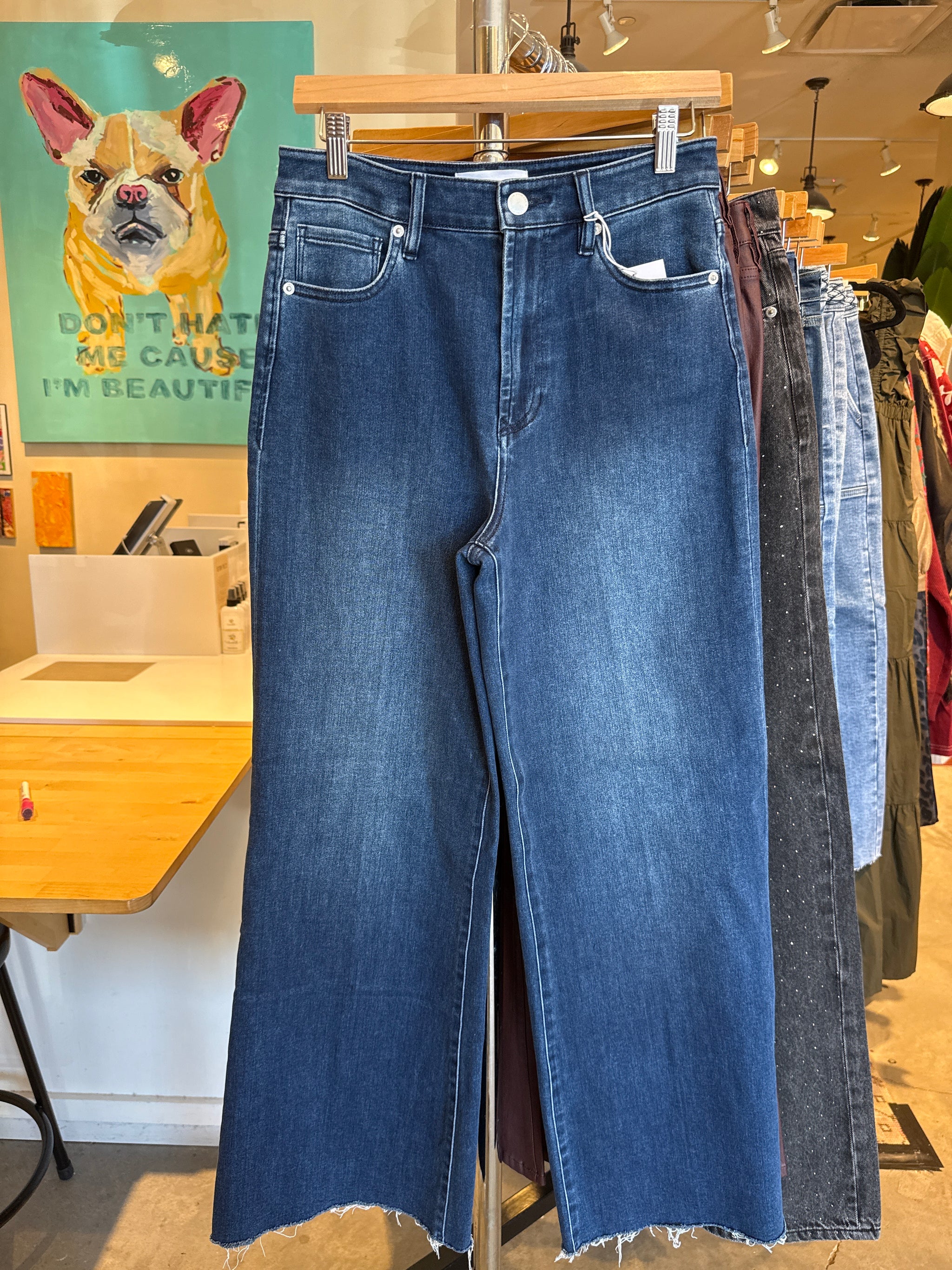 Everything is hotter in the valley. Inspired by LA's hottest neighborhood, the Valley Girl in Raw Cut is a high rise wide leg featuring retro-inspired...