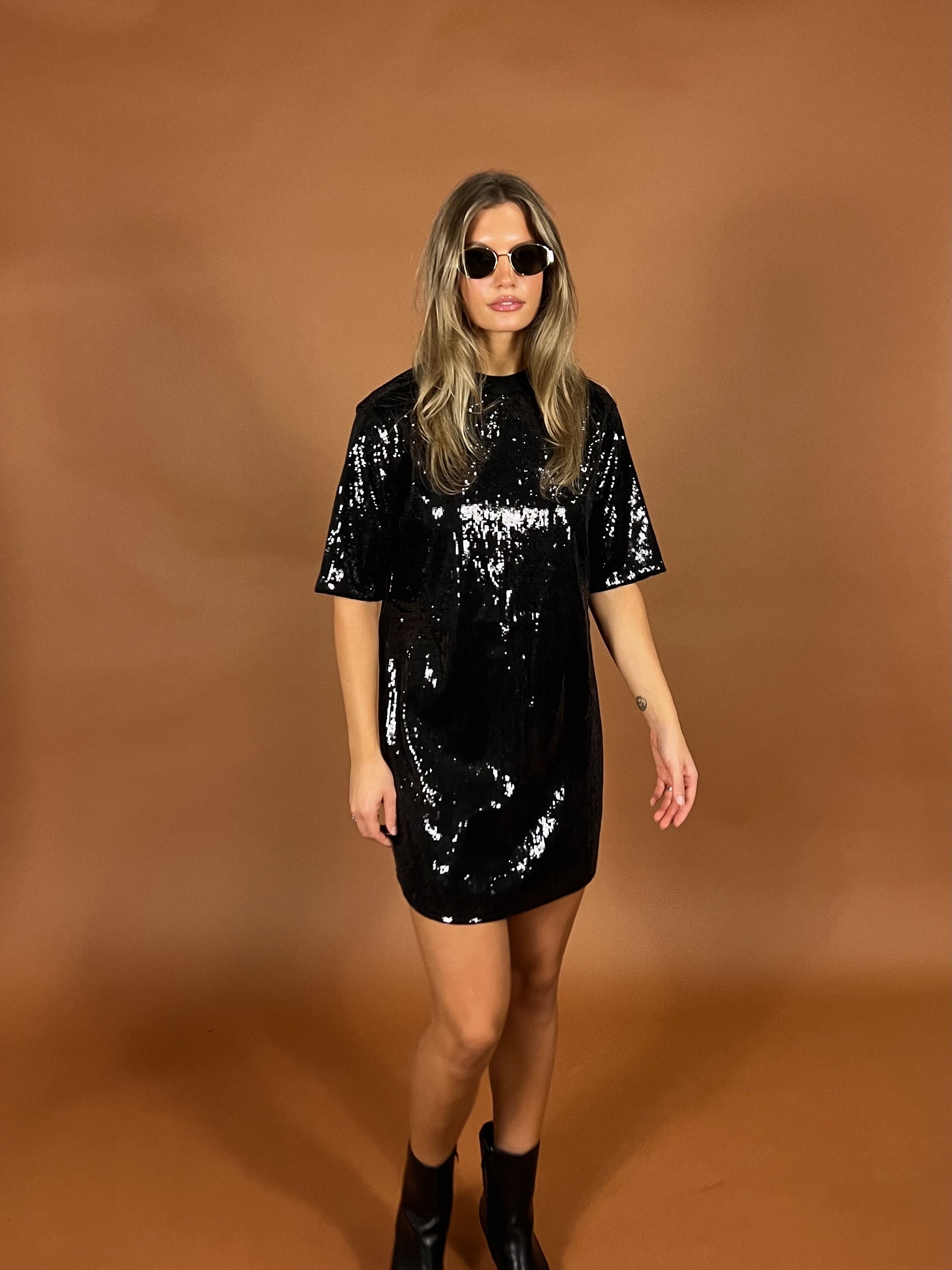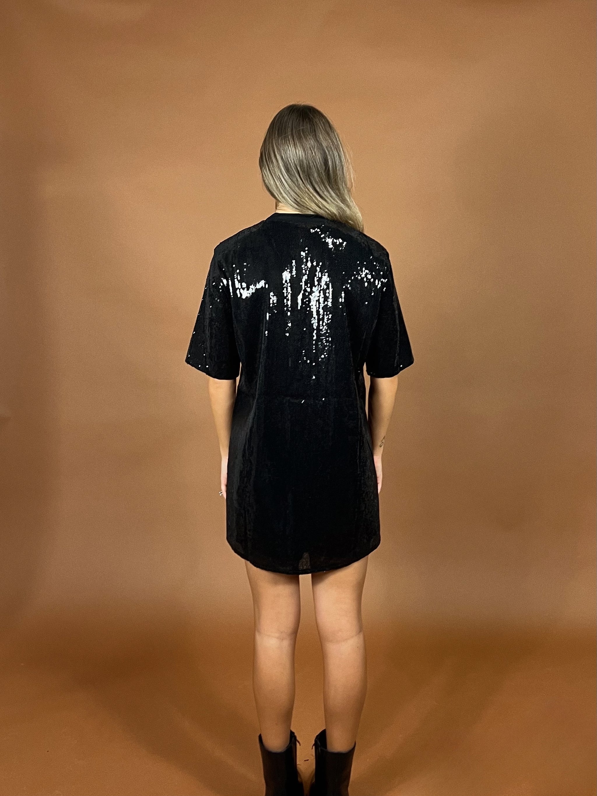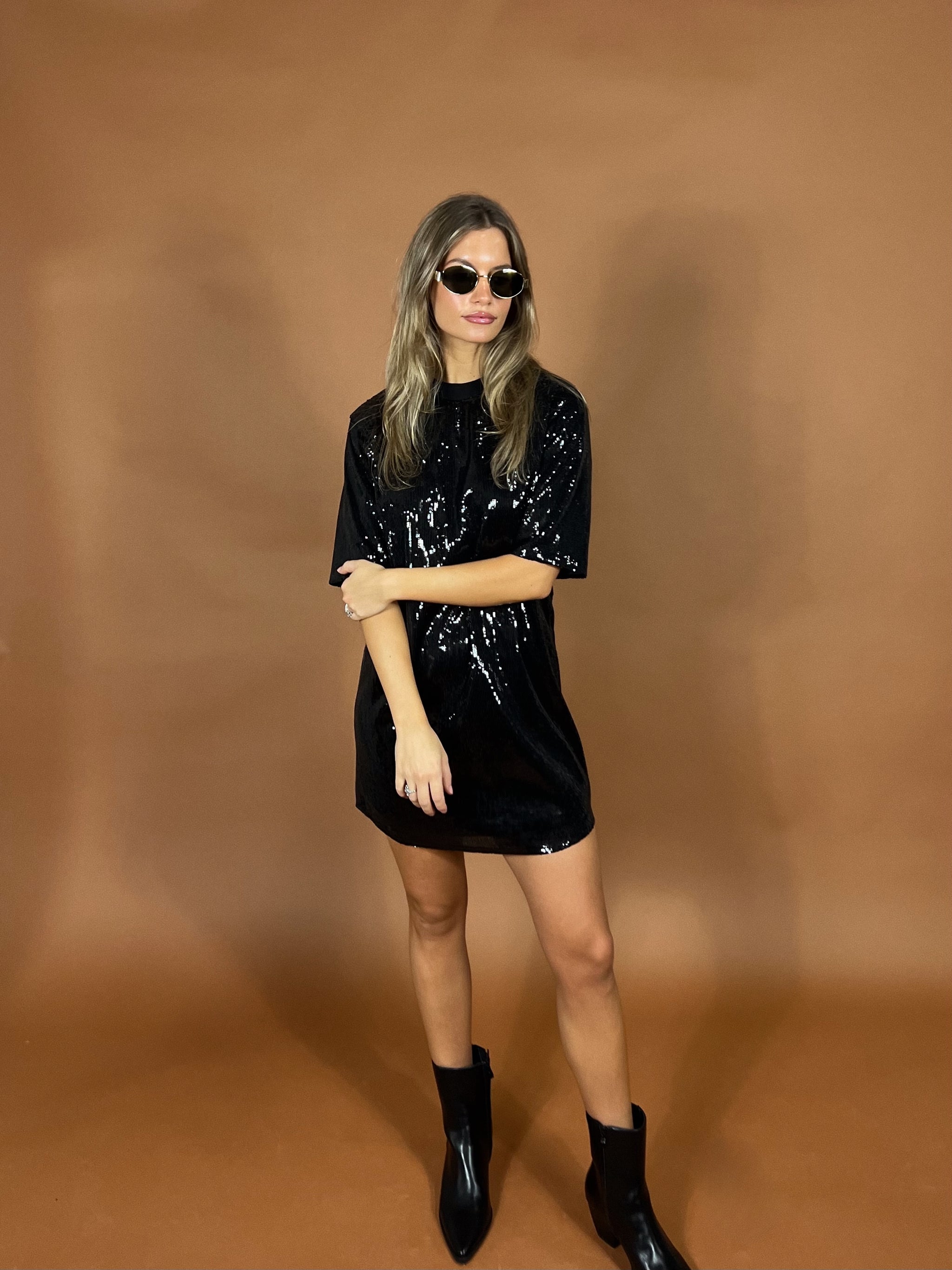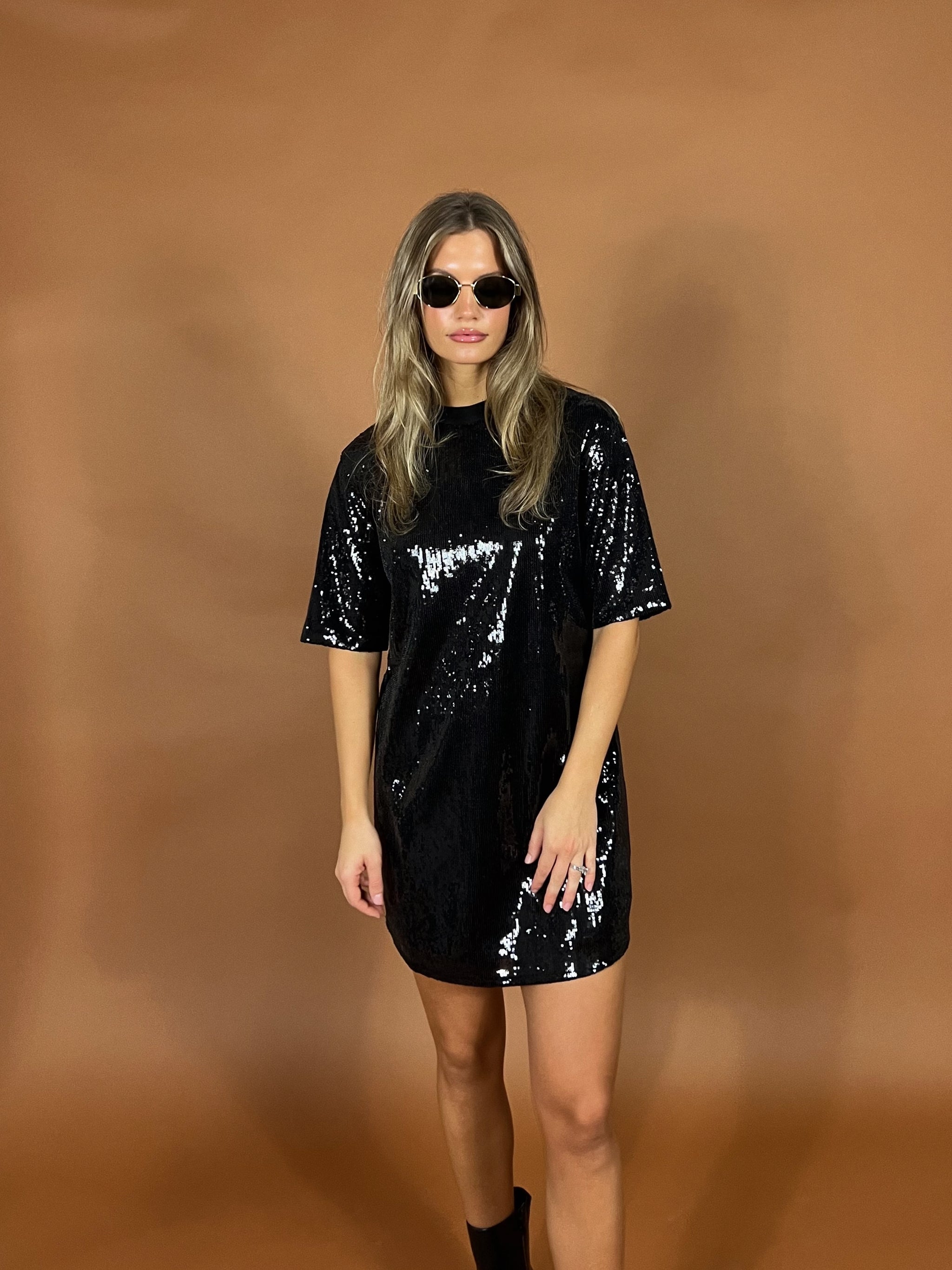 All eyes on you. This shimmering statement dress was made for every holiday soiree and night out moment. Features a crew neckline and relaxed, slightly...