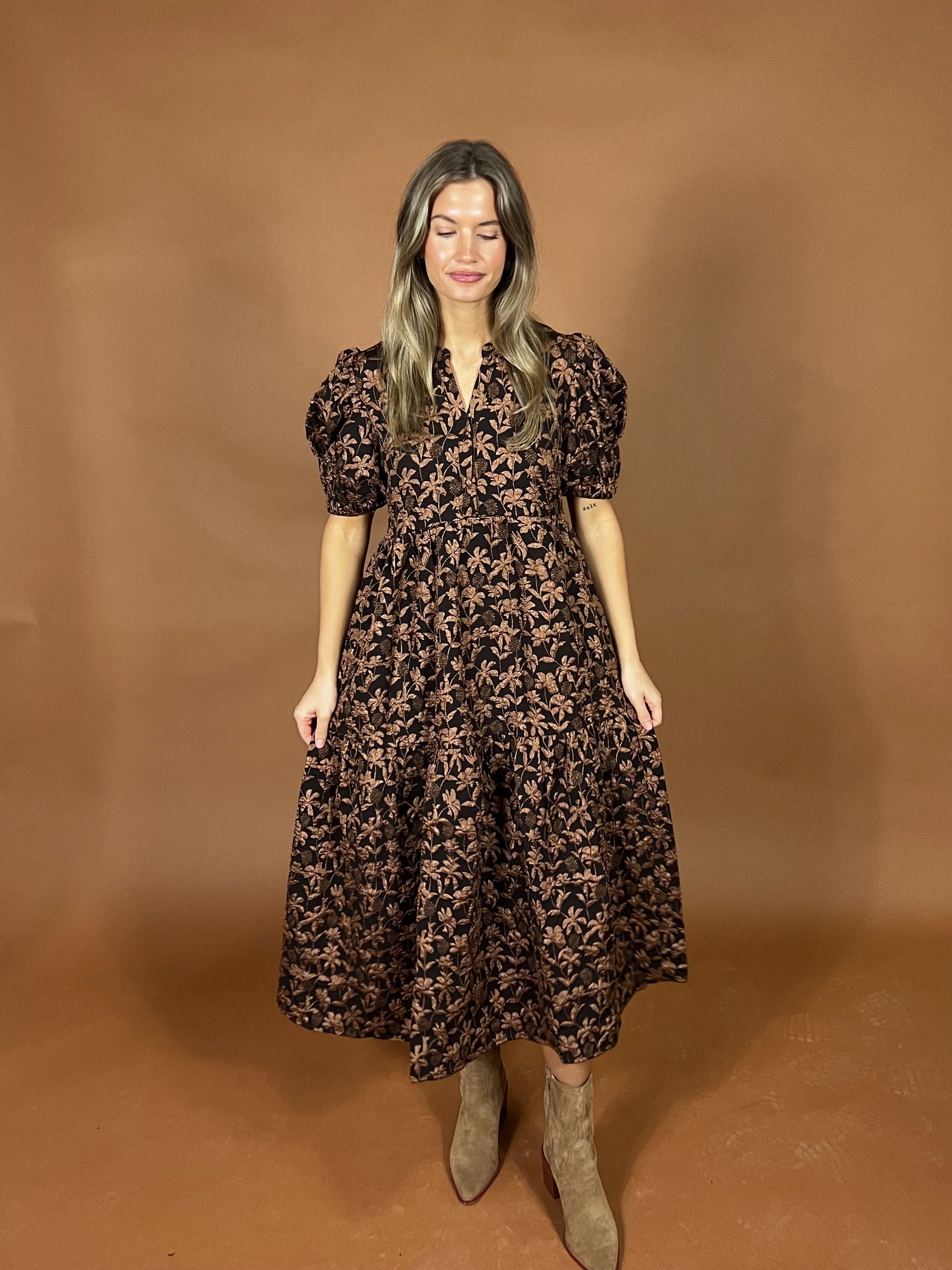 Fall's newest it girl is here. This dress brings effortless charm with its tiered silhouette, puff sleeves, and raised floral pattern. The material gives it...
