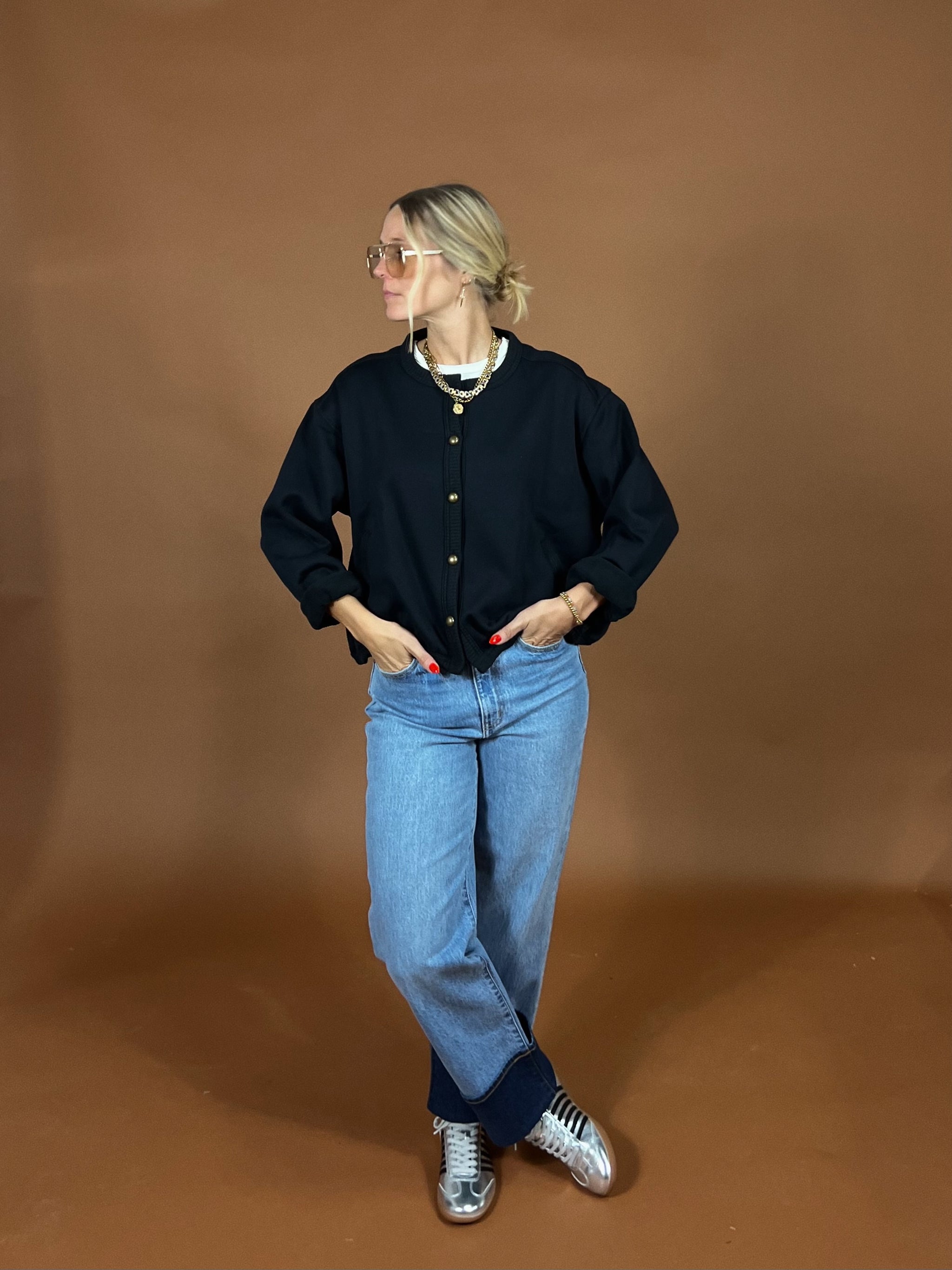 Turn heads this holiday season. A classic piece with a bold twist featuring a rich red woven tweed, structured silhouette, and a silver button details,...