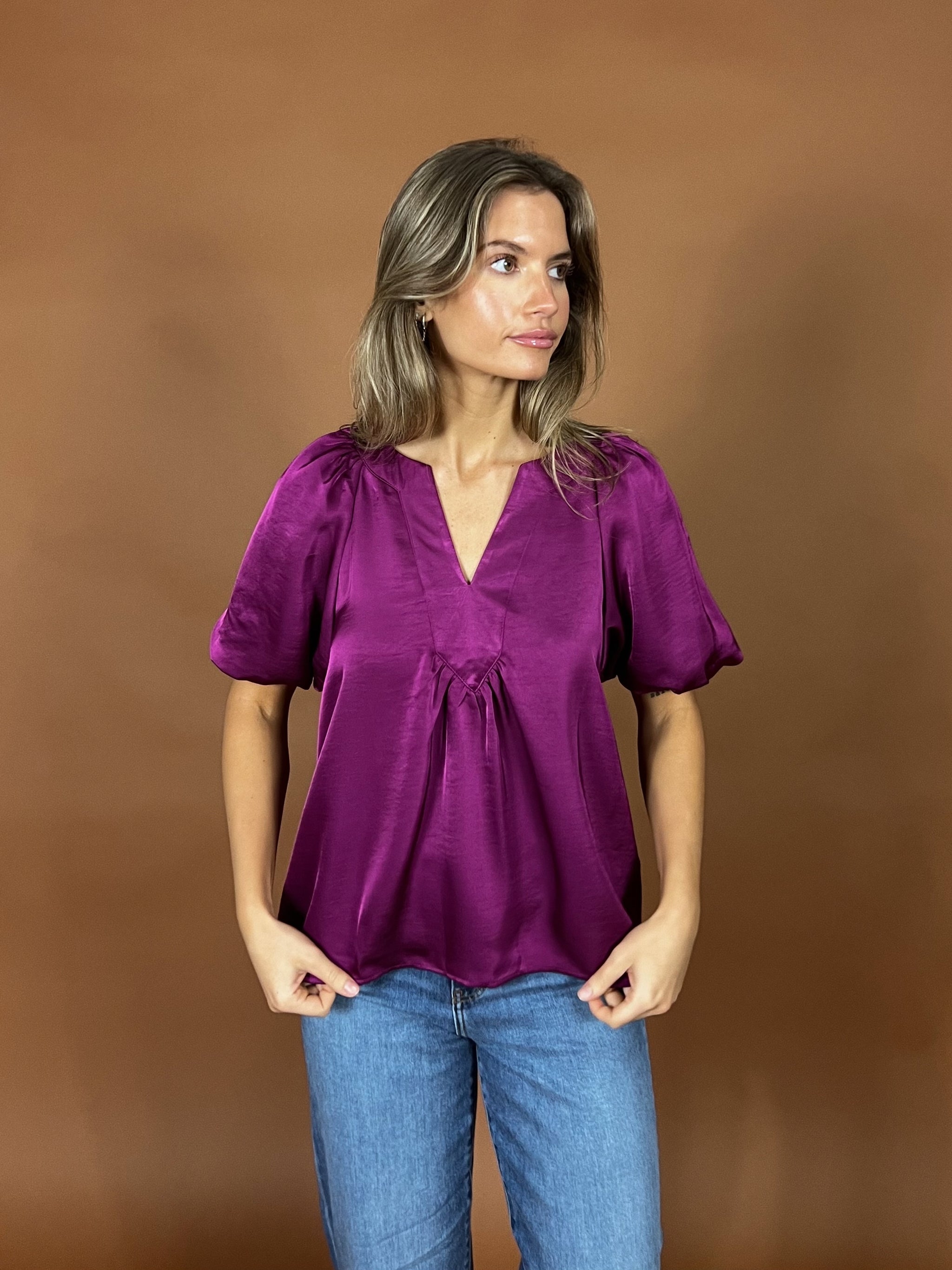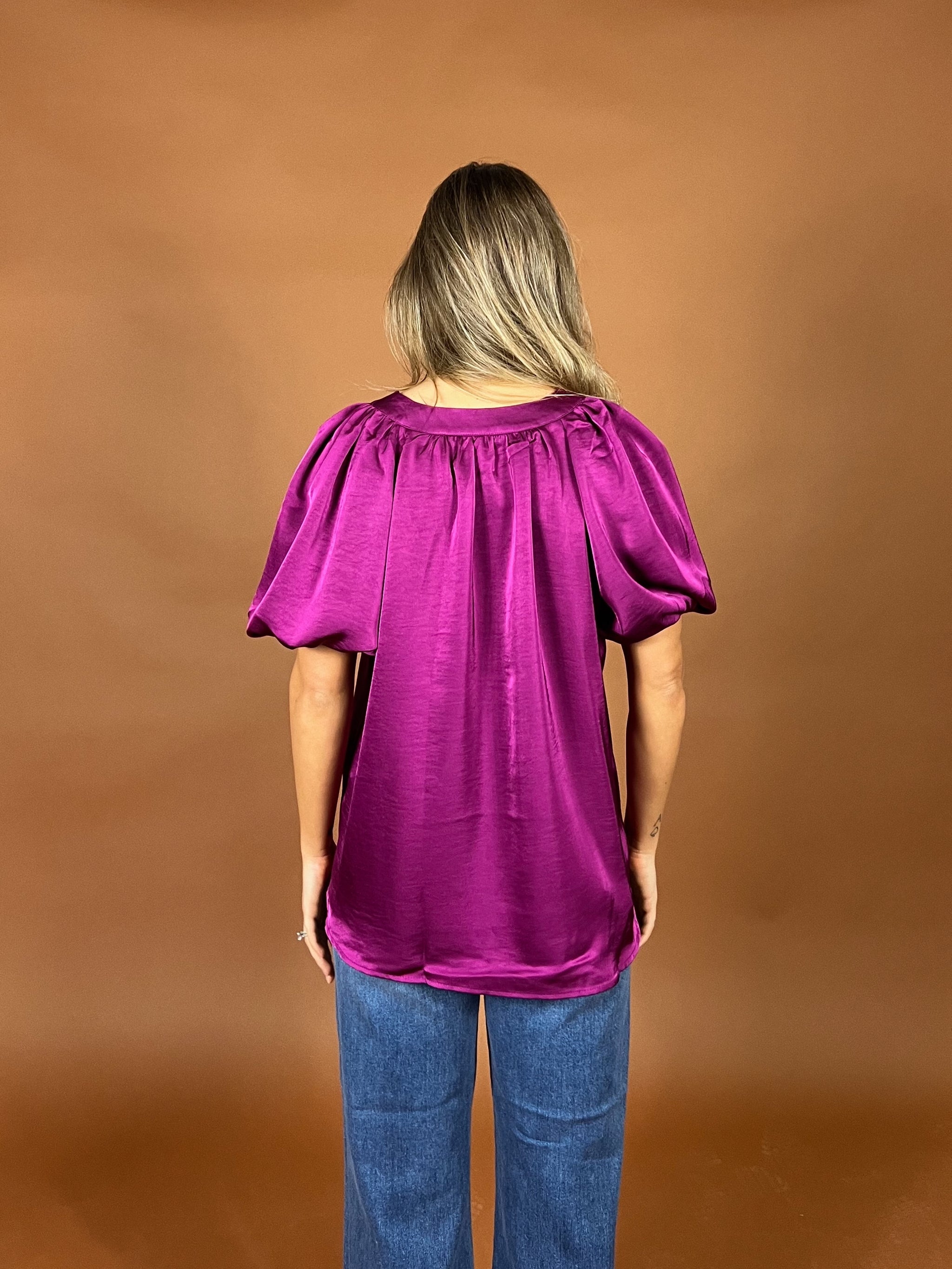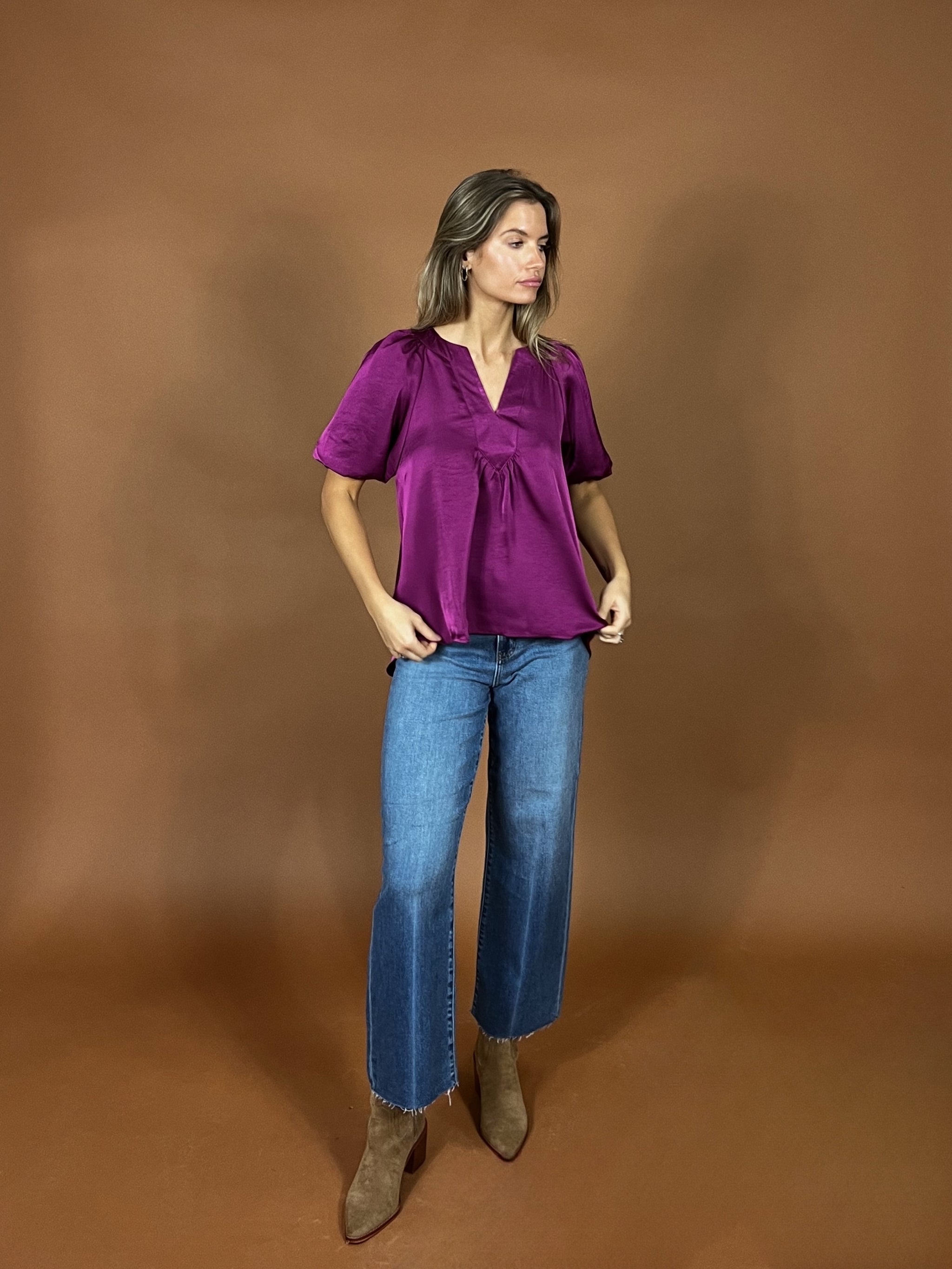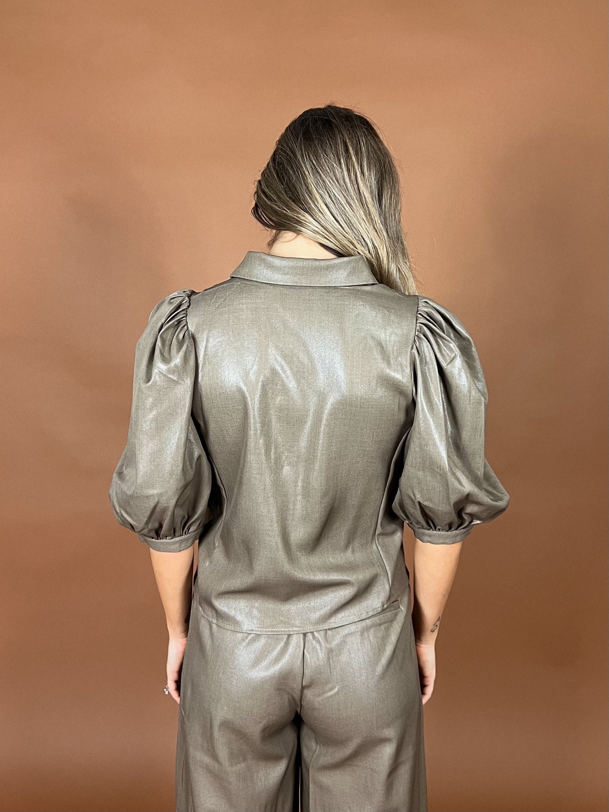 Elevated, effortless, and classic. An effortlessly polished button down top featuring a subtle sheen, statement puff sleeves, and a relaxed, modern fit. It's the kind...