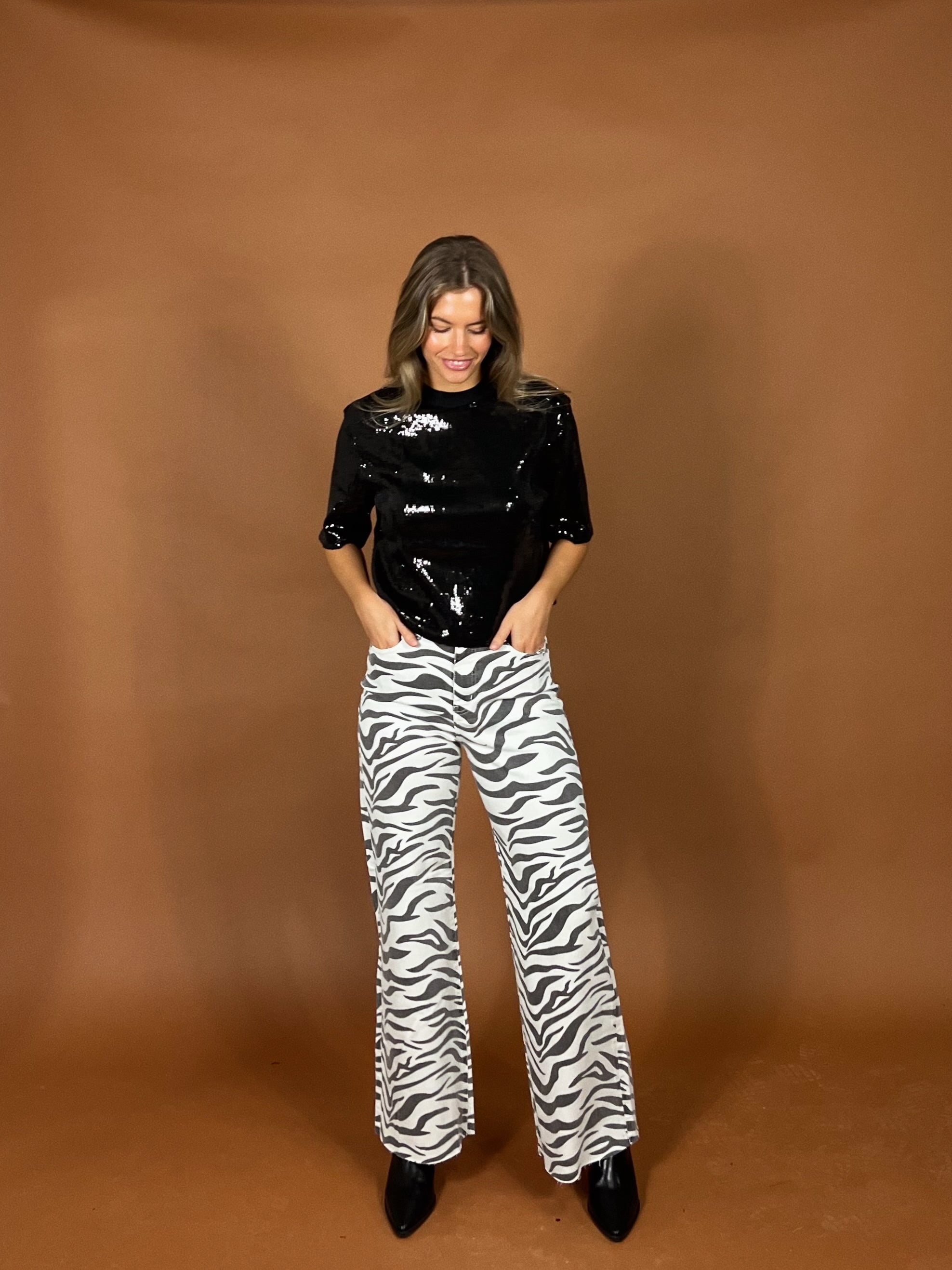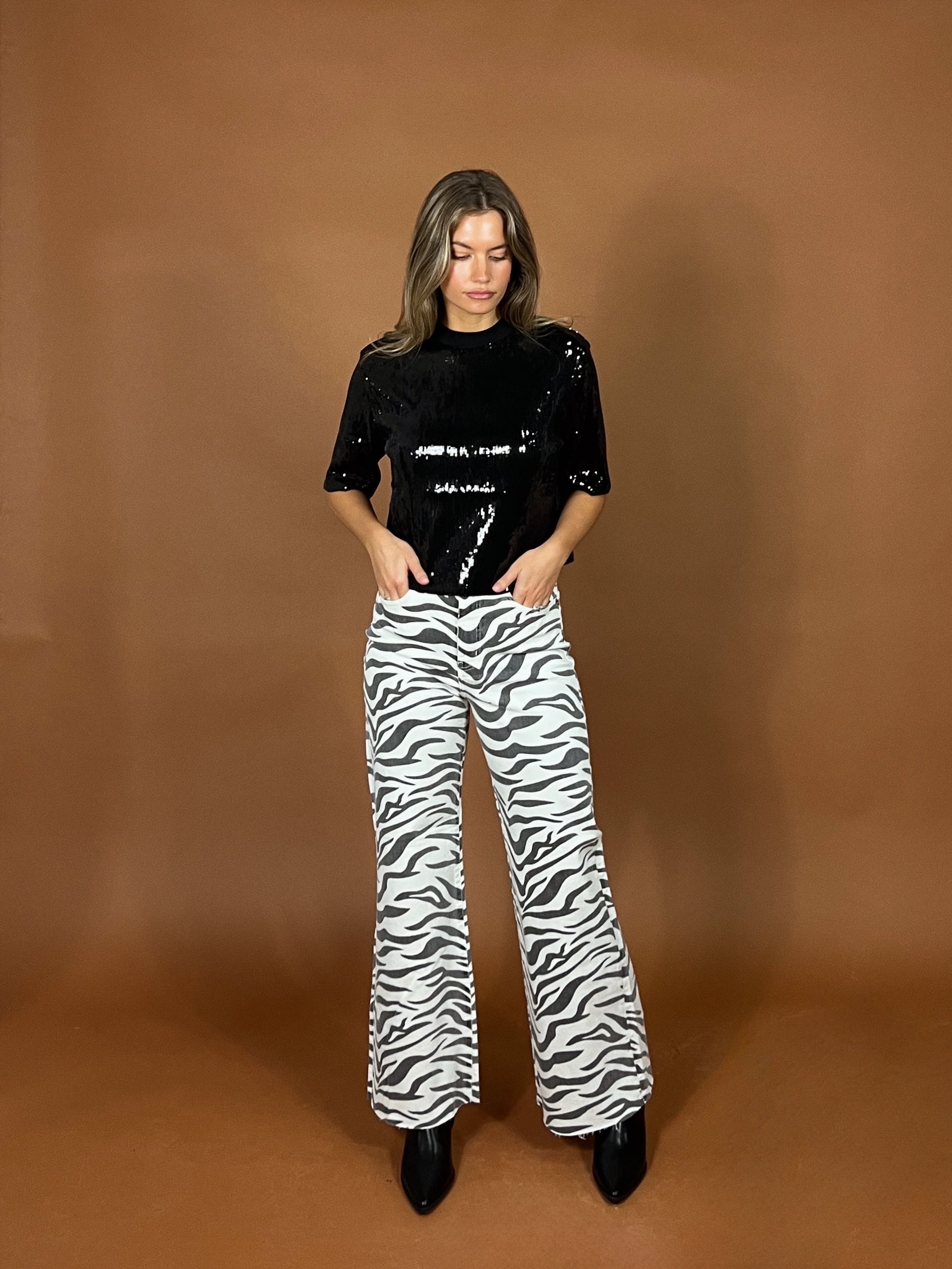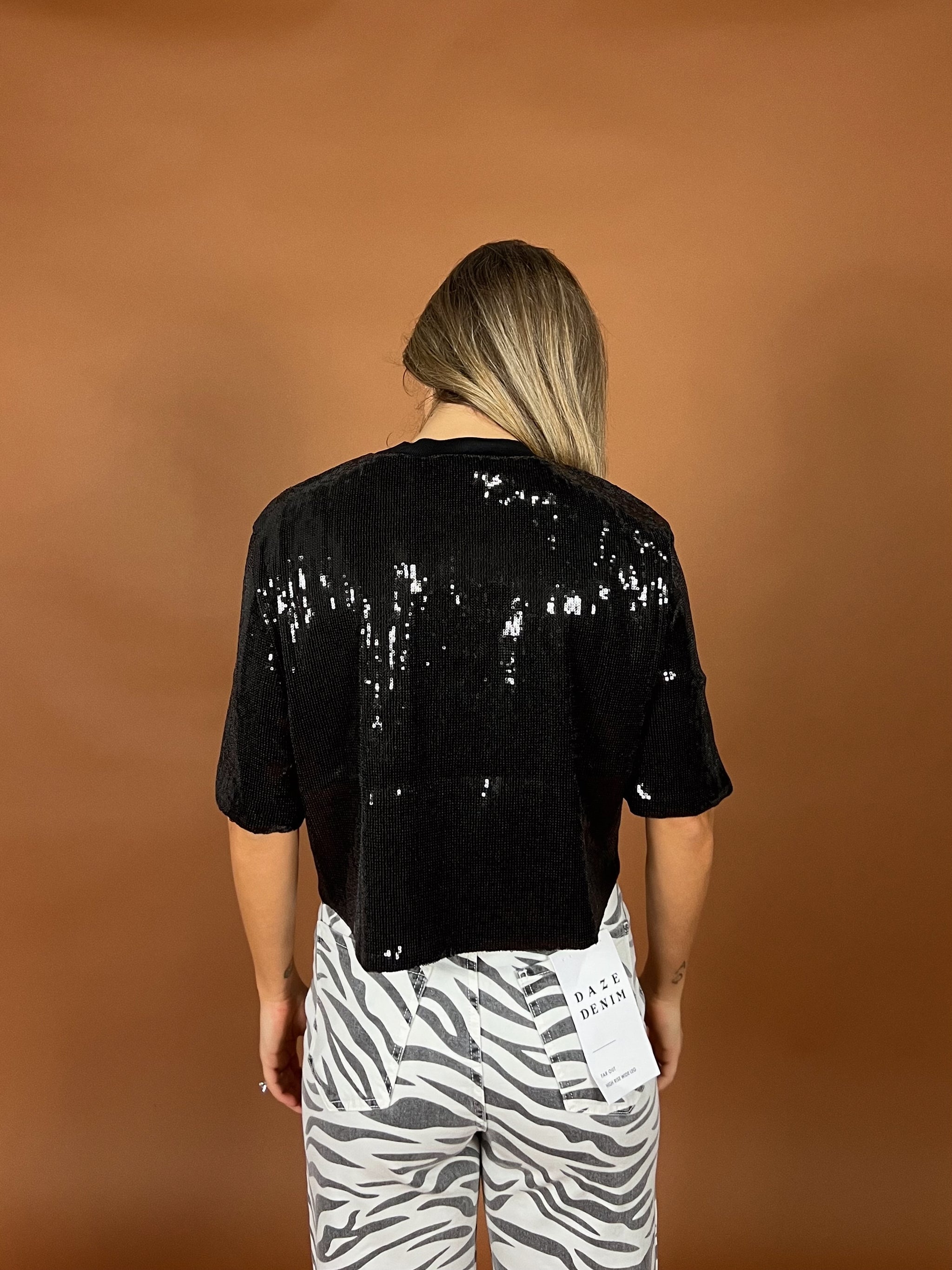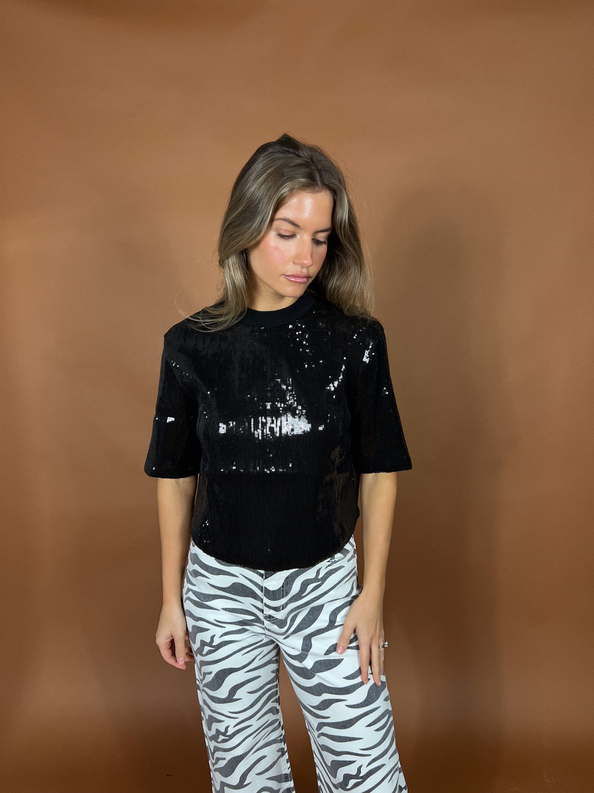 Turn every occasion into your moment. This top blends glimmering cheetah sequins with an effortlessly modern silhouette. Slightly boxy, subtly cropped, and ready to shine....