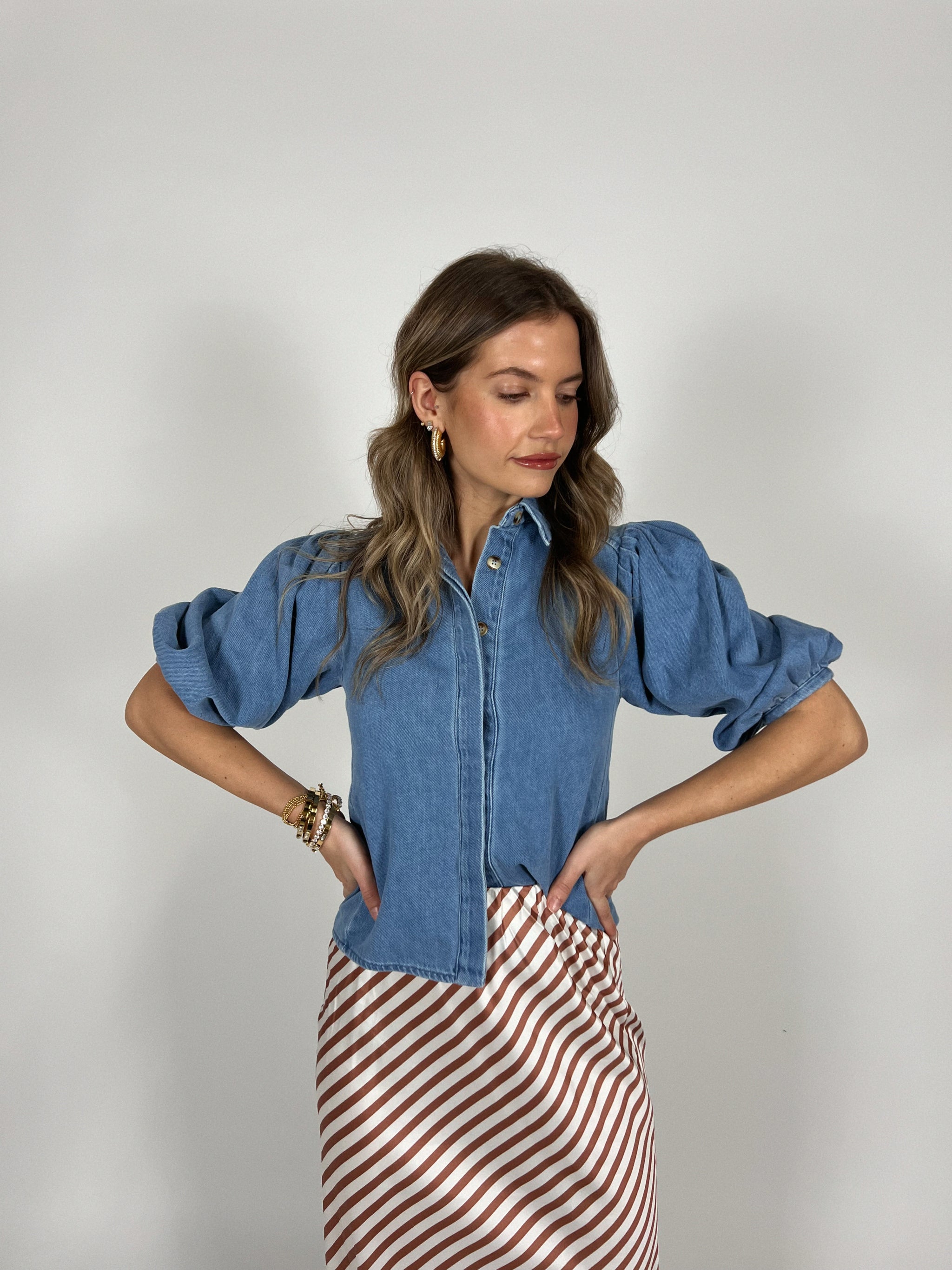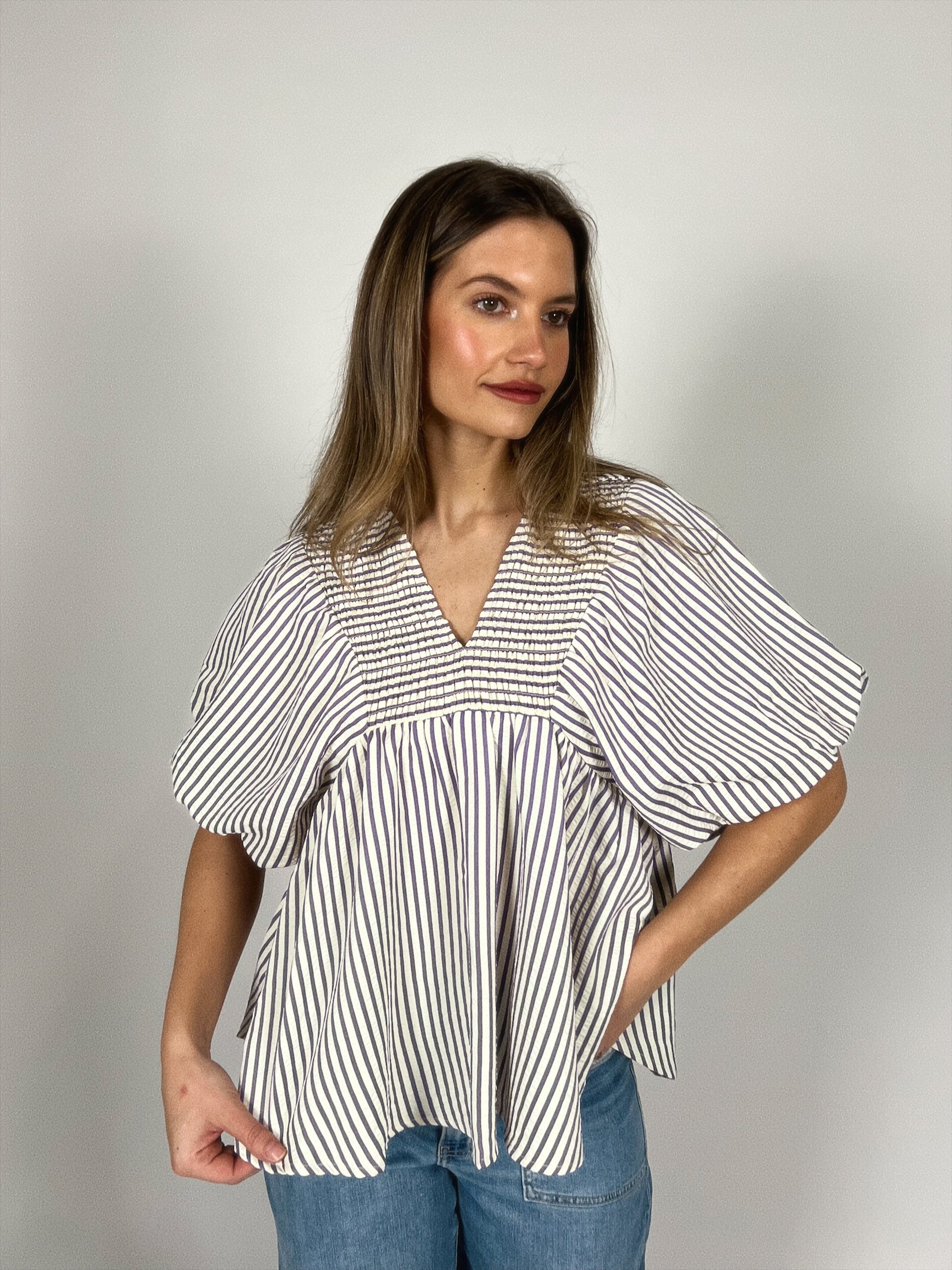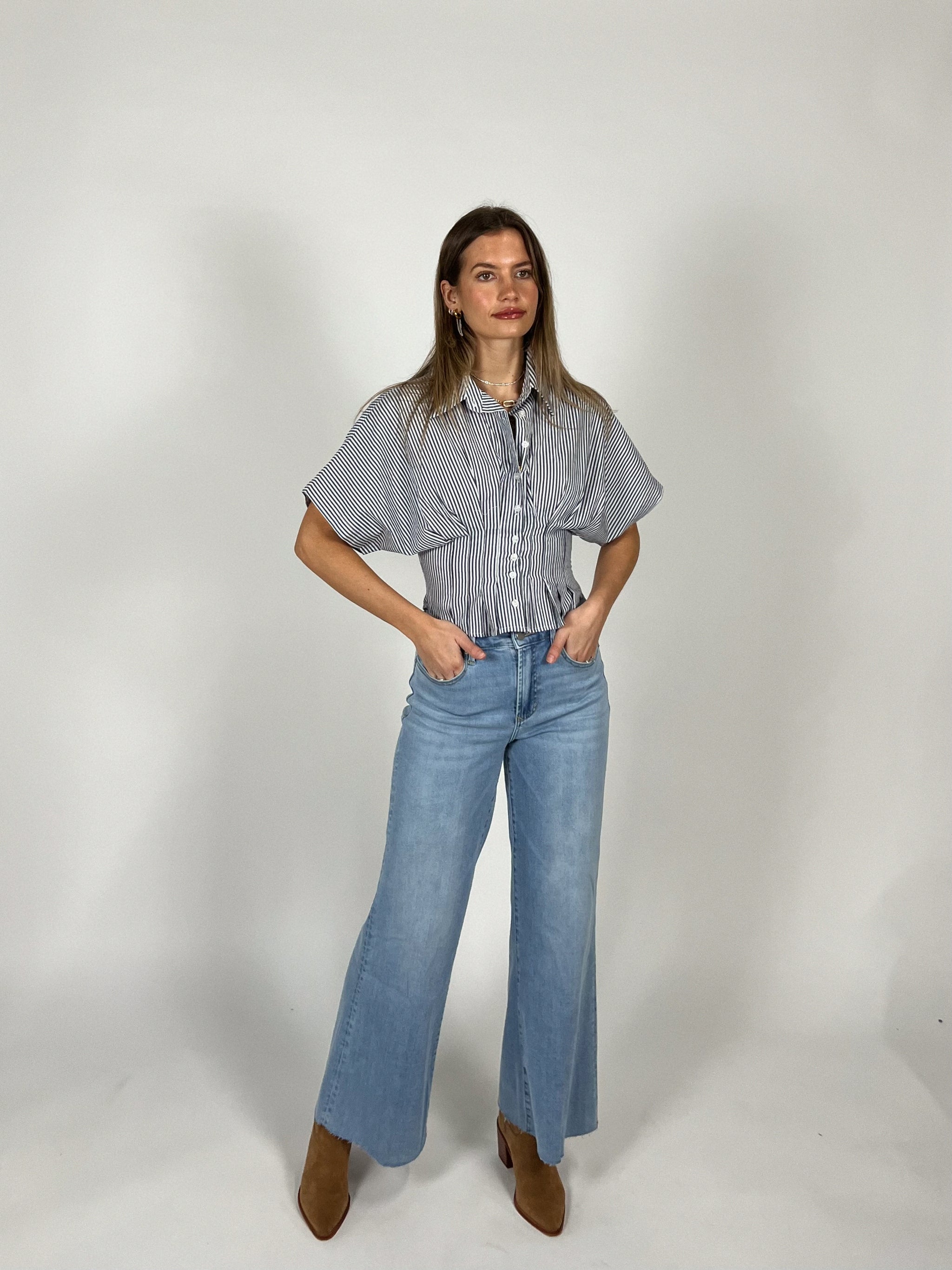 Your go-to piece for elevated, effortless, everyday style. Designed with a lightweight striped fabric, relaxed silhouette, and classic button-front detail, this top makes getting dressed feel...