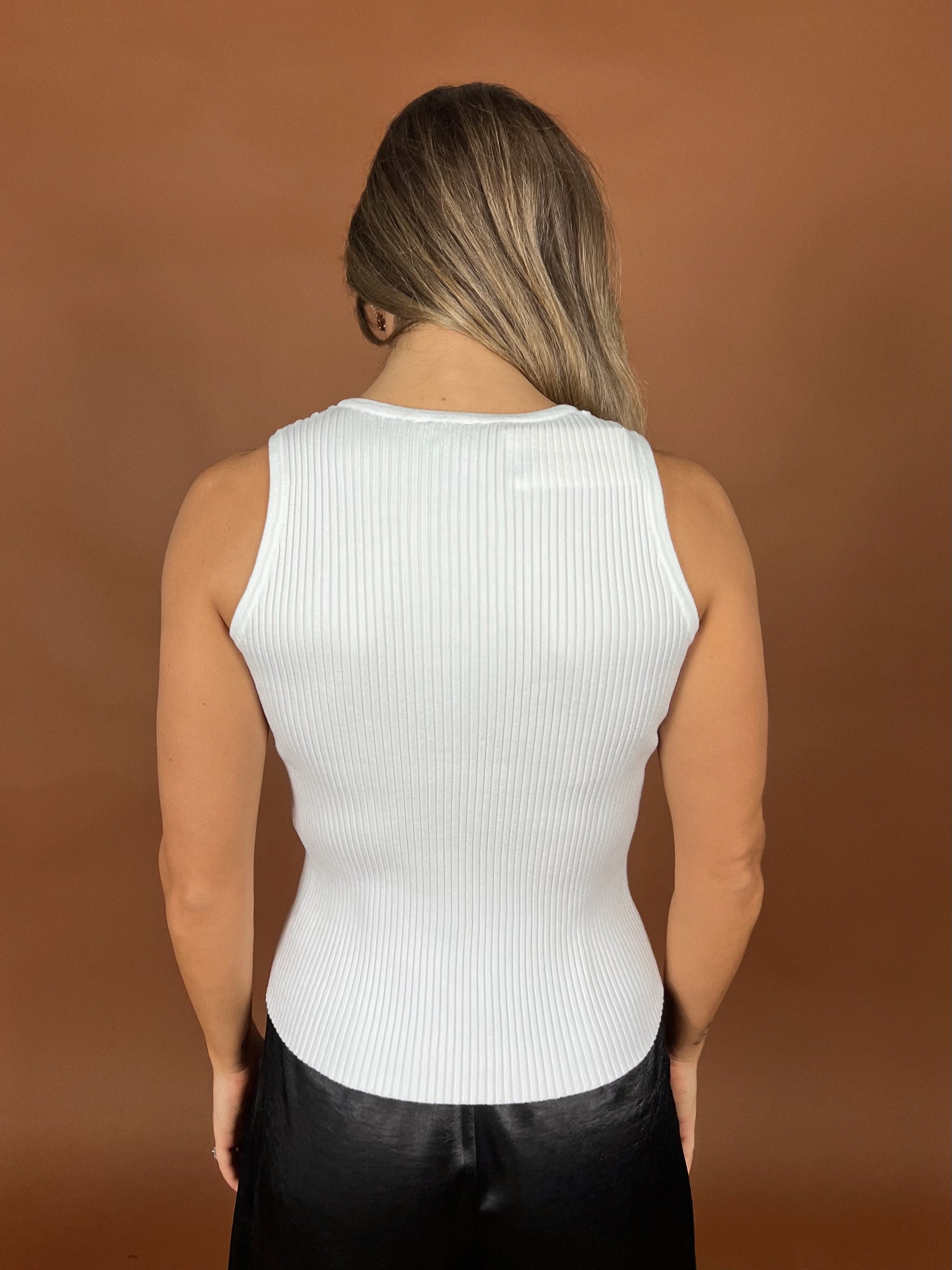 Clean. Classic. Effortless. A go-with-everything knit tank you'll reach for over and over again. With its high neckline, soft ribbed, knit texture, and flattering racerback...
