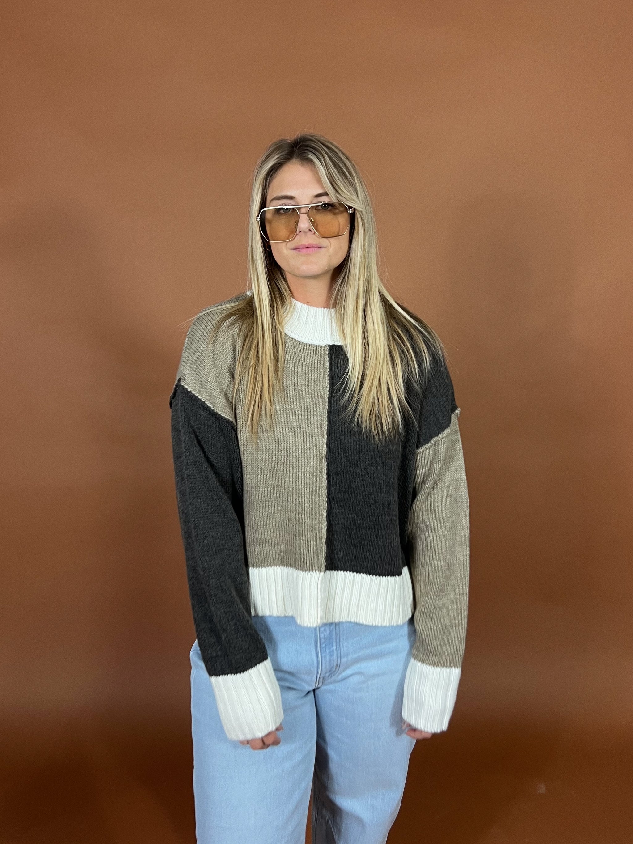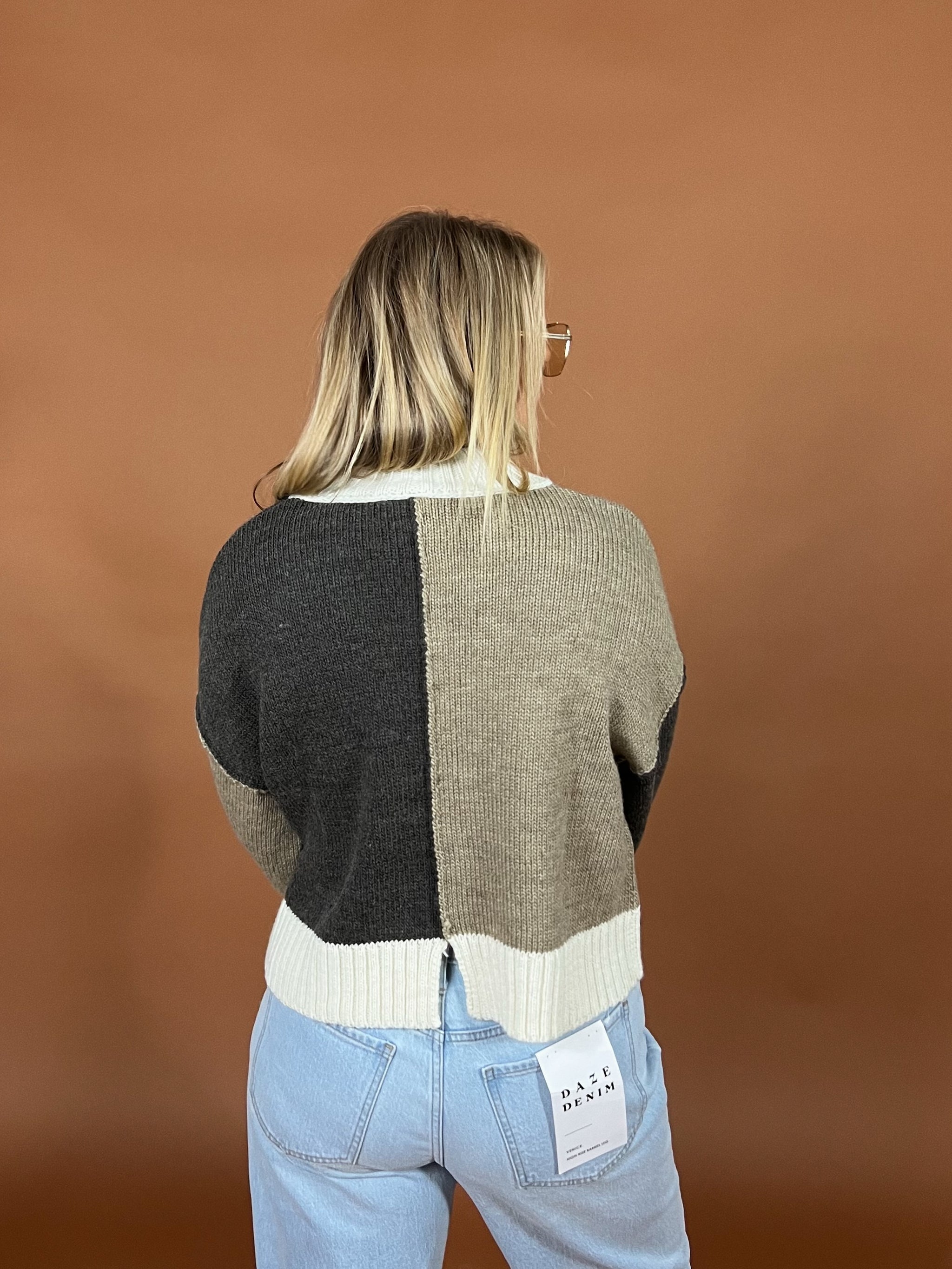 Laid back, cool girl vibes. Easy and effortless this sweater features bold, navy and olive, collegiate style stripes on the body and contrasting stripes on...