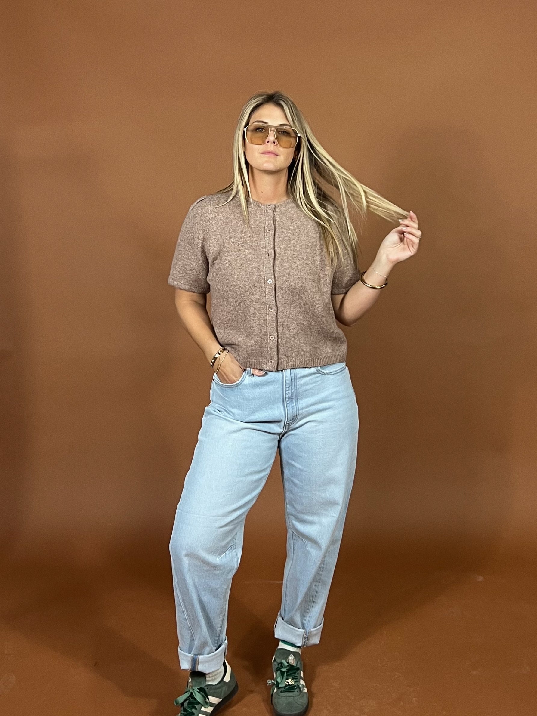 Soft, sweet, and slightly nostalgic. This short sleeve sweater brings all the cozy vibes of your favorite fall cardigan but in a fresh, modern silhouette...