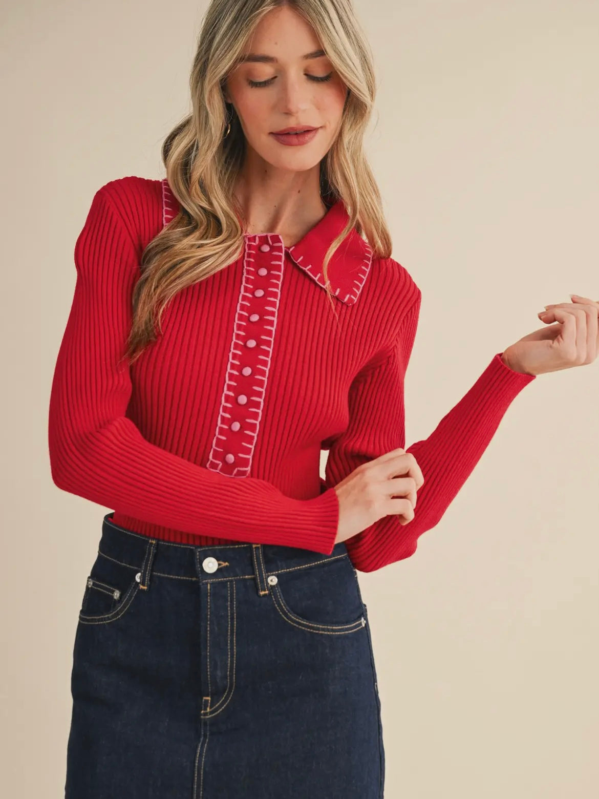 Classic and cool. This short sleeve sweater blends cozy texture with polished structure. Features subtle puff sleeves with intricate embroidery, a soft knit, and an...