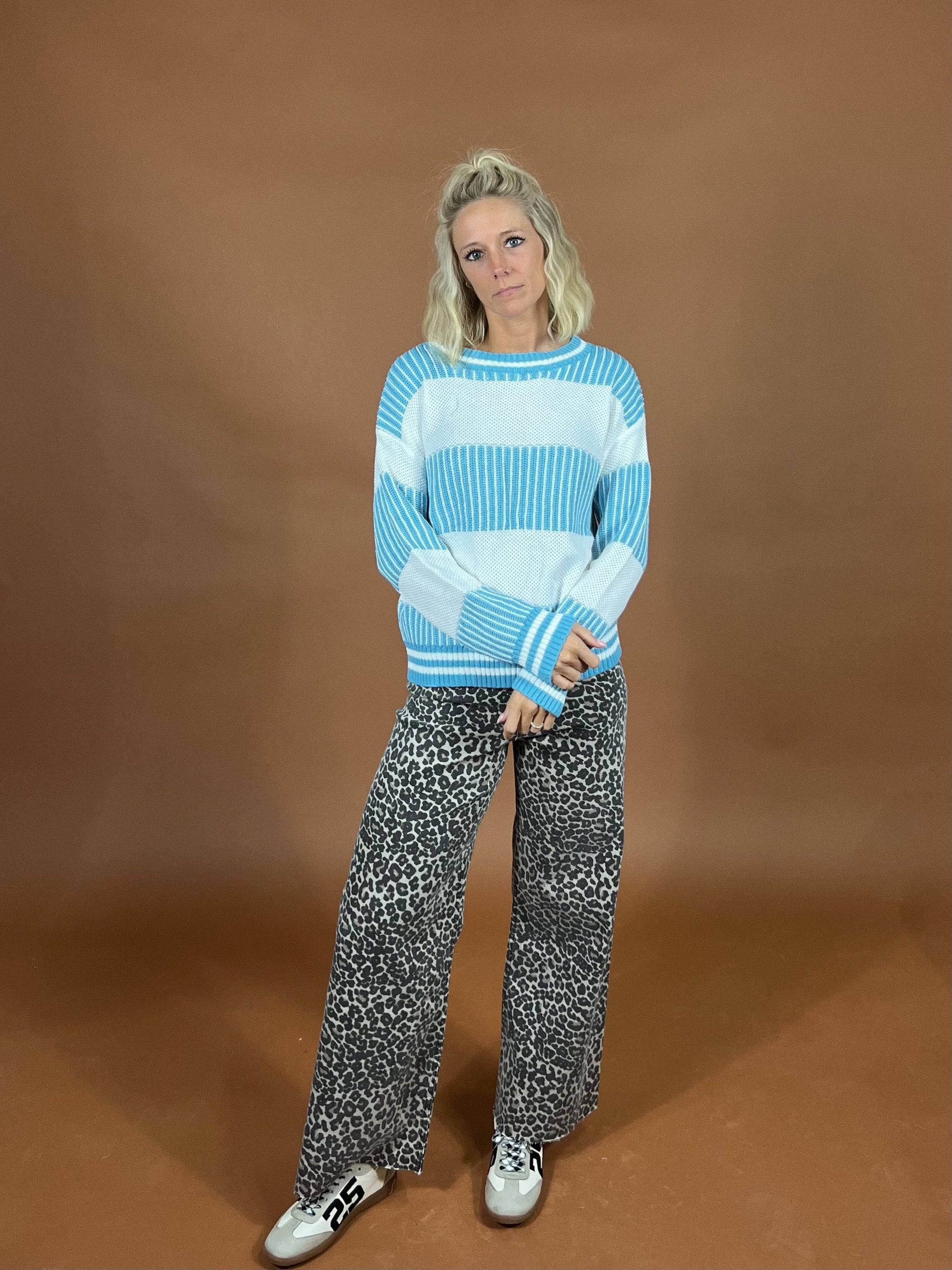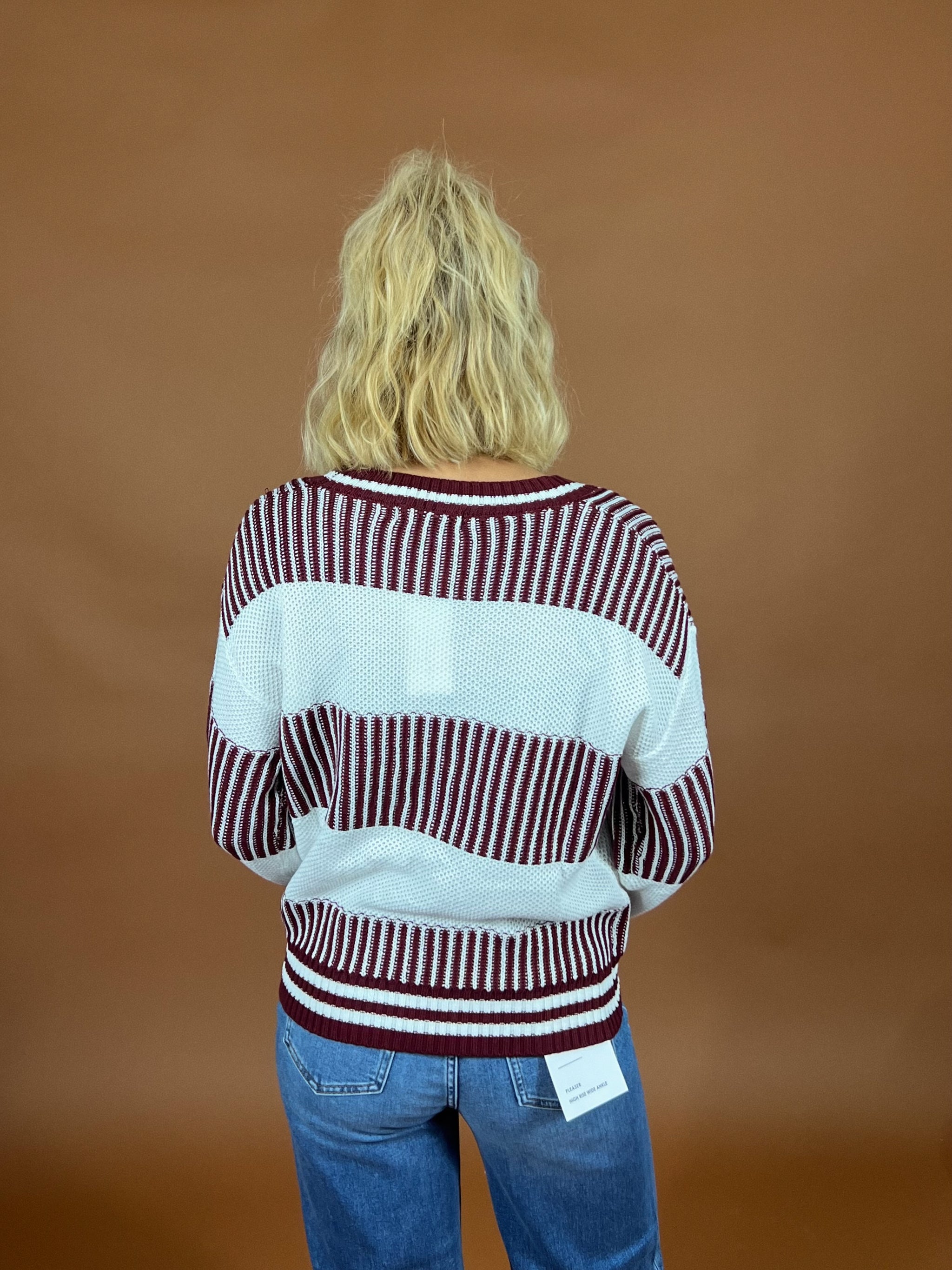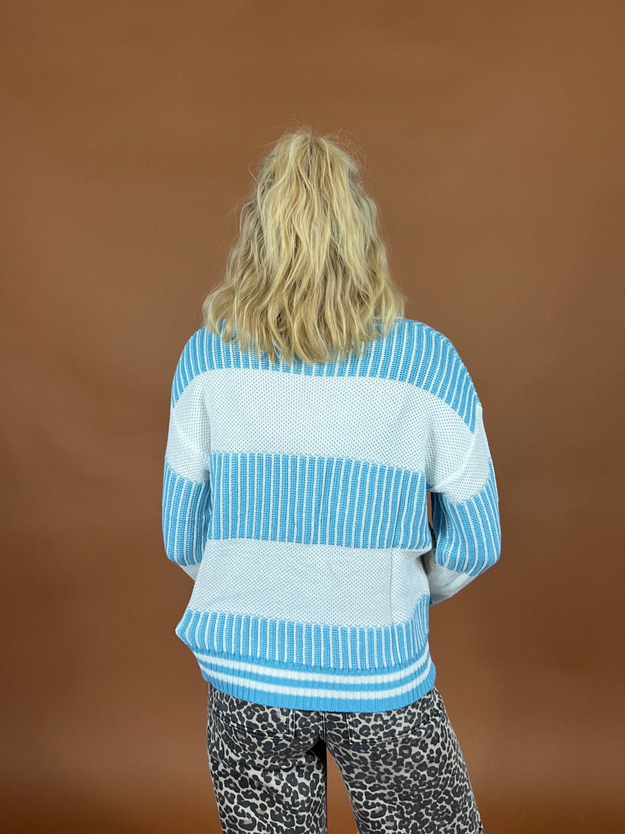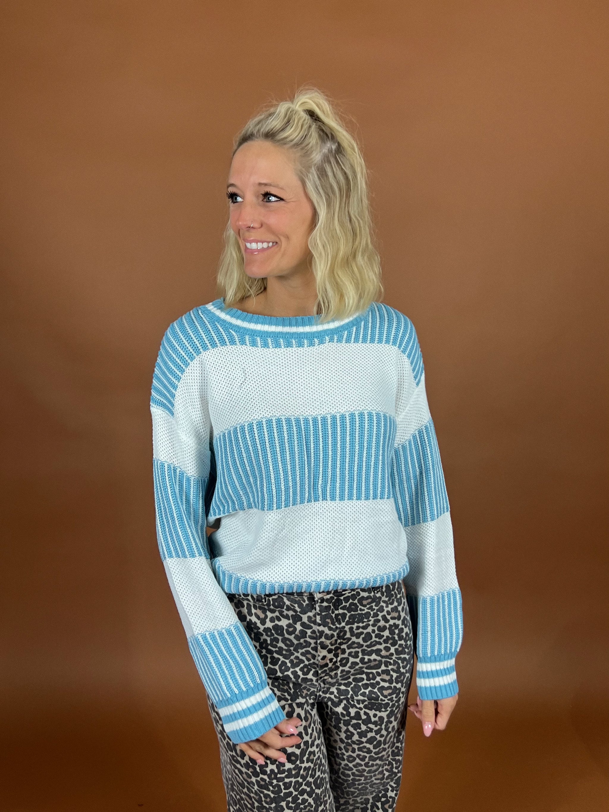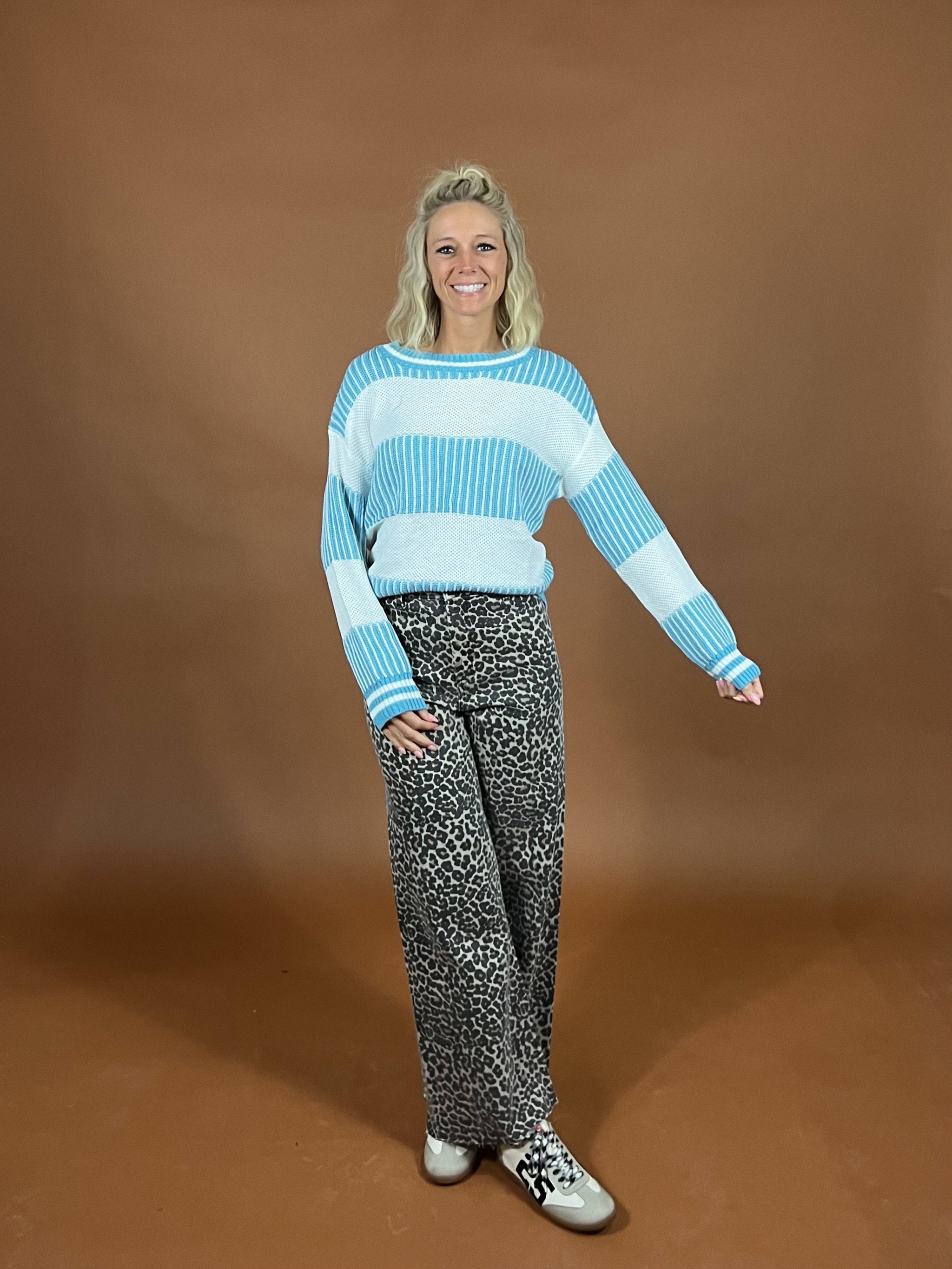 A chunky, color-block striped knit with major personality—think cozy comfort meets playful edge. Designed with extra-wide sleeves, a relaxed fit, and a textured stripe pattern, it brings that effortless “I just threw this on and still look amazing” energy. Pair it with denim, leggings, joggers—literally anything—and you’ve got an instant outfit.