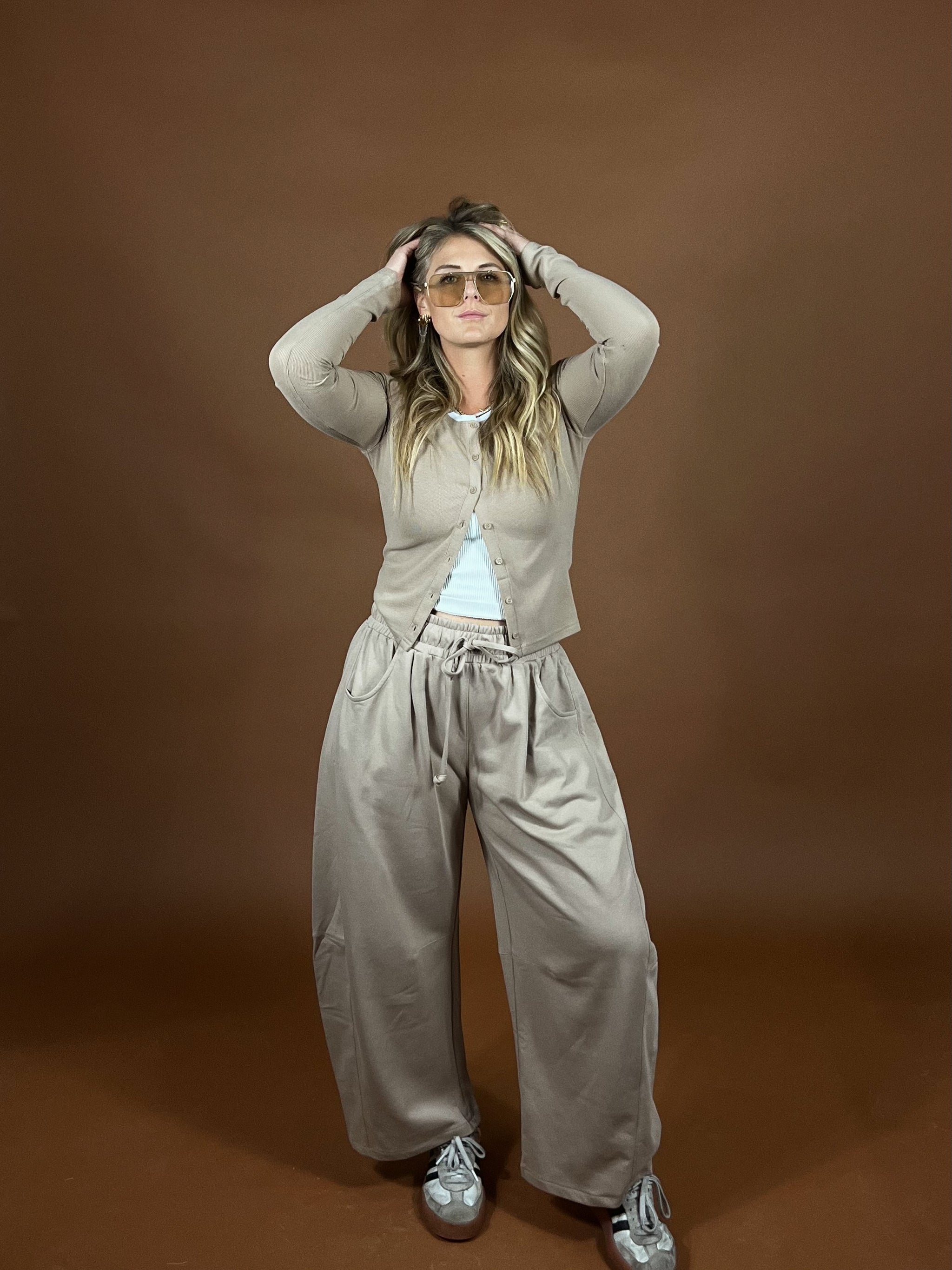 Our neutral girls are going to love this one. A tie front, short sleeve cardigan featuring a retro-style stripe print. Scoop neck, so soft, and easy to wear! Pair it with denim, a skirt, linen pants, etc. Possibilities are endless!