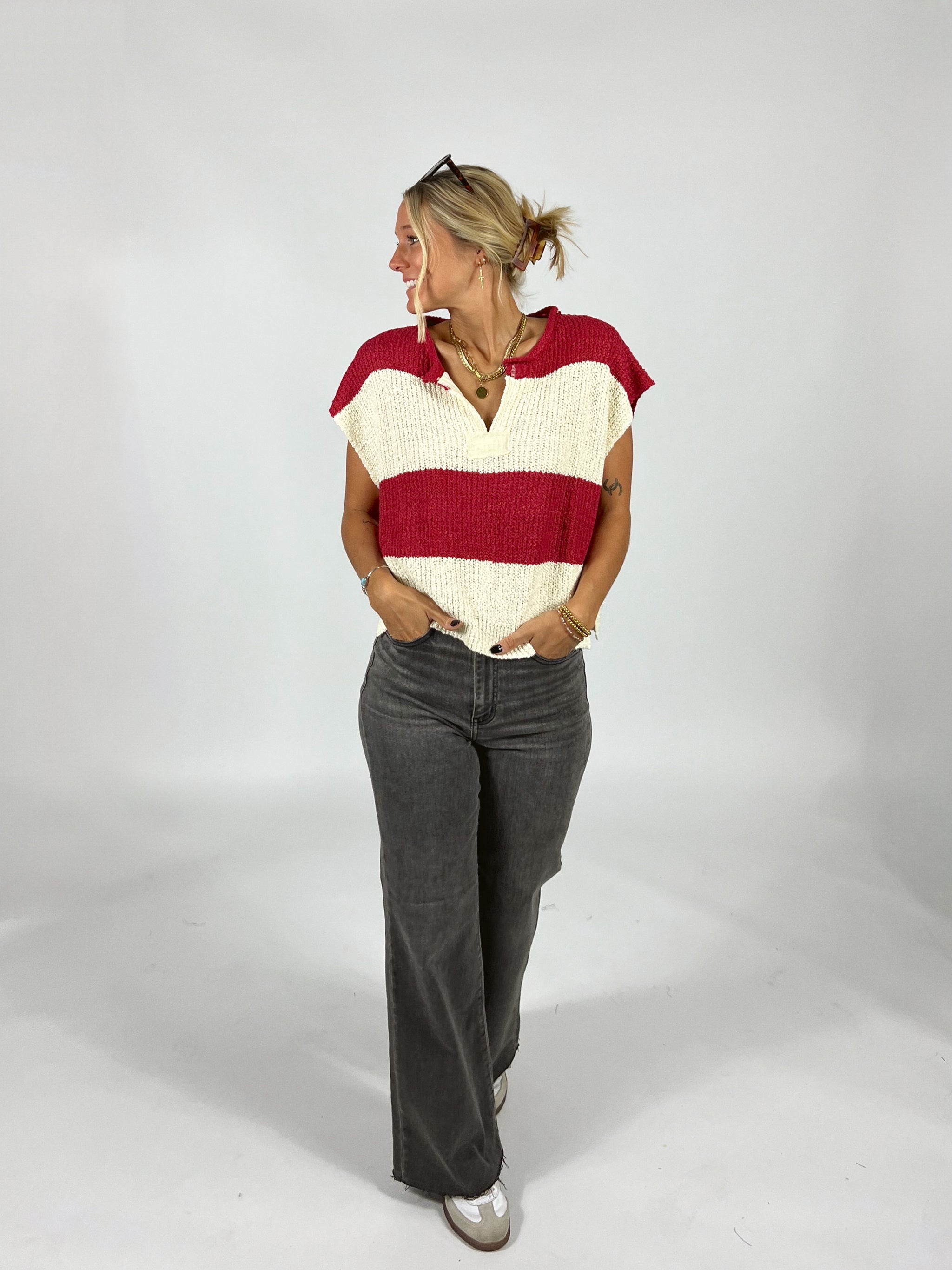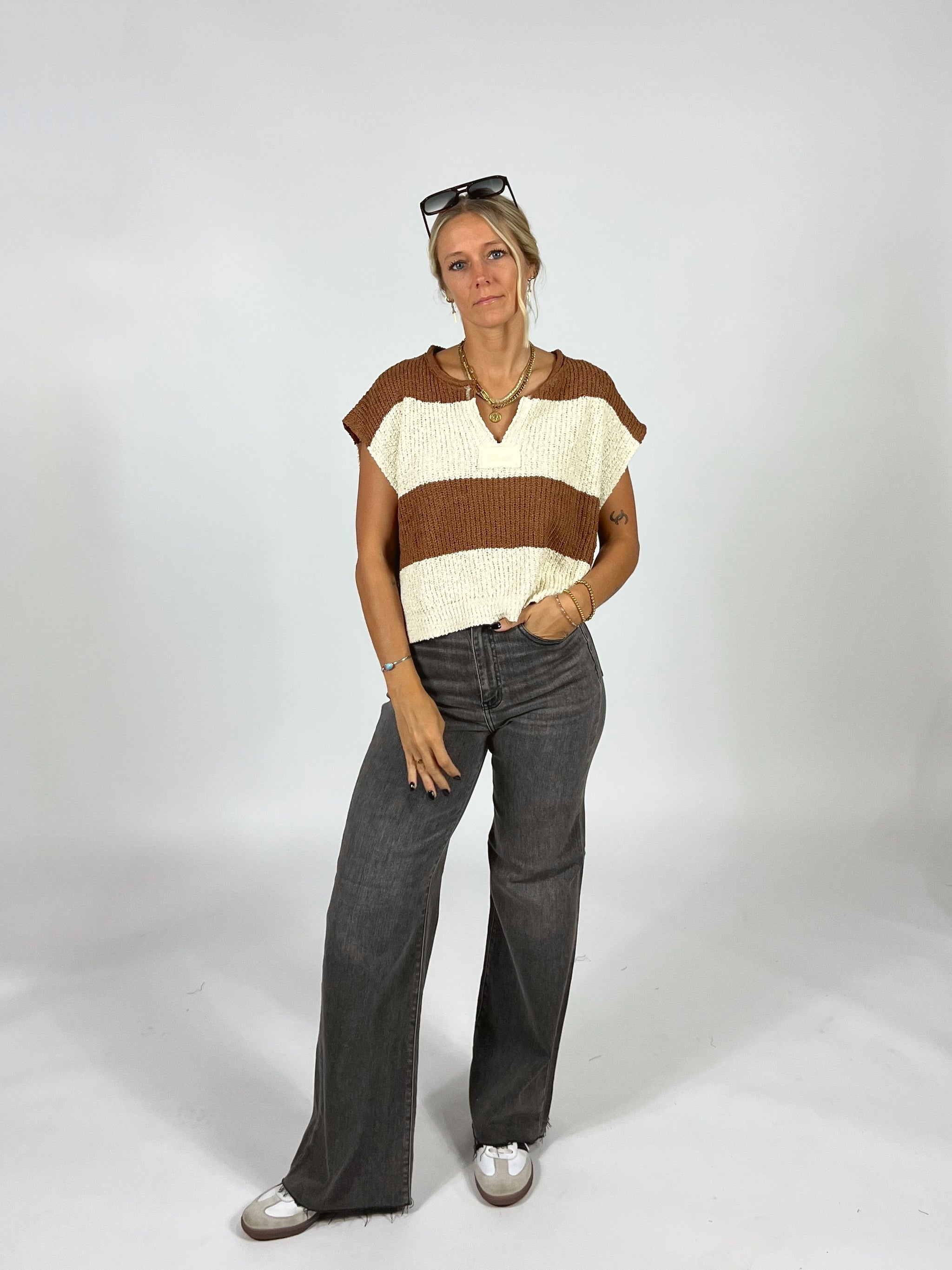 This essential cream sweater top is the perfect addition to your spring capsule closet! We love styling this top over swimmies or bralettes with cutoff...