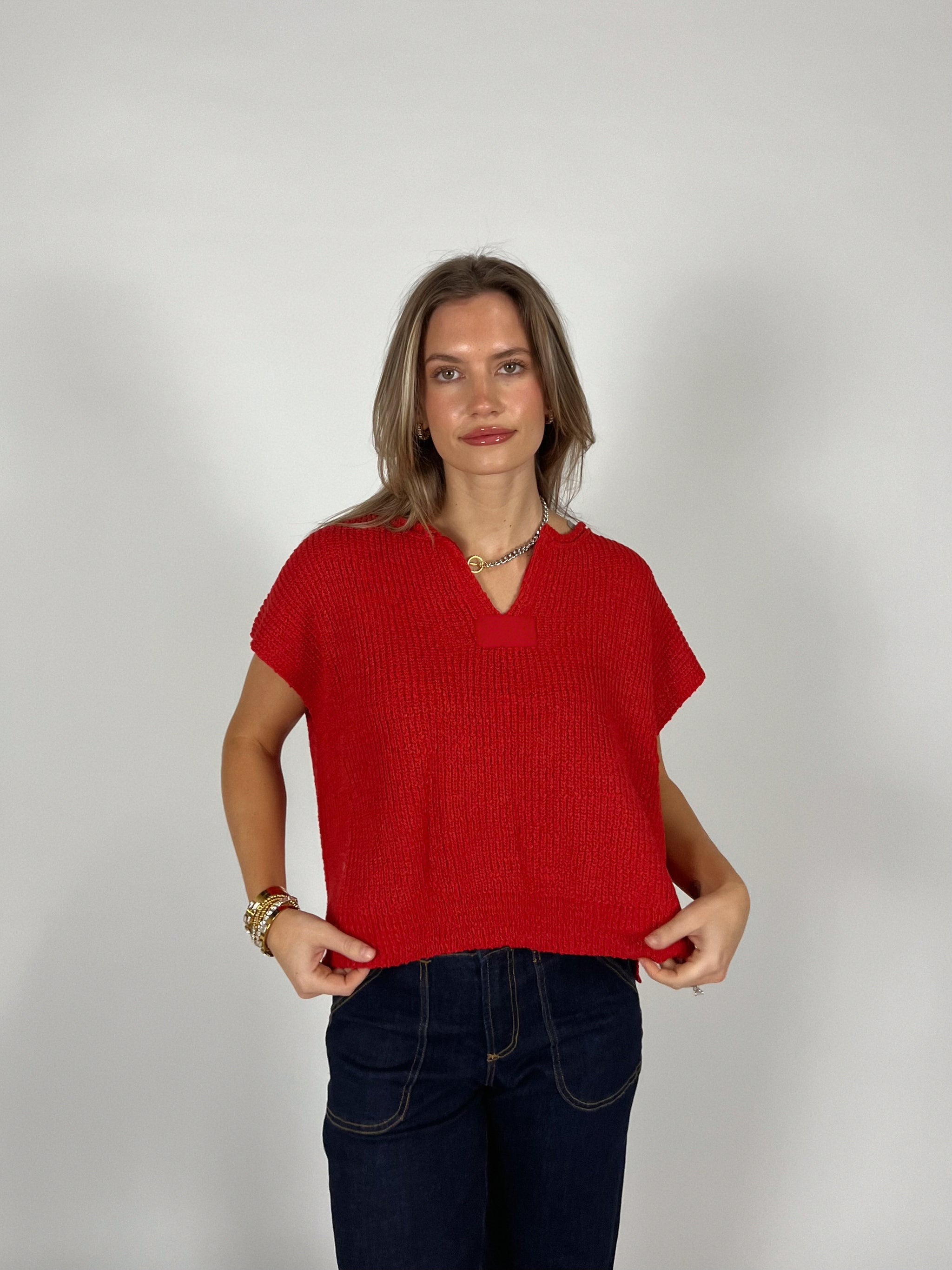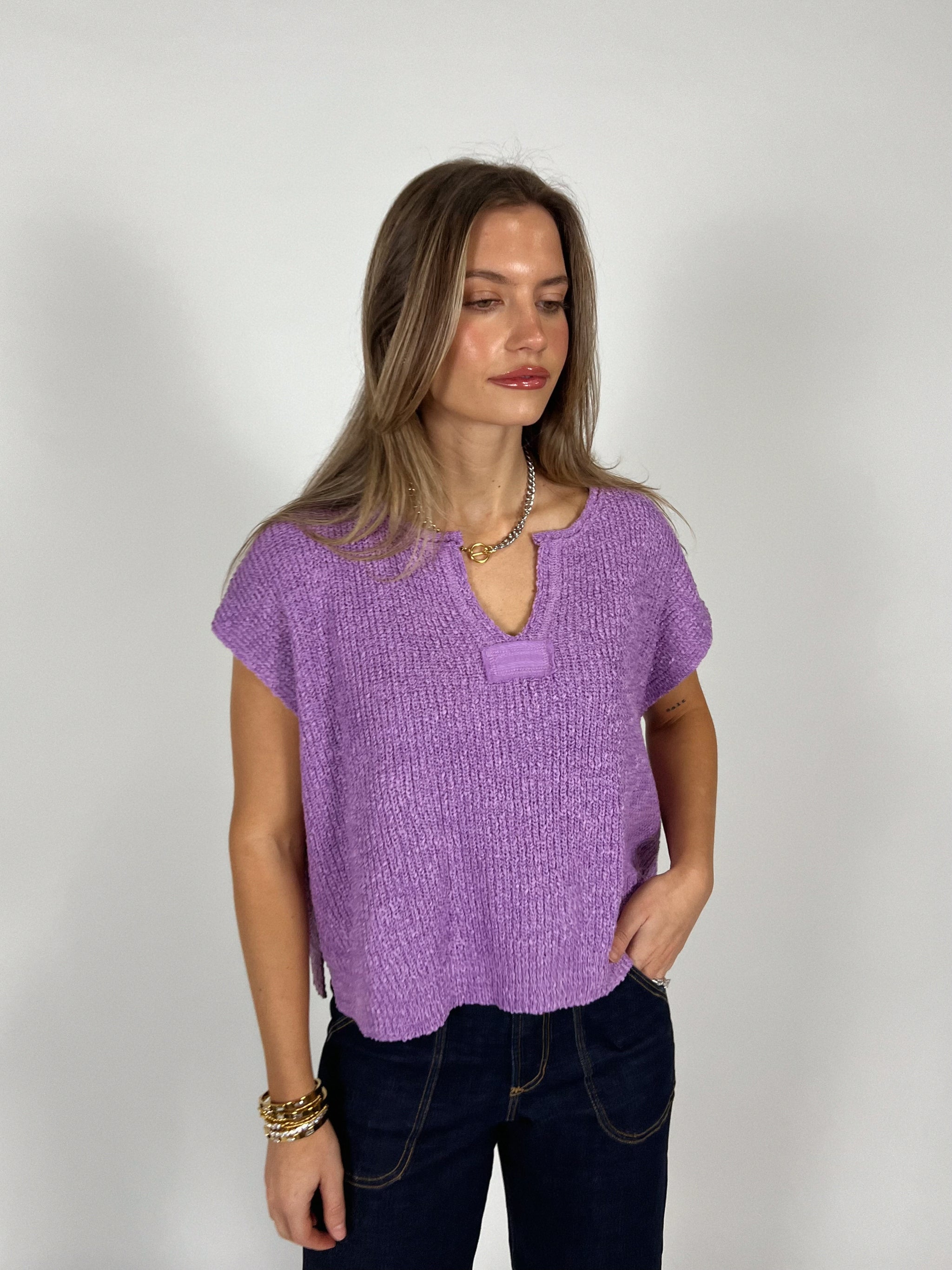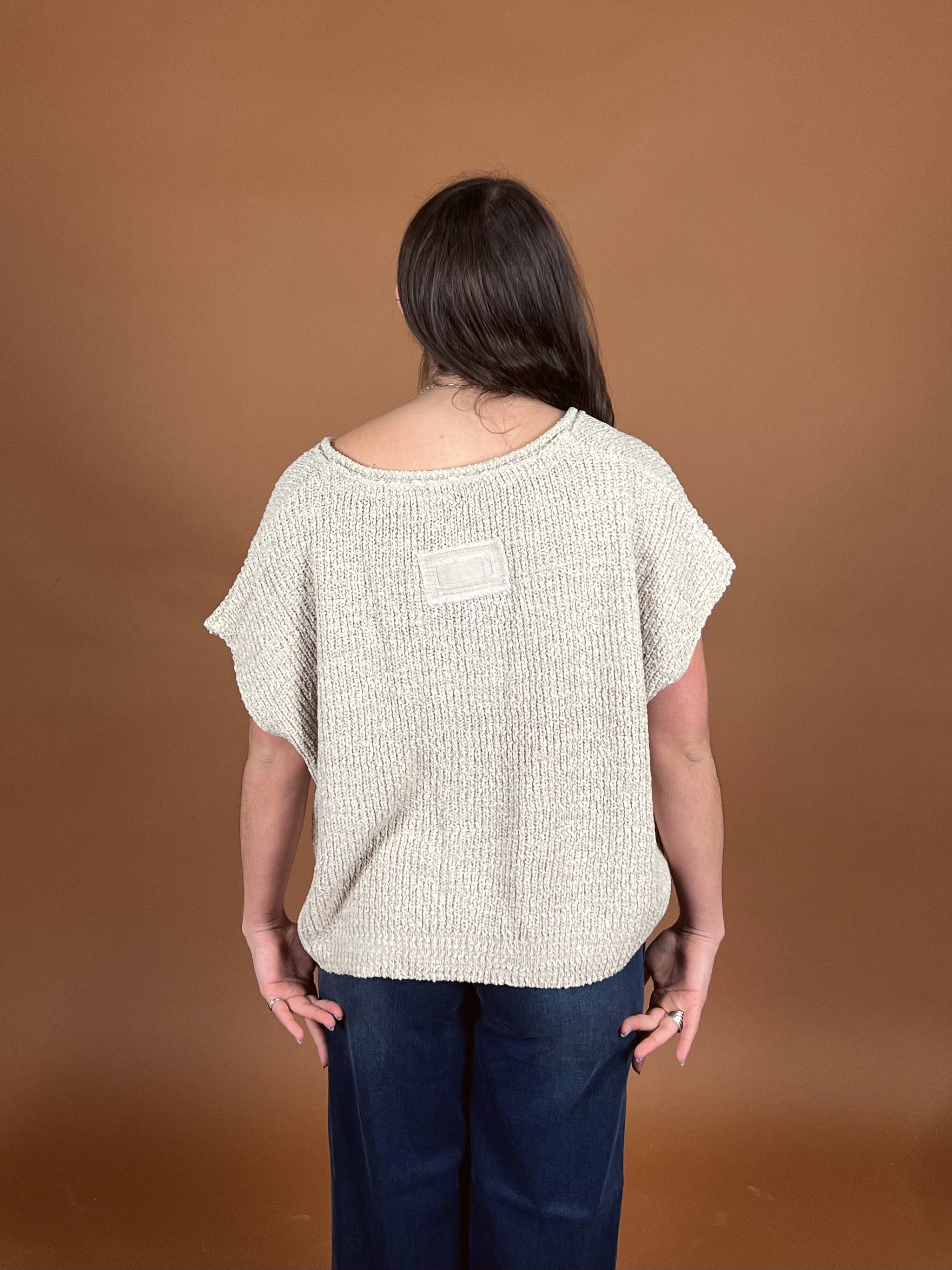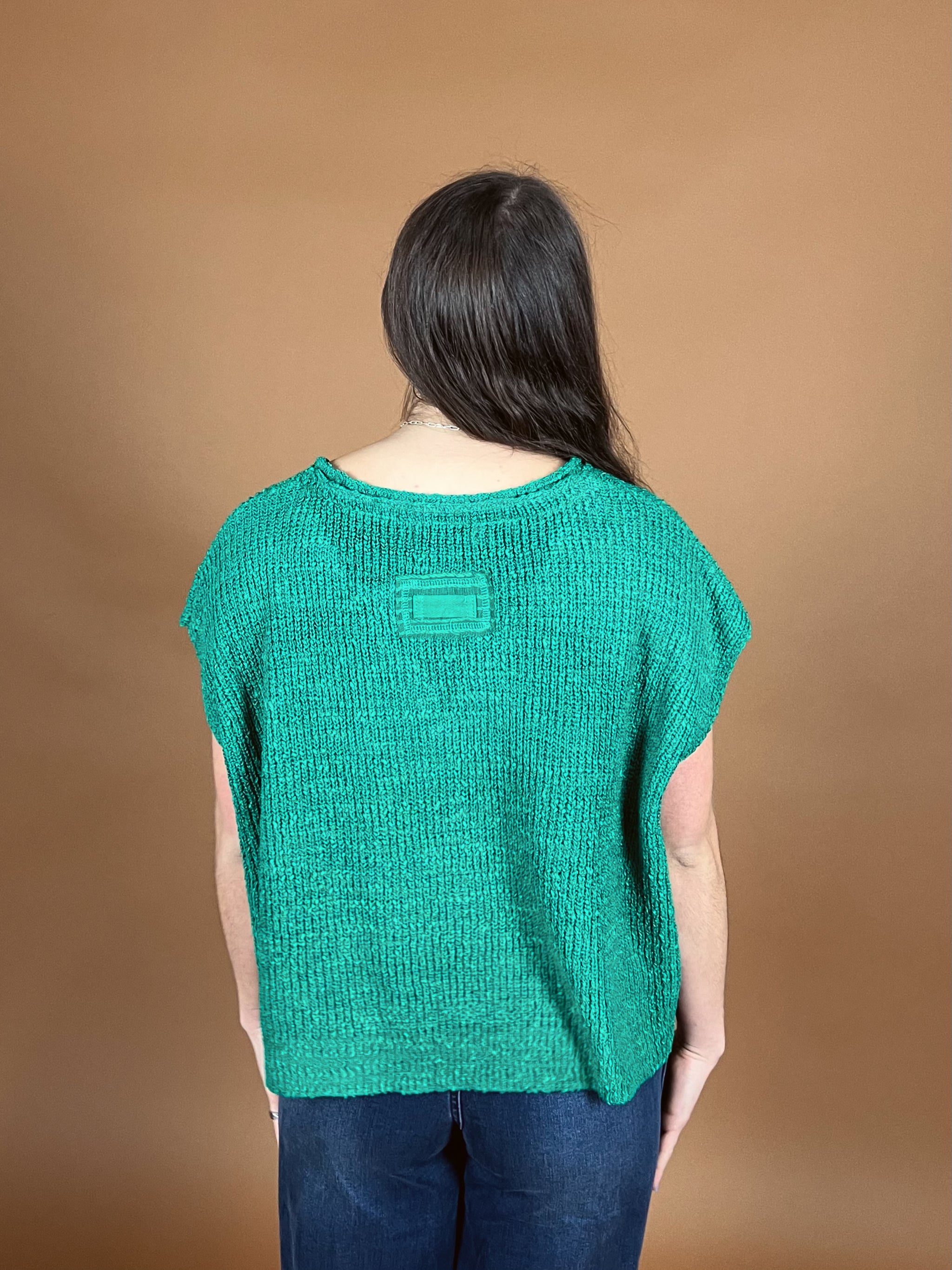 Soft structure meets effortless charm. A sleeveless sweater tank with wide ribbed detailing, a relaxed fit, and subtle rolled hems that give it a lived-in...