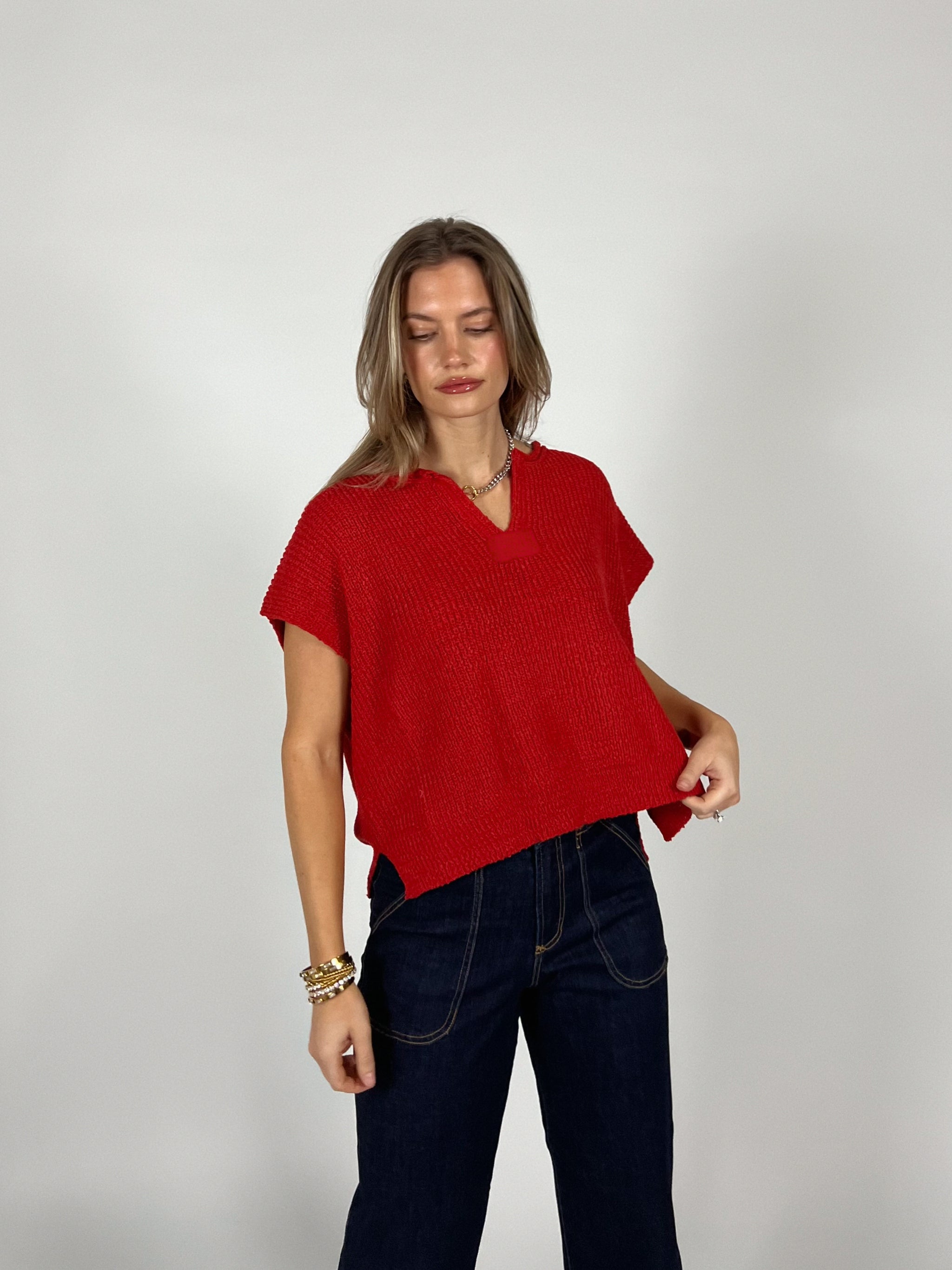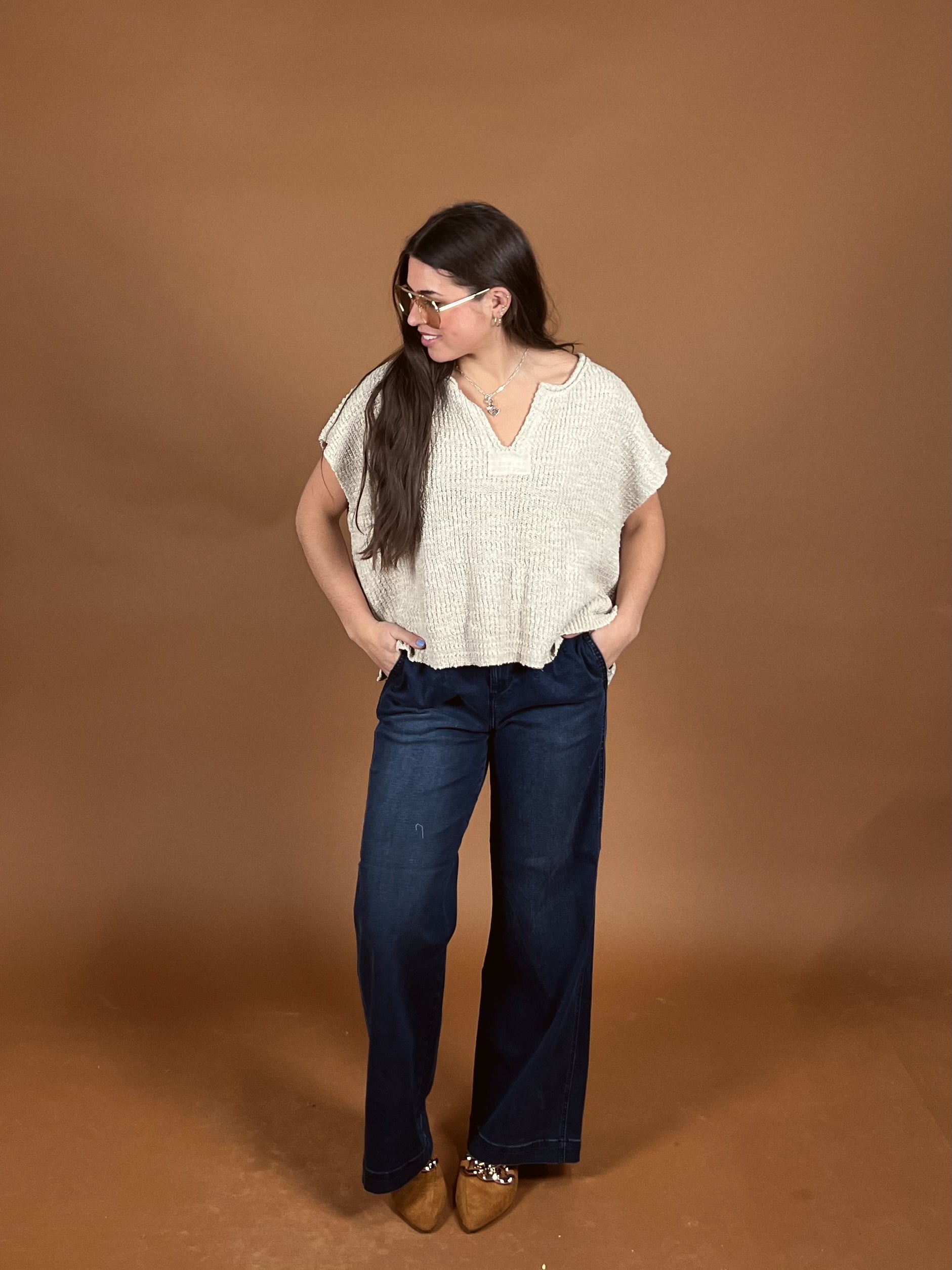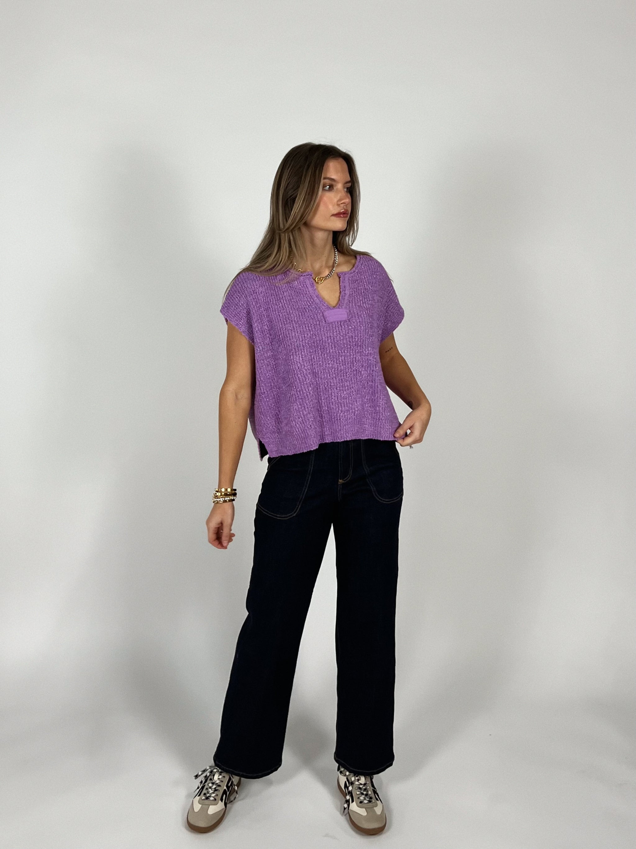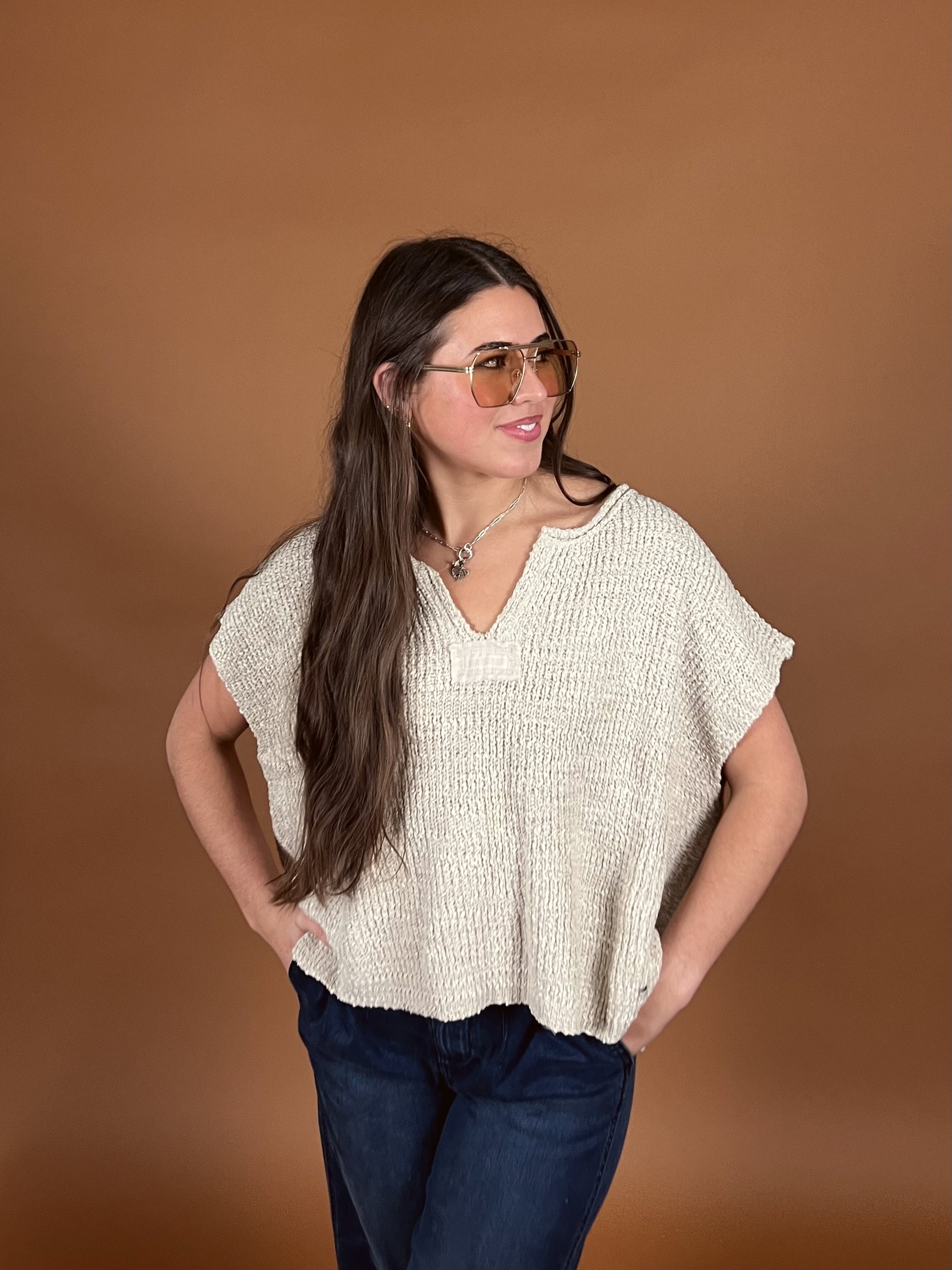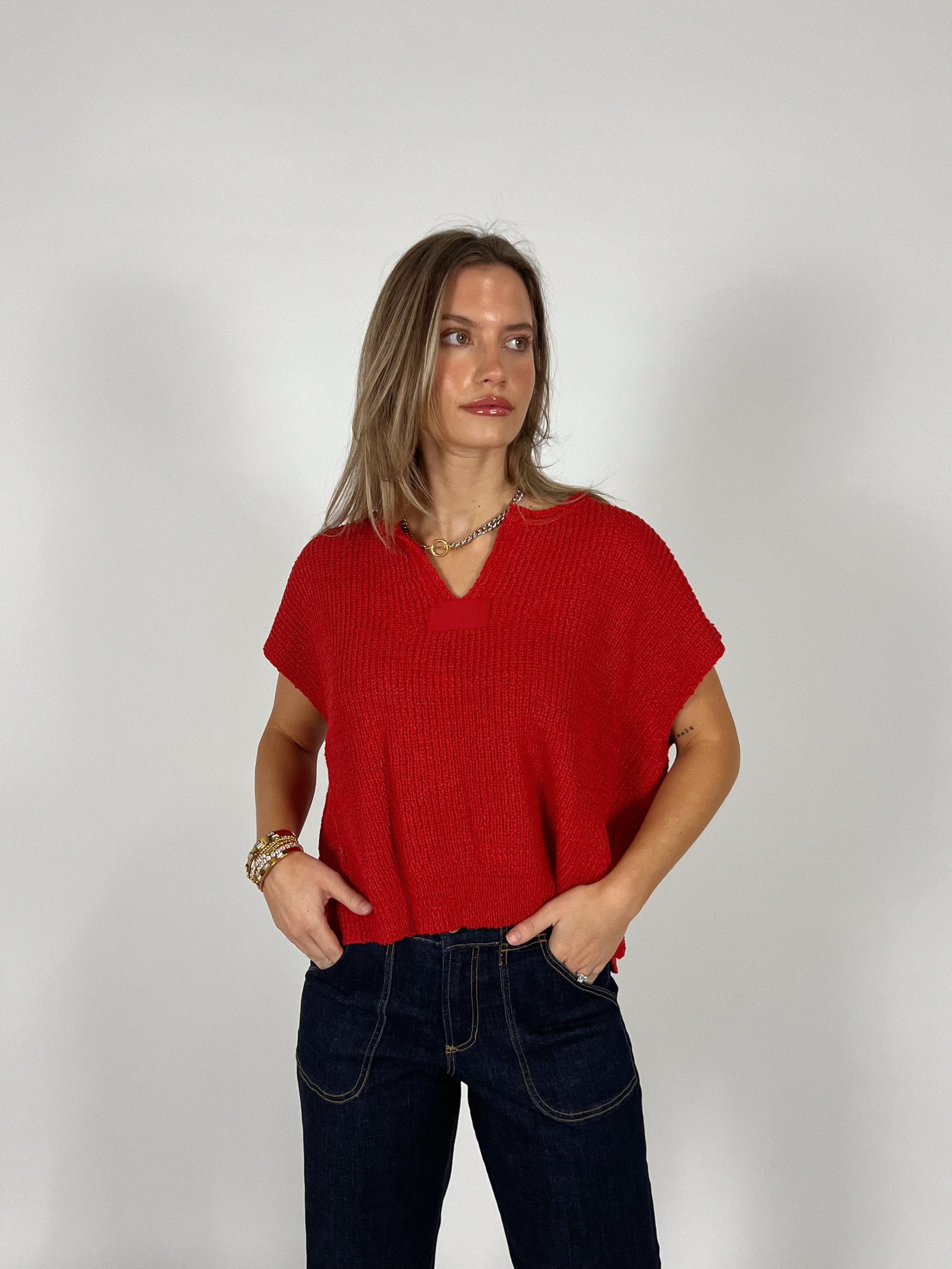 Soft structure meets effortless charm. A sleeveless sweater tank with wide ribbed detailing, a relaxed fit, and subtle rolled hems that give it a lived-in...