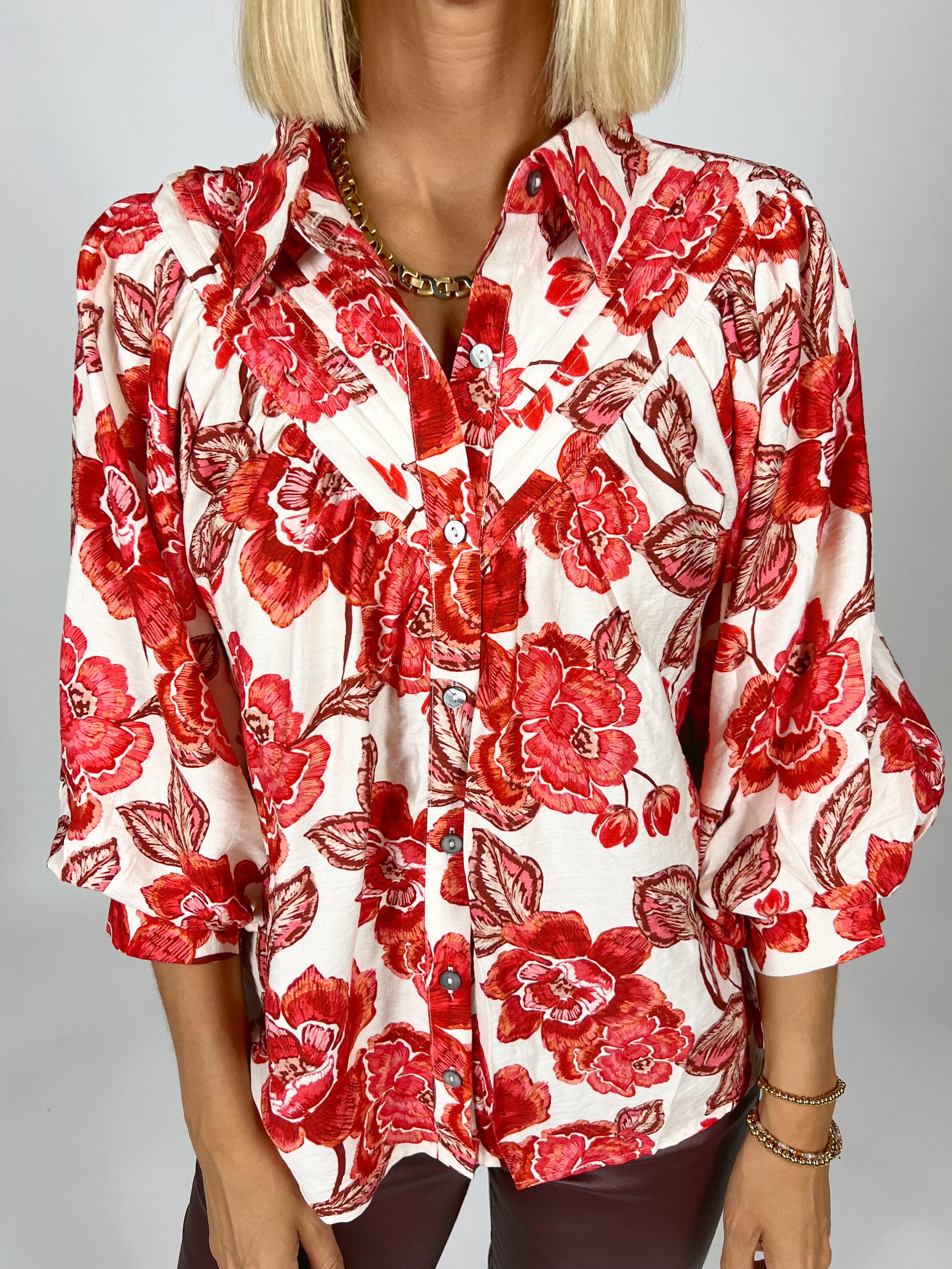 Totally 'mod' about this dress. A dreamy dress featuring puff sleeves, a statement scalloped collar, and a kaleidoscope of bold florals in pink, reds, oranges,...