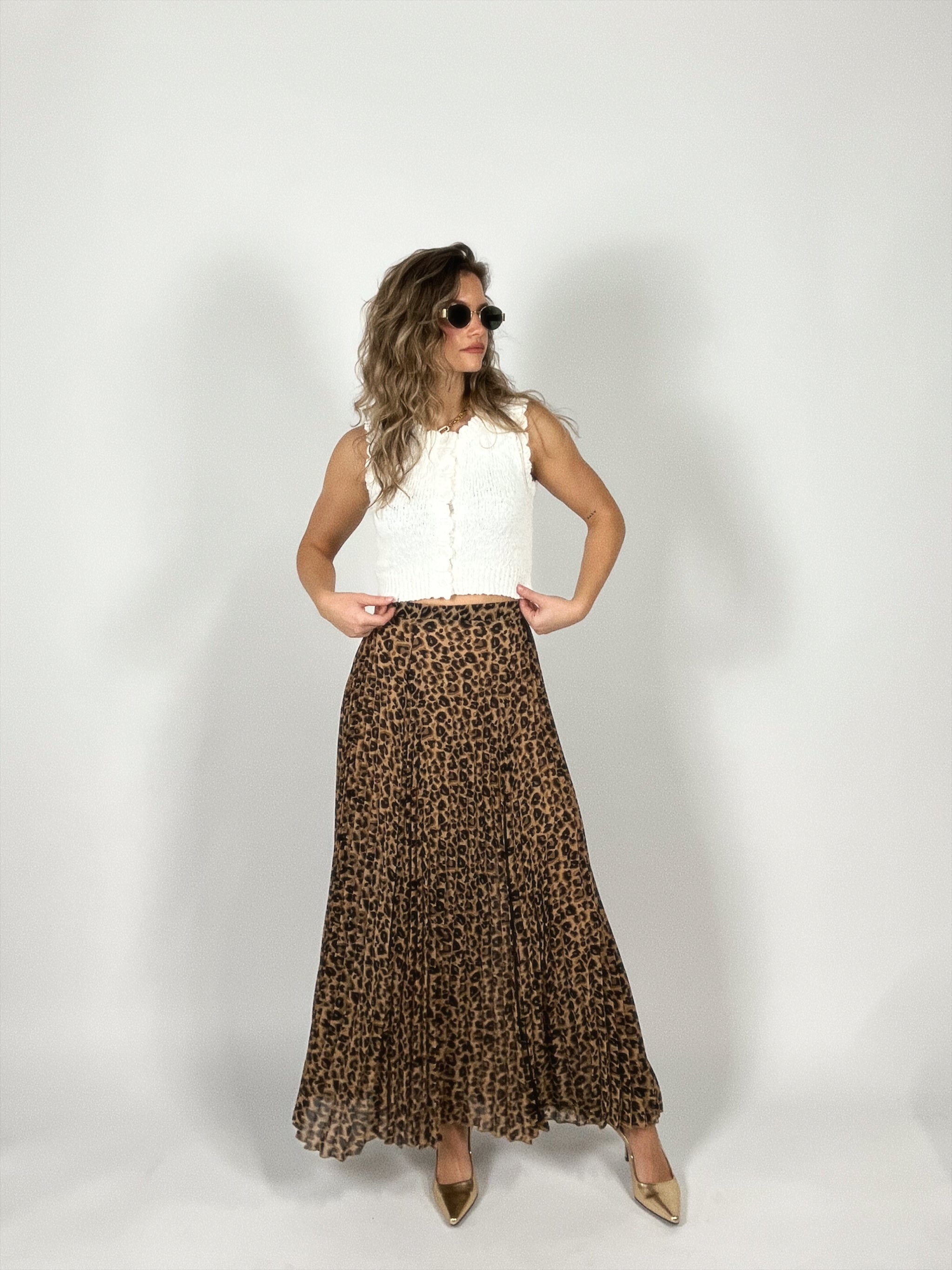 A statement piece that still feels effortlessly wearable. This leopard print pleated maxi skirt brings the perfect mix of bold and timeless with its flowy...
