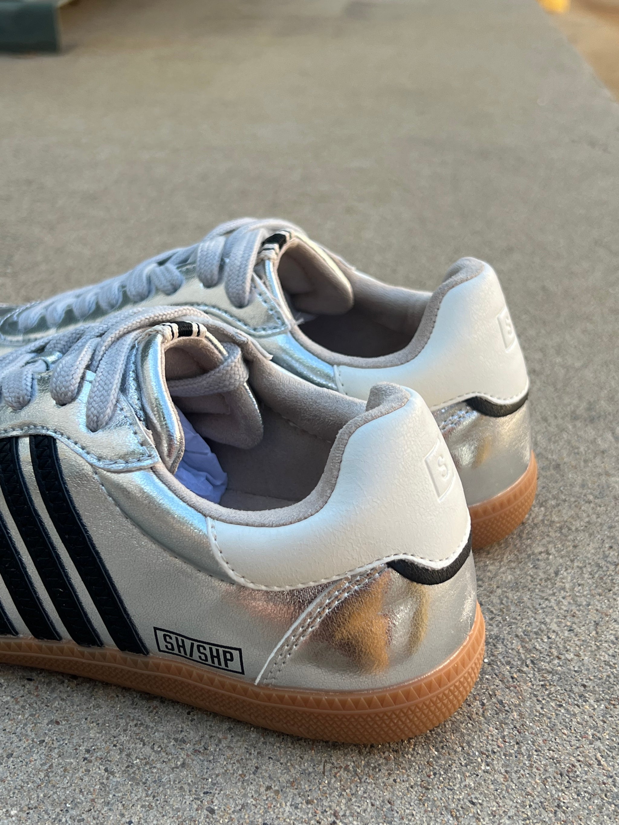 A sneaker that knows how to steal the spotlight. The STEVIE SILVER elevates retro sport vibes with a high-shine silver upper, bold black stripes, and contrast white...