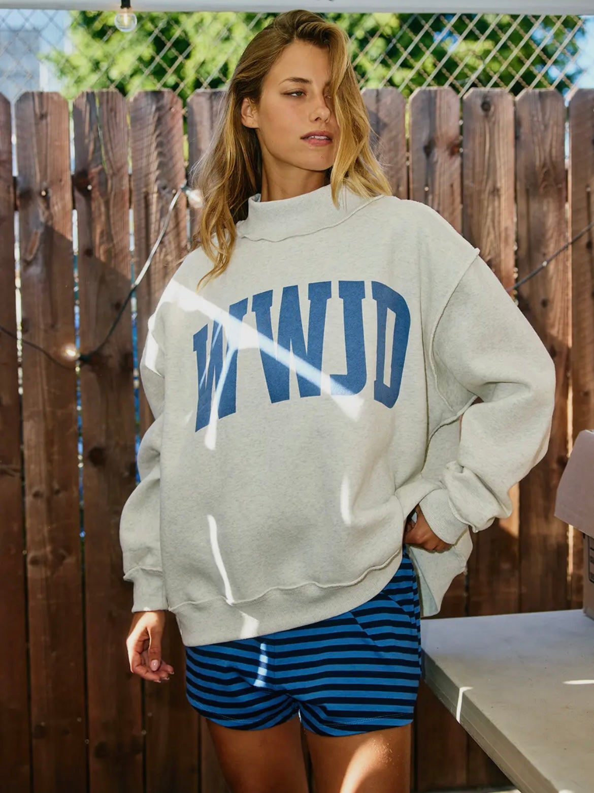 Two messages, same goal. A cozy oversized mock neck sweatshirt created for easy wear and style. Flip it one way for "WWJD" and the other...