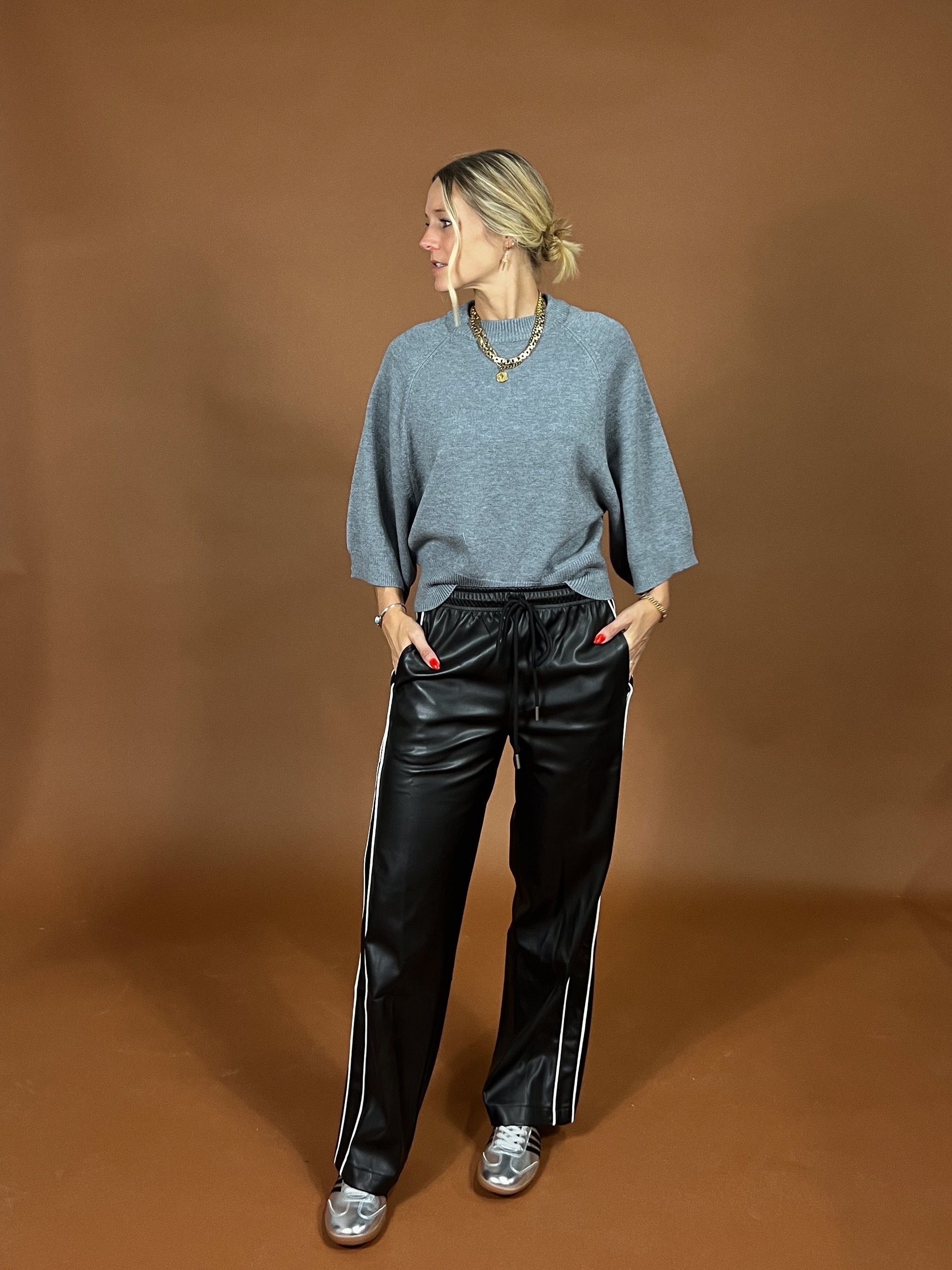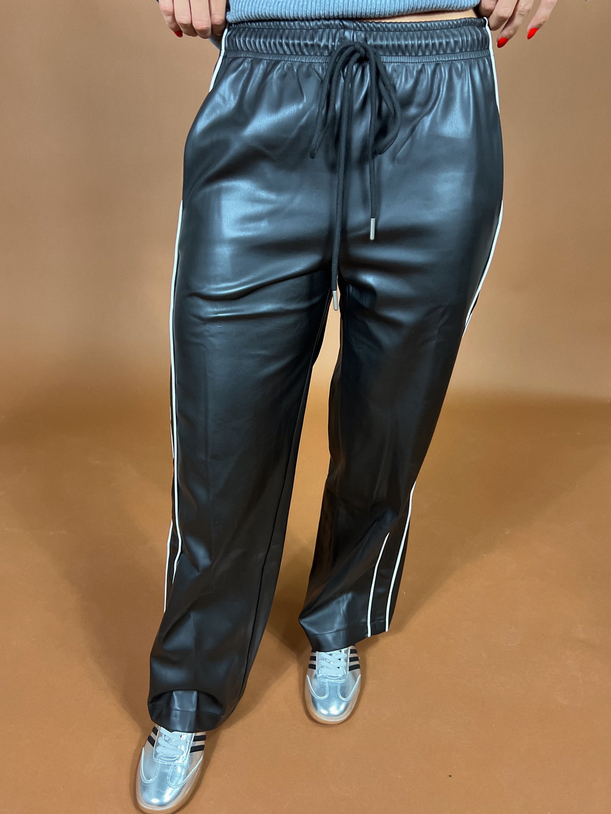 Off duty uniform. These pants blend luxe leather with a relaxed, athletic silhouette for the ultimate balance of polish and ease. Featuring contrast side stripes,...