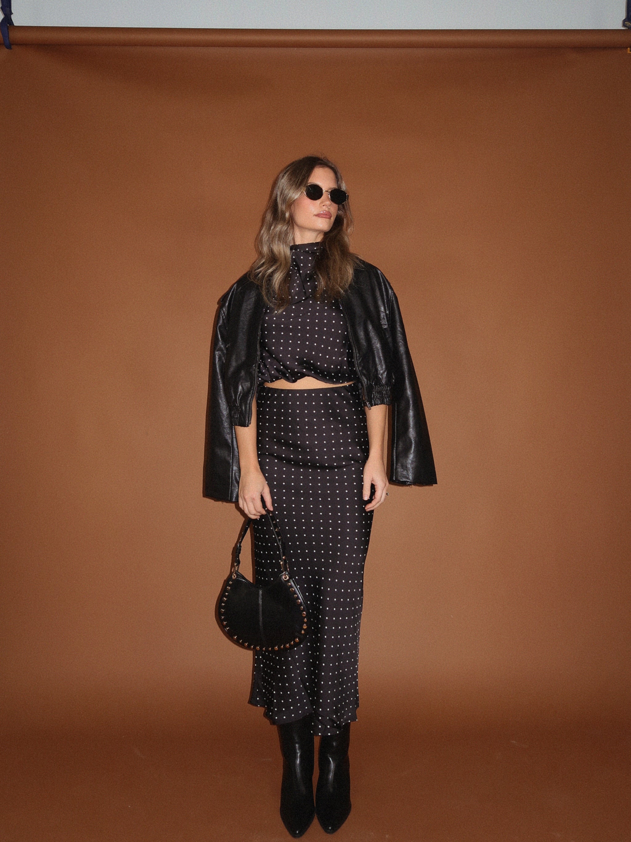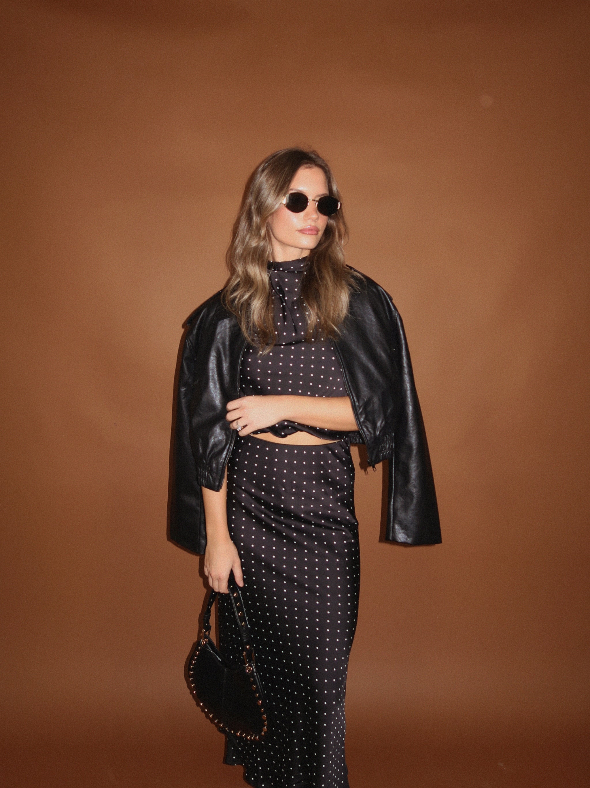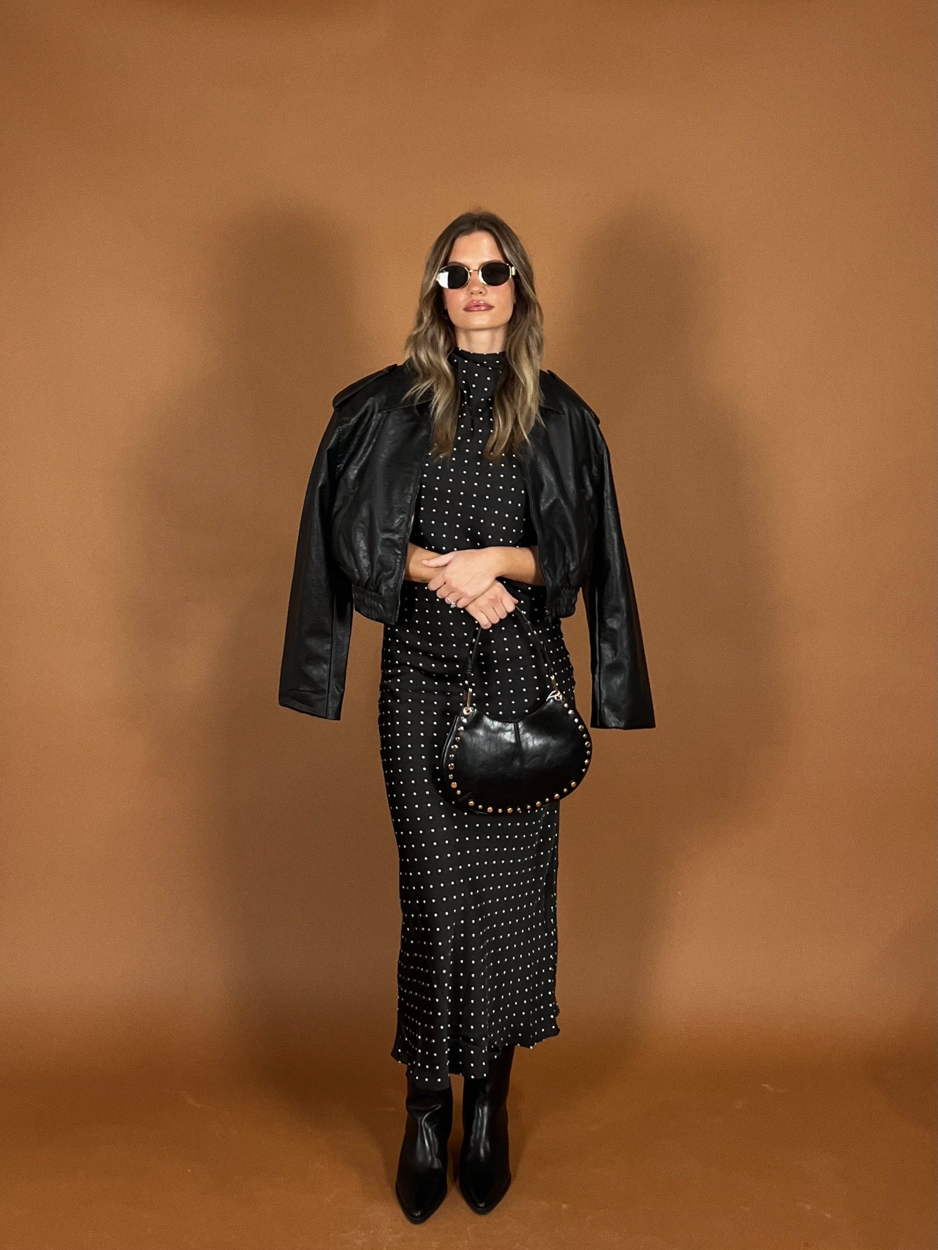 Made with a playful block-print inspired floral pattern and finished with contrast piping, this piece blends boho charm with a polished, everyday feel. The button-front design and removable tie waist let you wear it relaxed and flowy or cinched for a more defined shape. Long sleeves, soft breathable fabric, and a midi length make it an easy pick for year-round styling — boots in the fall, sandals in the spring, sneakers whenever you want to be comfy.