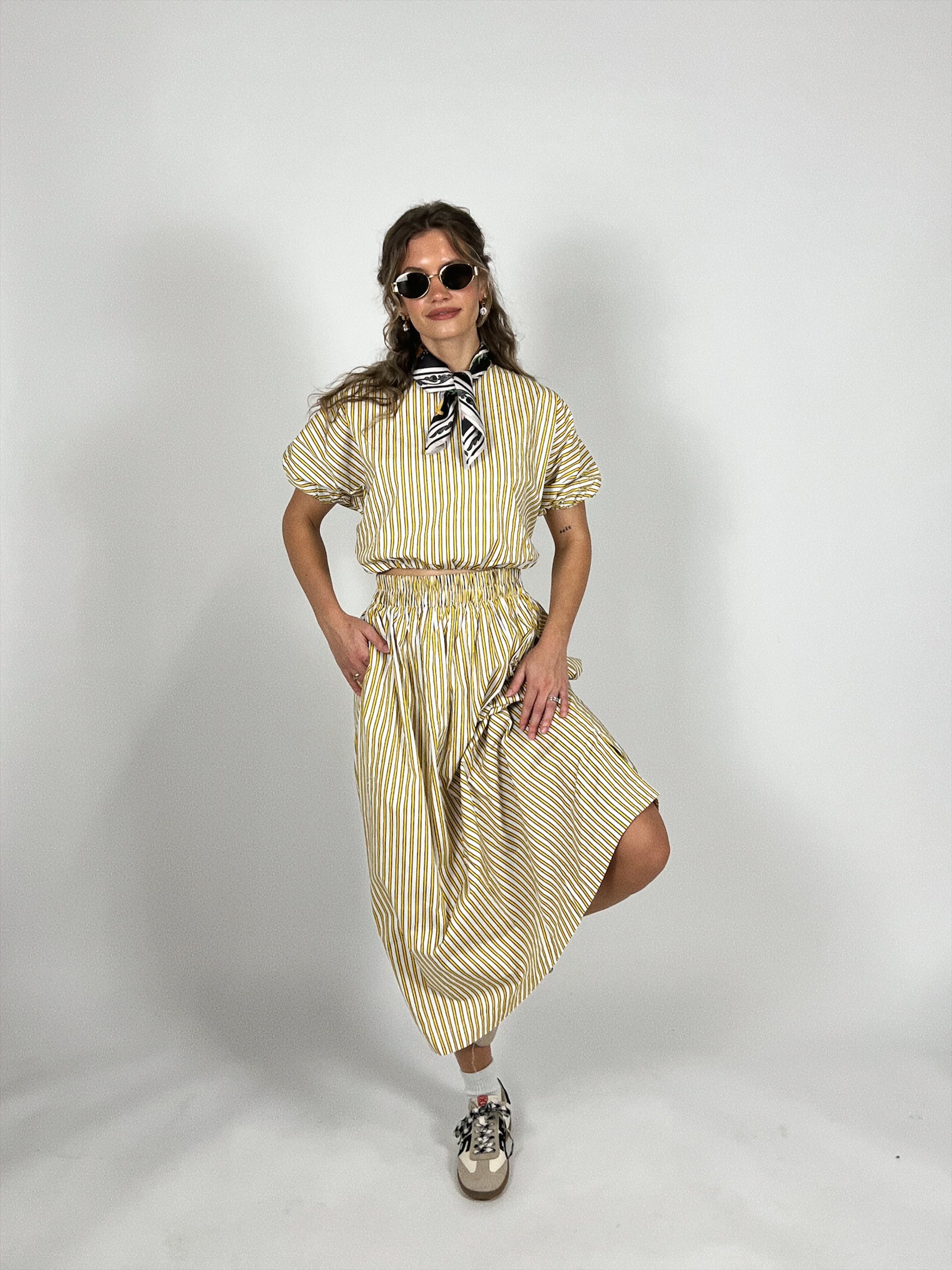 The Hollis is the definition of effortless summer style. This breezy two piece features a relaxed, bubble hem striped top paired with a flowy, elastic...