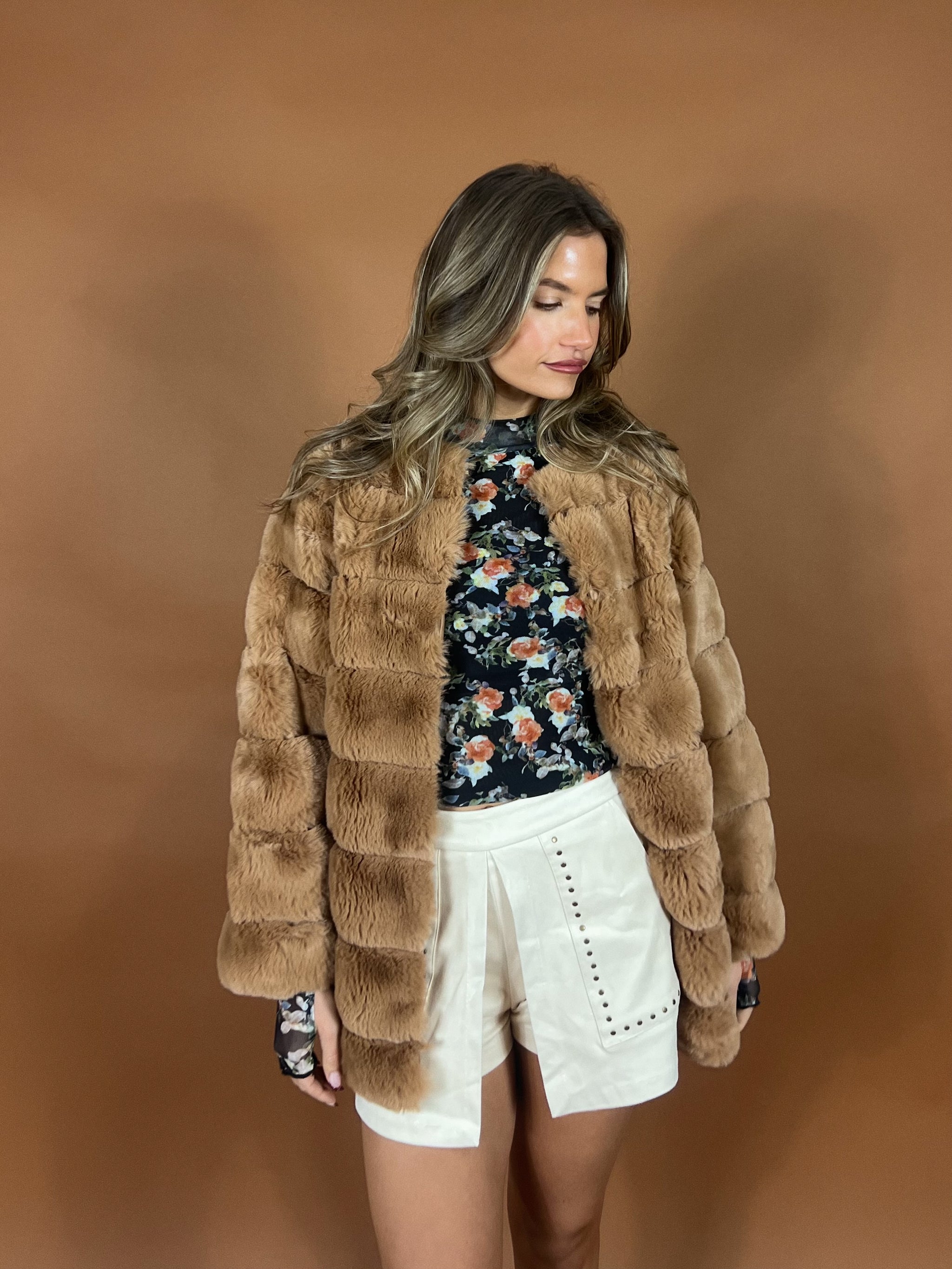 Wrap yourself in warmth and style. Features a plush shearling mixed with a sleek quilted puffer. This piece blends cozy comfort with and elevated edge....