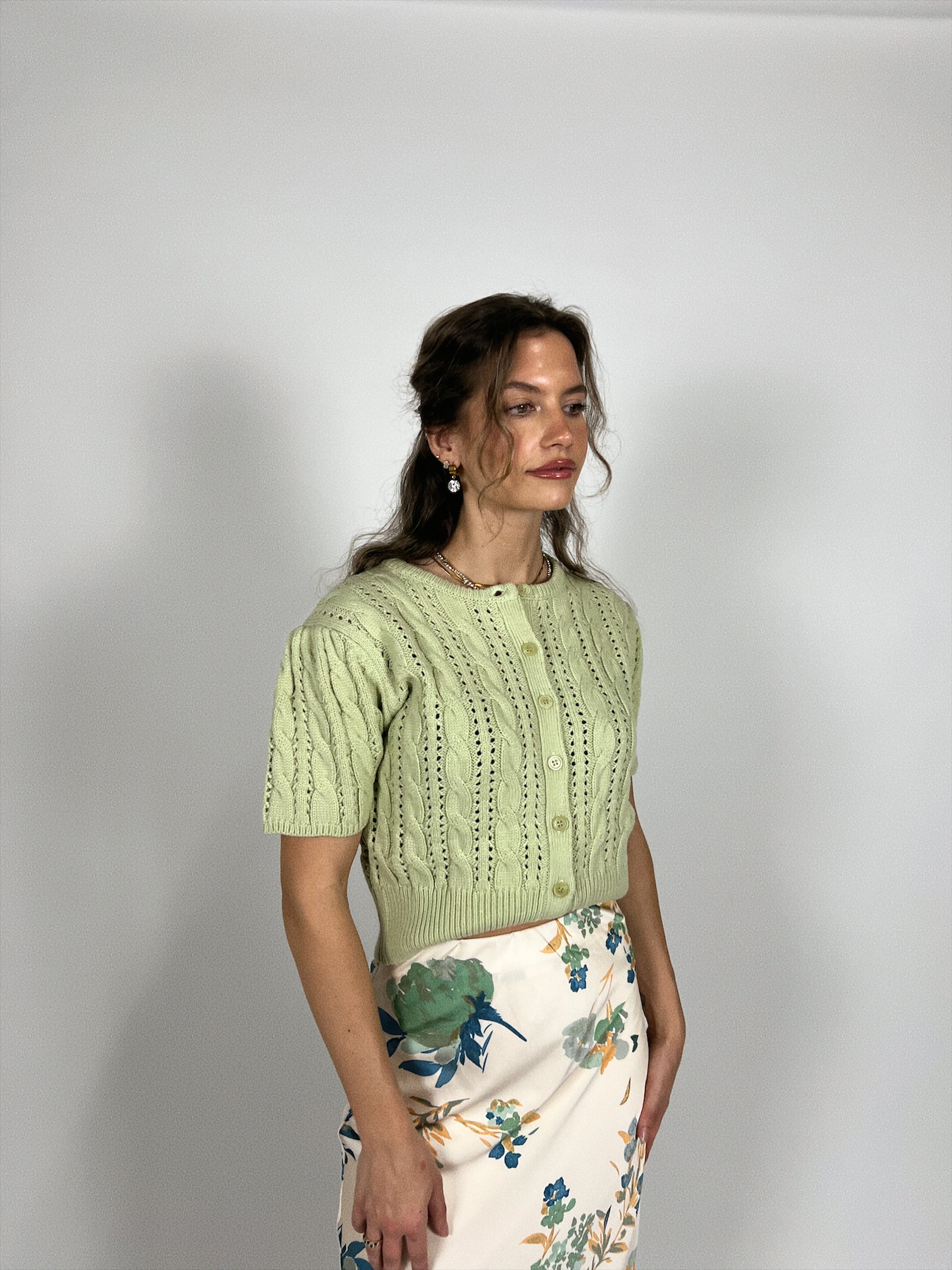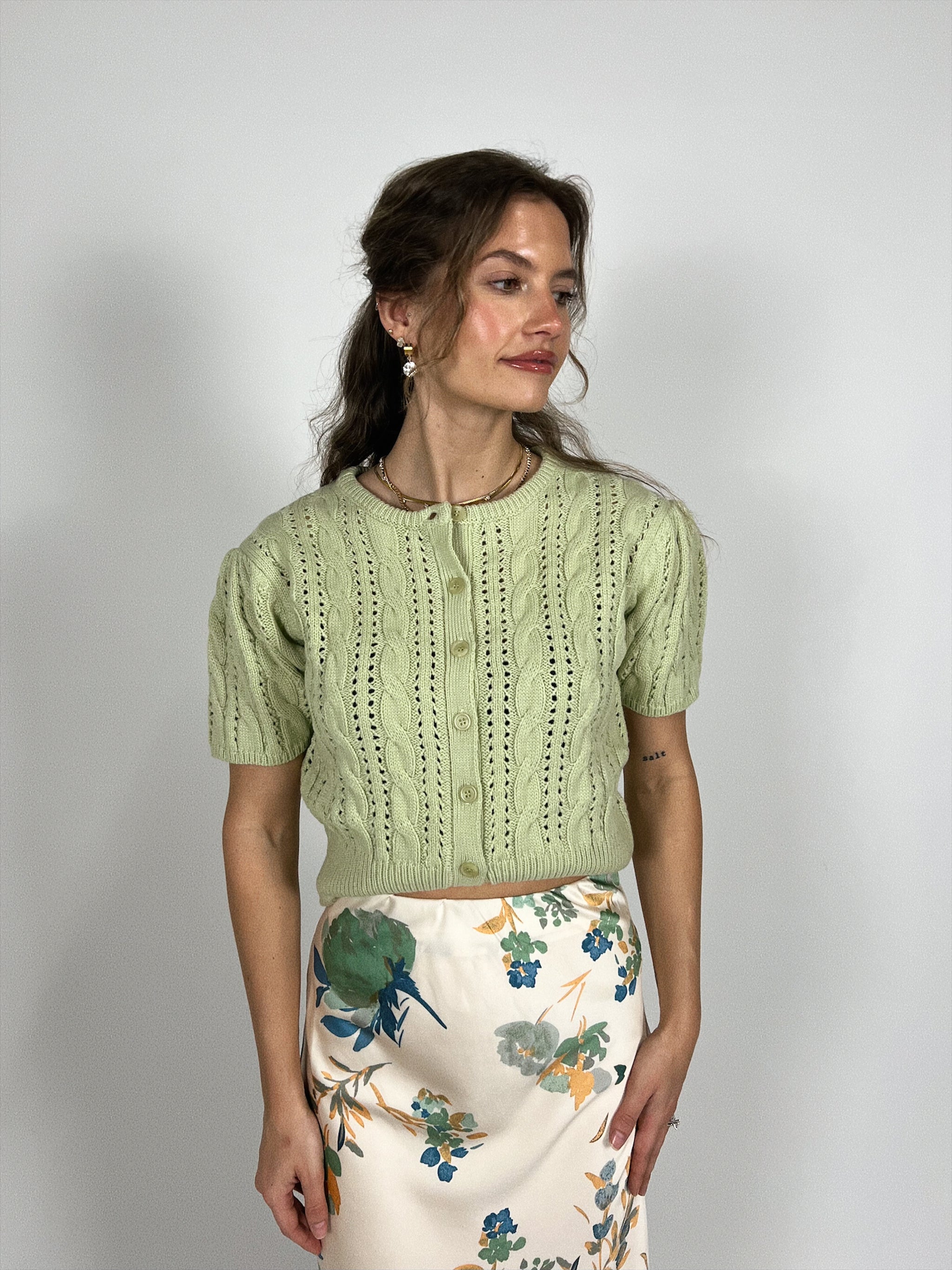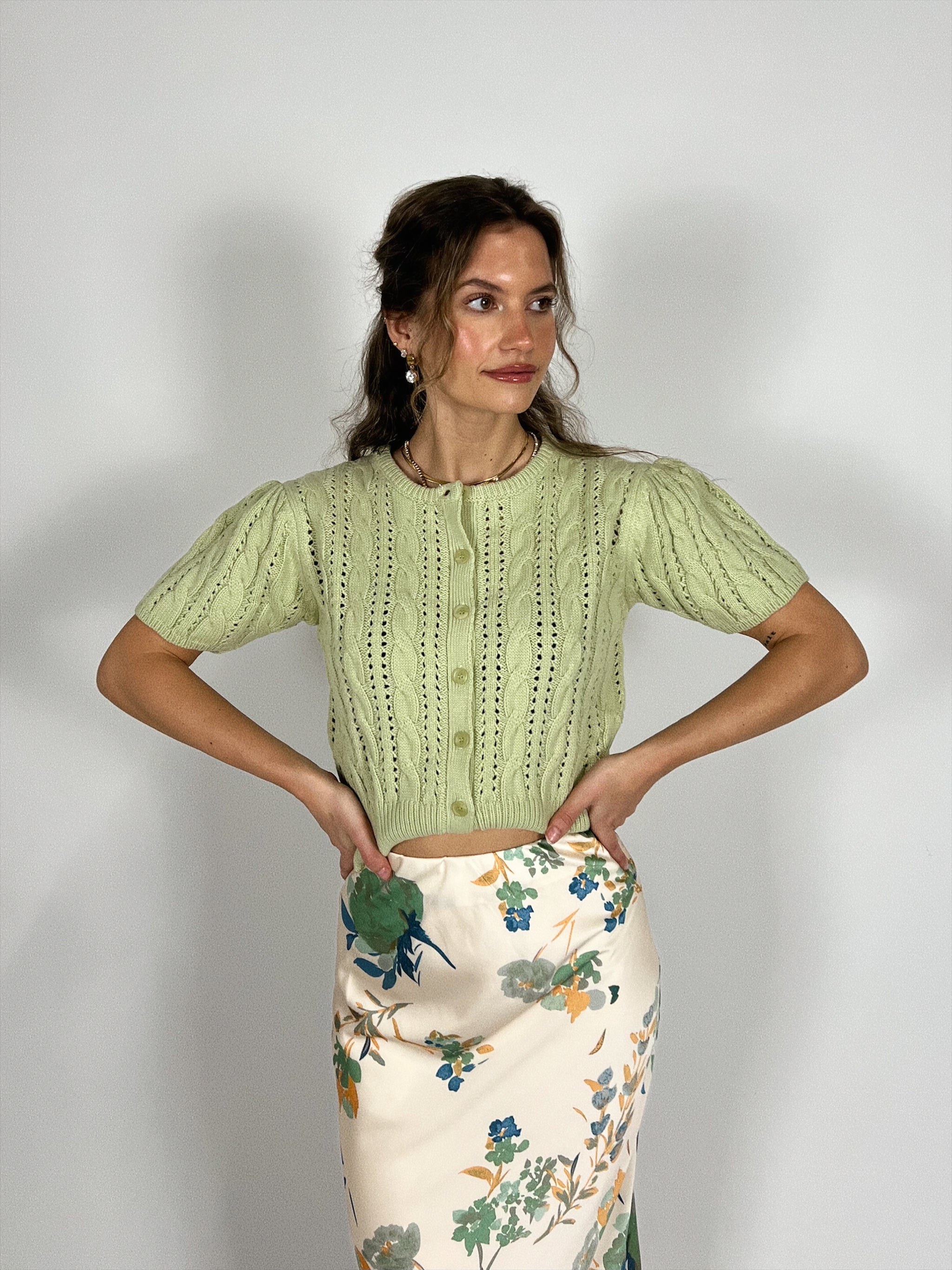 This sweet thing? Oh, she's perfect. Designed in a soft pointelle knit with delicate texture and a classic button front, this piece adds just the...