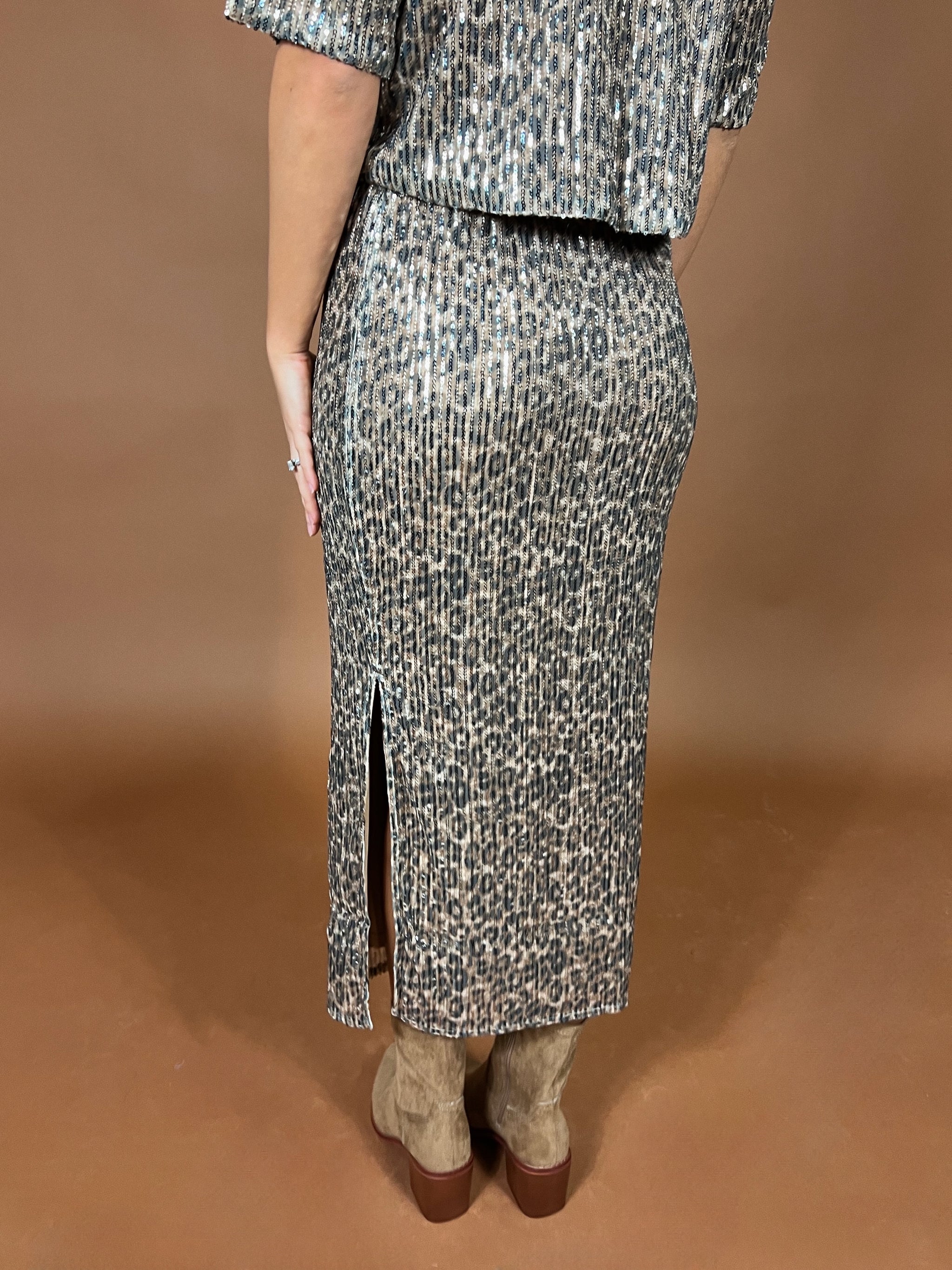 Turn every occasion into your moment. This skirt blends glimmering cheetah sequins with an effortlessly modern silhouette. Slightly boxy, slightly fitted, and ready to shine....