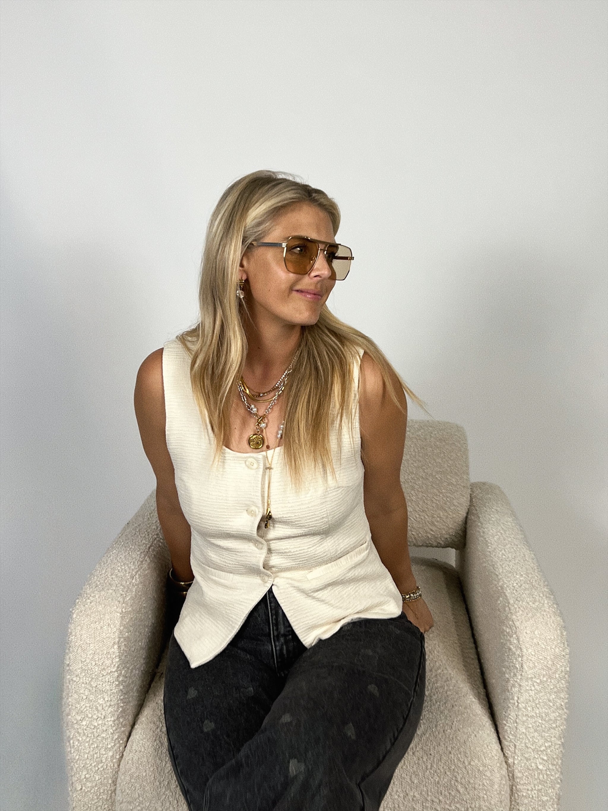 Featuring a crisp white base with green and brown vertical stripes, it adds just the right amount of play while still being effortlessly wearable. Designed with a relaxed silhouette and lightweight fabric that make it easy and comfortable for all day wear. So many ways to style, no need to think about it. Just throw on and go!