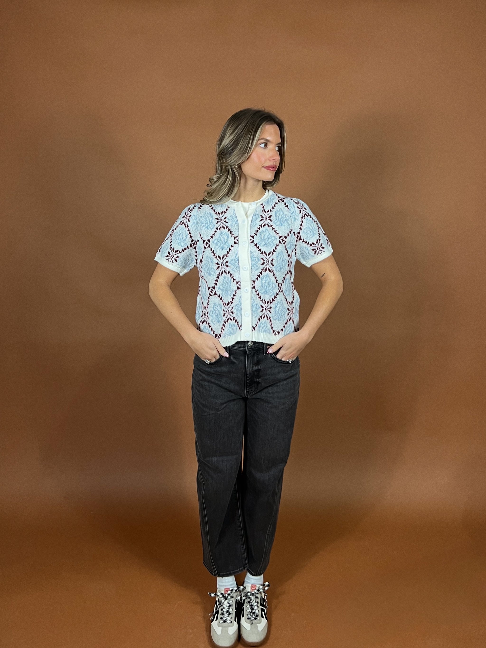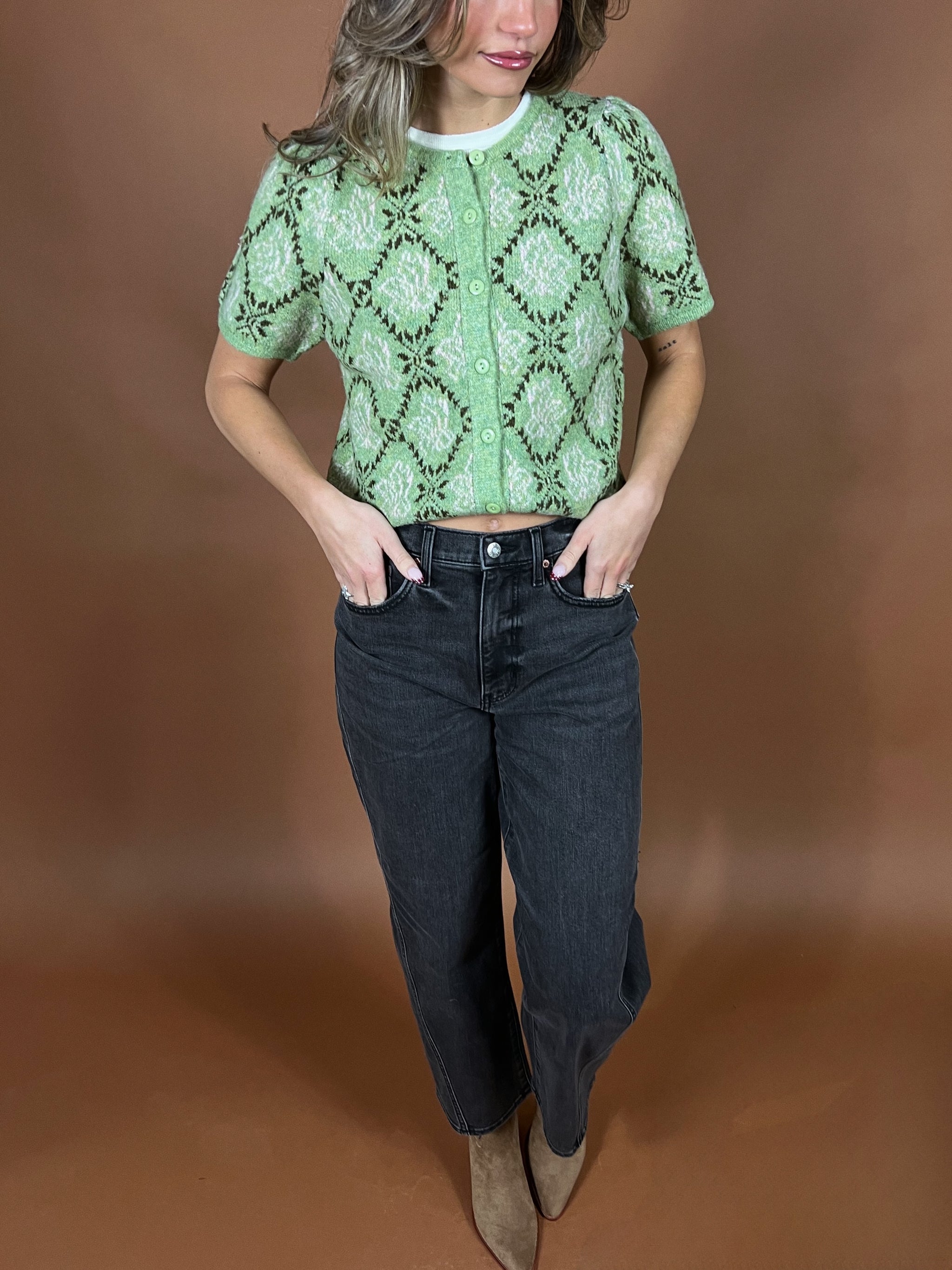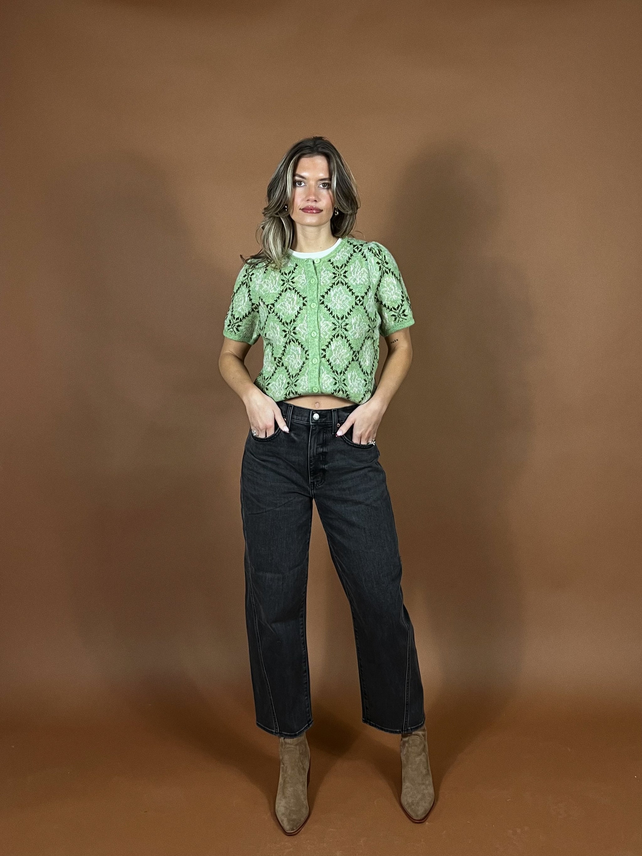 A new fall go-to piece featuring a relaxed fit, wide cropped sleeves, and ribbed detailing. Pair it with denim, trousers, or a satin skirt. Easy to wear with all of the style.